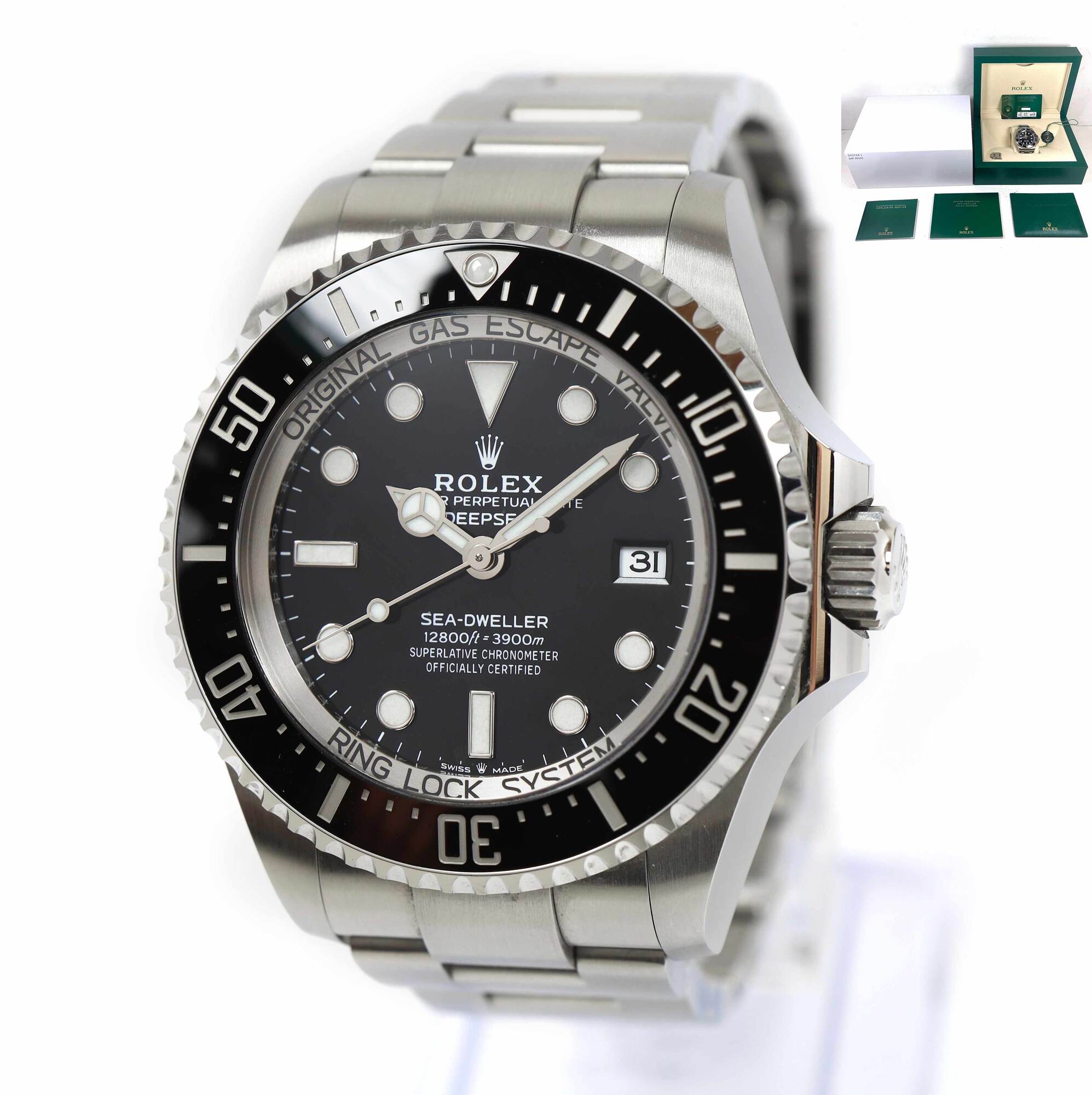 this rolex is in excellent condition and comes with its box, booklets, green hang tag, spare links, and warranty card february 8th, 2023 as shown in the pictures attached. This watch is in stock and available to ship immediately!