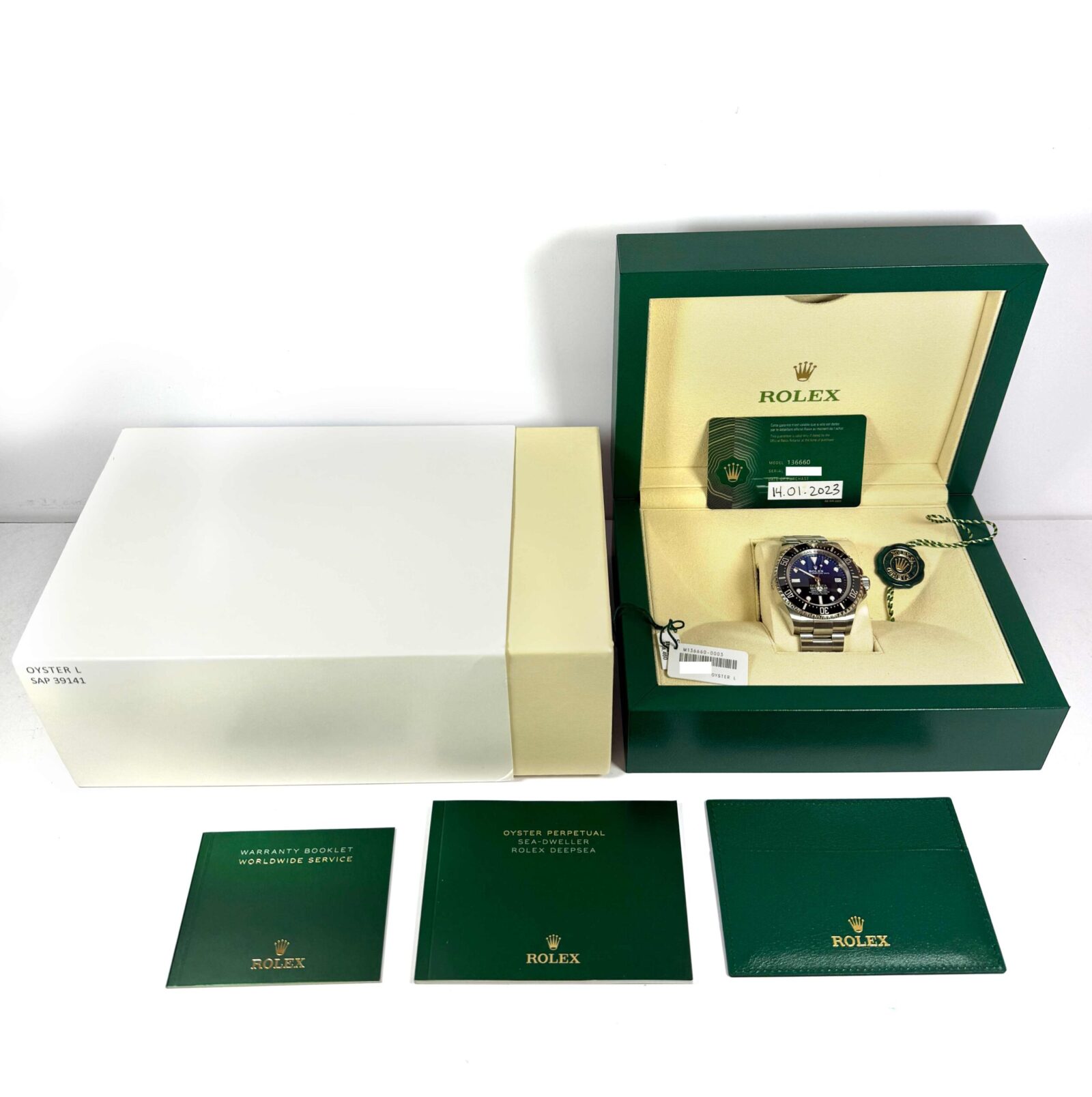 this rolex is in excellent overall condition and comes with its box, booklets, both hang tags, and warranty card dated january 14th, 2023 as shown in the pictures attached. This watch is in stock and available to ship immediately!