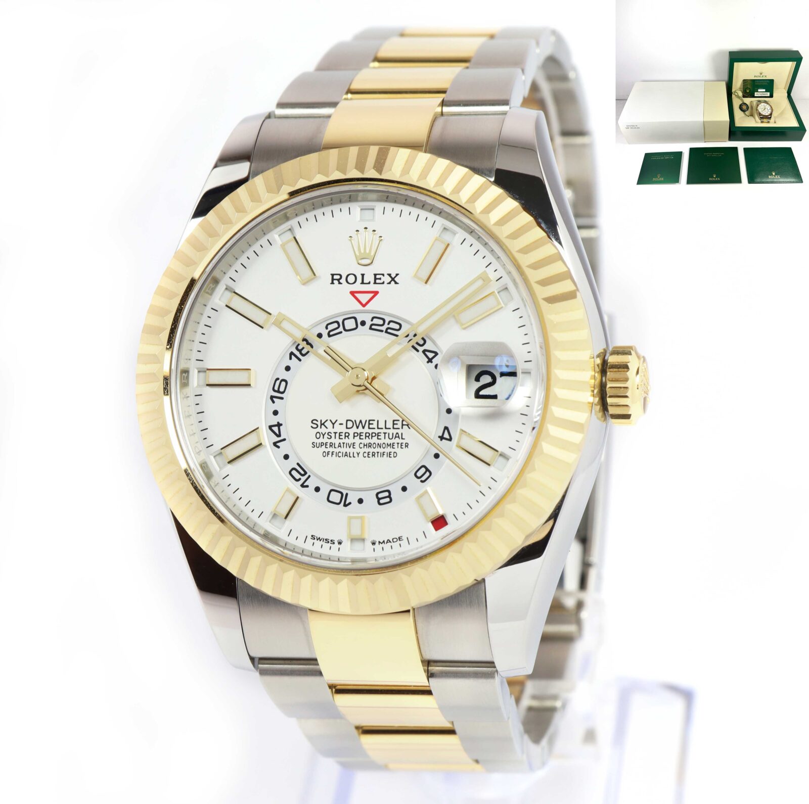This Rolex is in excellent condition and comes with its box, booklets, green hang tag, and warranty card dated December 9th, 2023 as shown in the pictures attached. This watch is in stock and available to ship immediately!