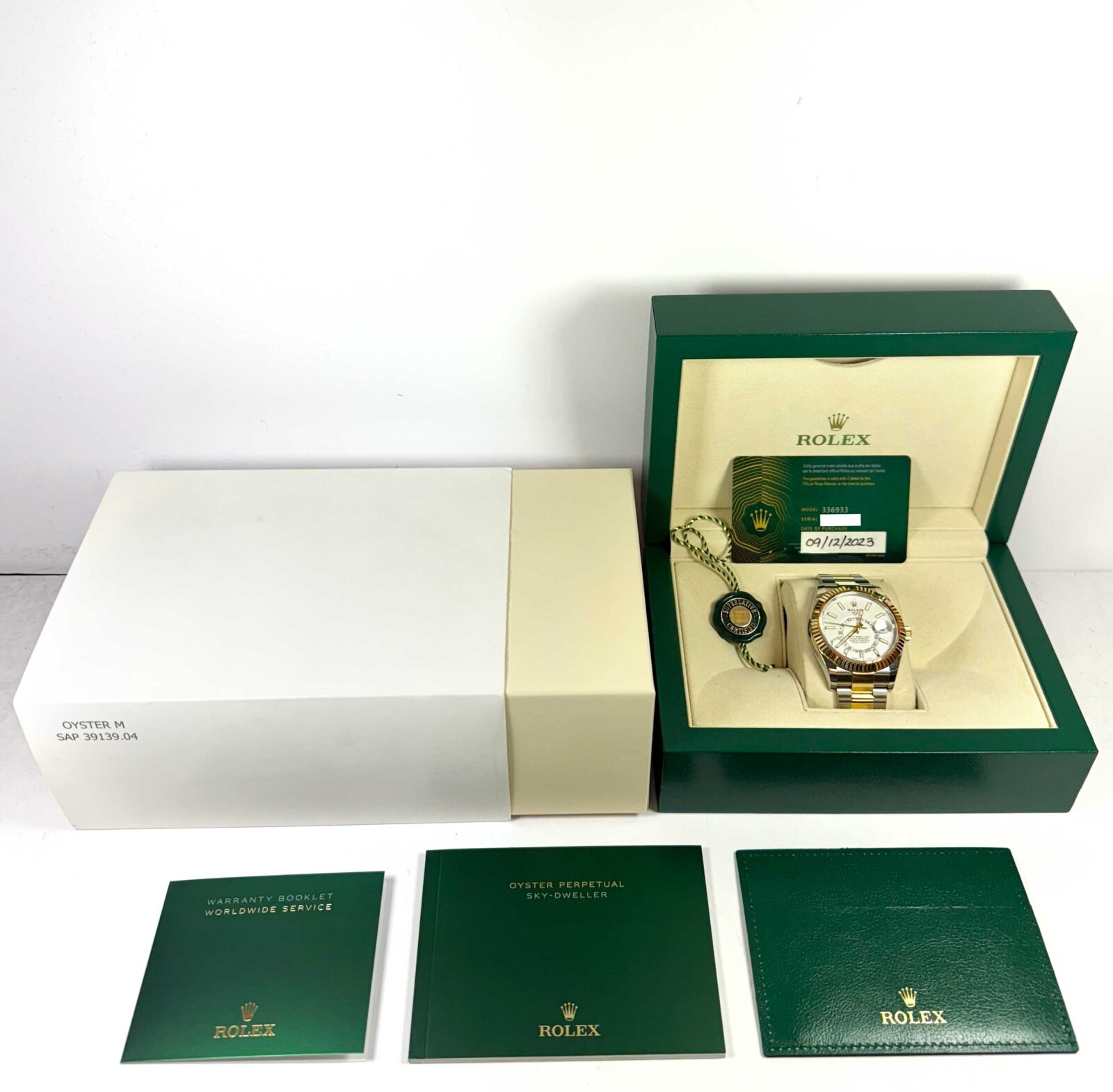 this rolex is in excellent condition and comes with its box, booklets, green hang tag, and warranty card dated december 9th, 2023 as shown in the pictures attached. This watch is in stock and available to ship immediately!