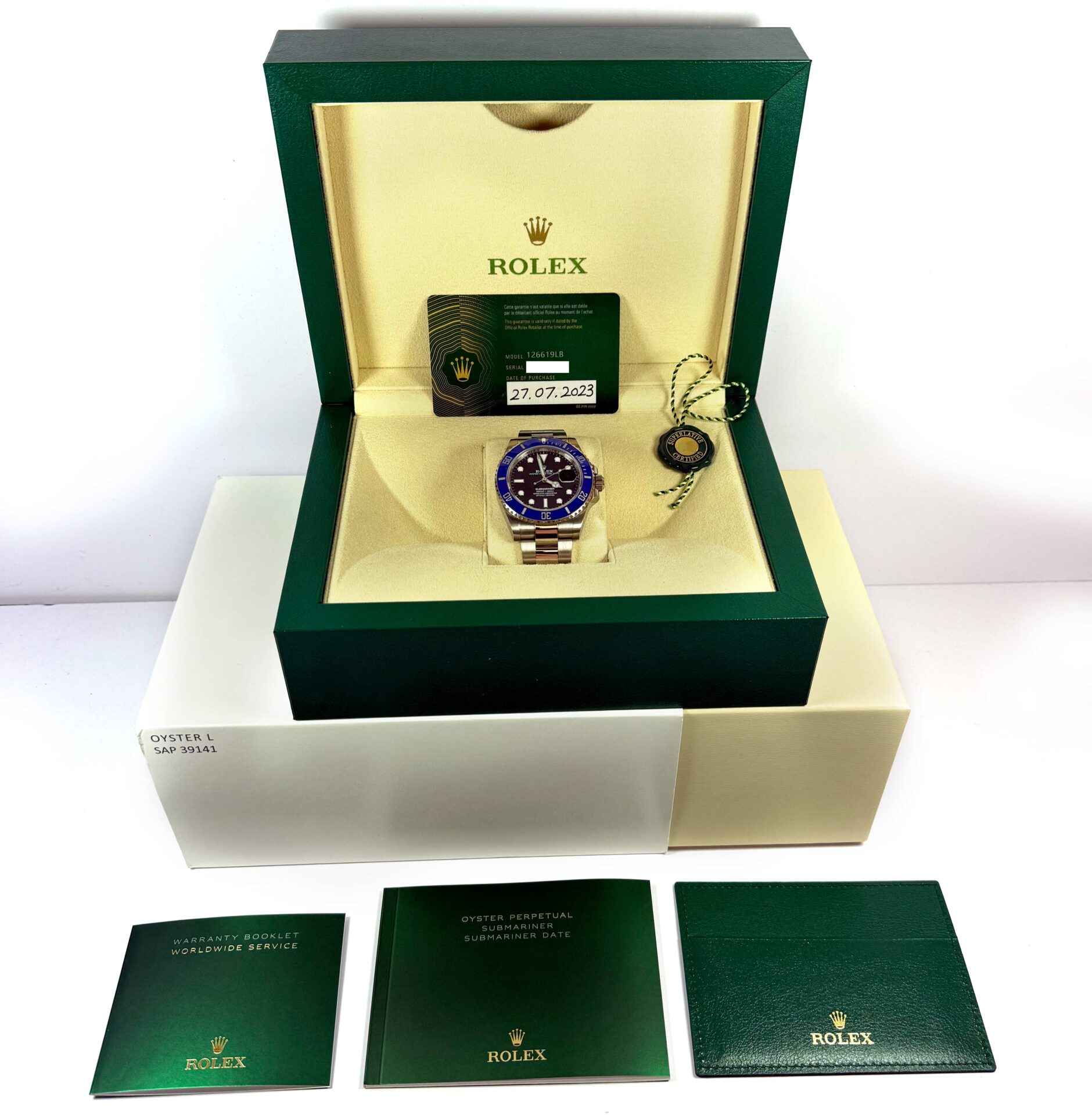 this rolex is in excellent condition and comes with its box, booklets, green hang tag, and warranty card dated july 27th, 2023 as shown in the pictures attached. This watch is in stock and available to ship immediately!