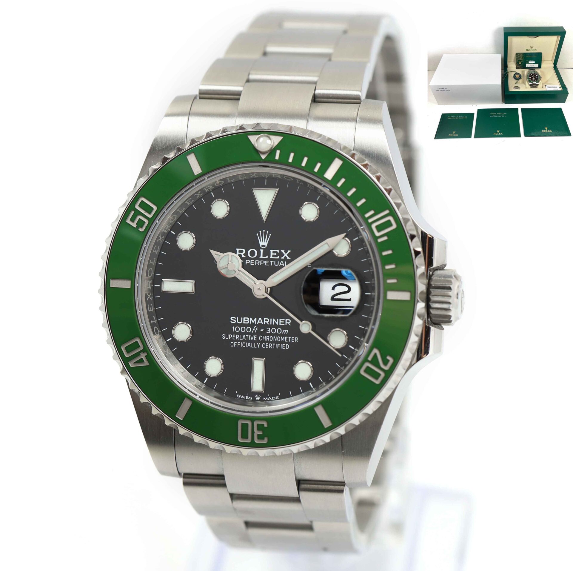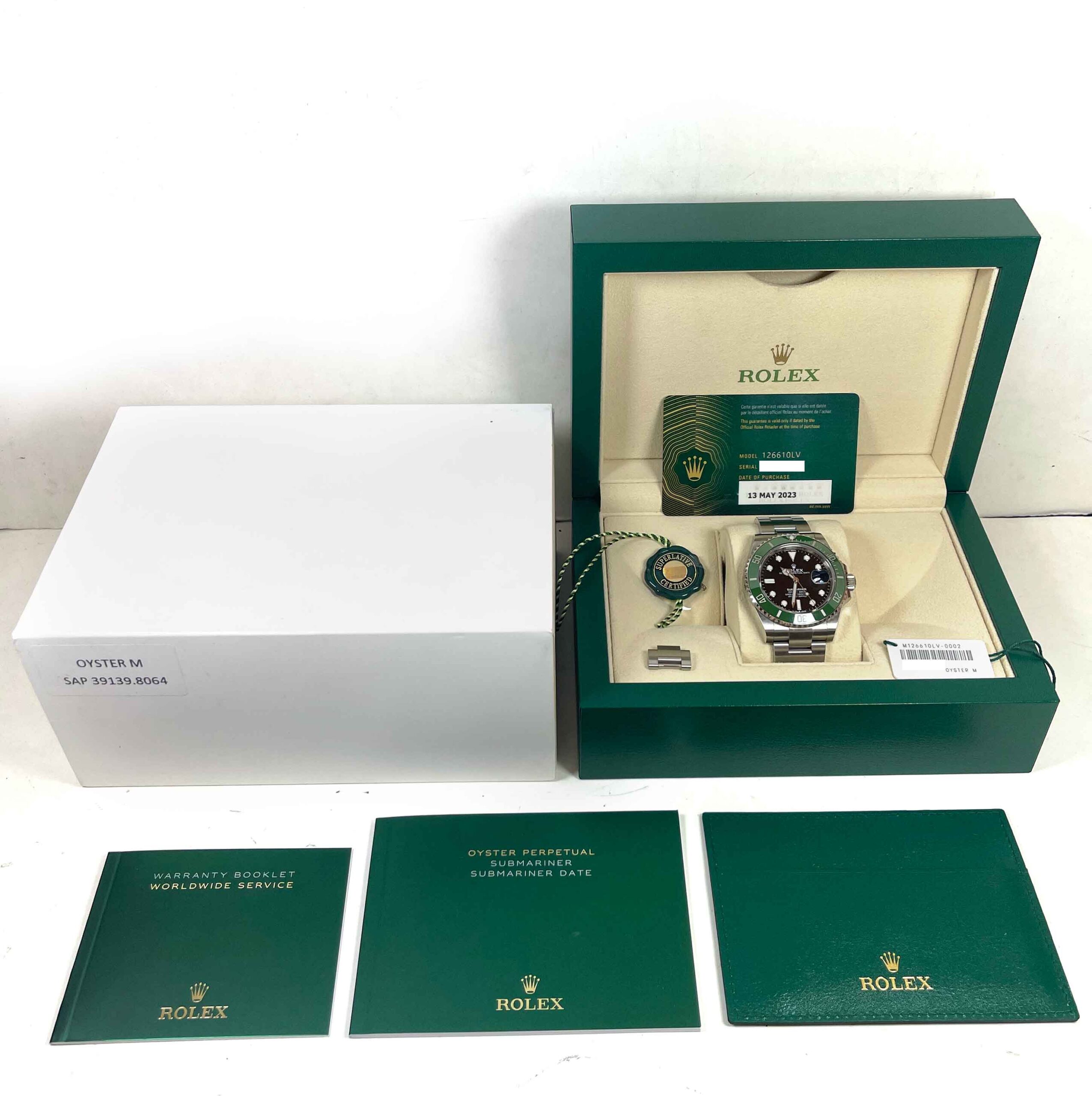 THIS ROLEX SUBMARINER IS IN EXCELLENT OVERALL CONDITION AND COMES WITH ITS BOX, BOOKLETS, SPARE LINK, BOTH HANG TAG, AND WARRANTY CARD DATED MAY 13TH, 2023 AS SHOWN IN THE PICTURES ATTACHED. THIS WATCH IS IN STOCK AND AVAILABLE TO SHIP IMMEDIATELY!