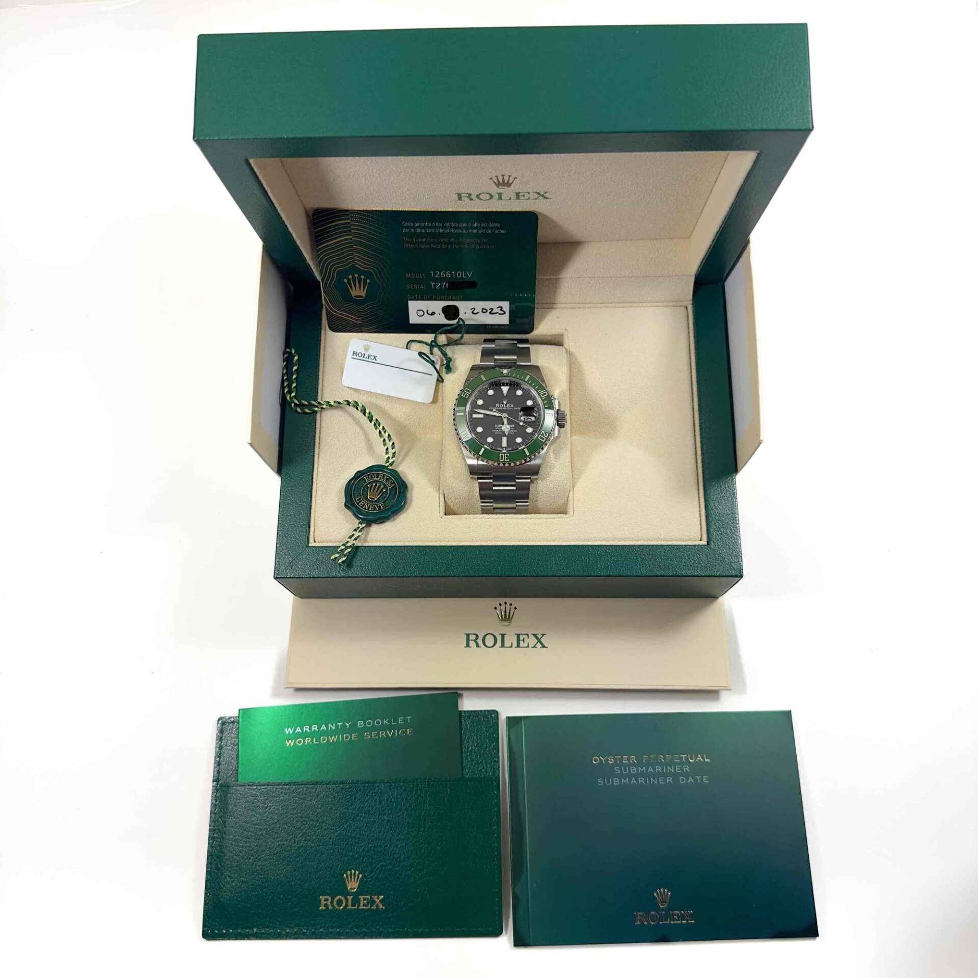 THIS ROLEX IS IN VERY GOOD CONDITION SHOWING VERY MINIMAL SIGNS OF WEAR CONSISTENT WITH OTHER LIGHTLY WORN PREOWNED WATCHES. THIS COMES WITH ITS BOX, BOOKLETS, BOTH HANG TAGS, AND WARRANTY CARD DATED JUNE 2023.