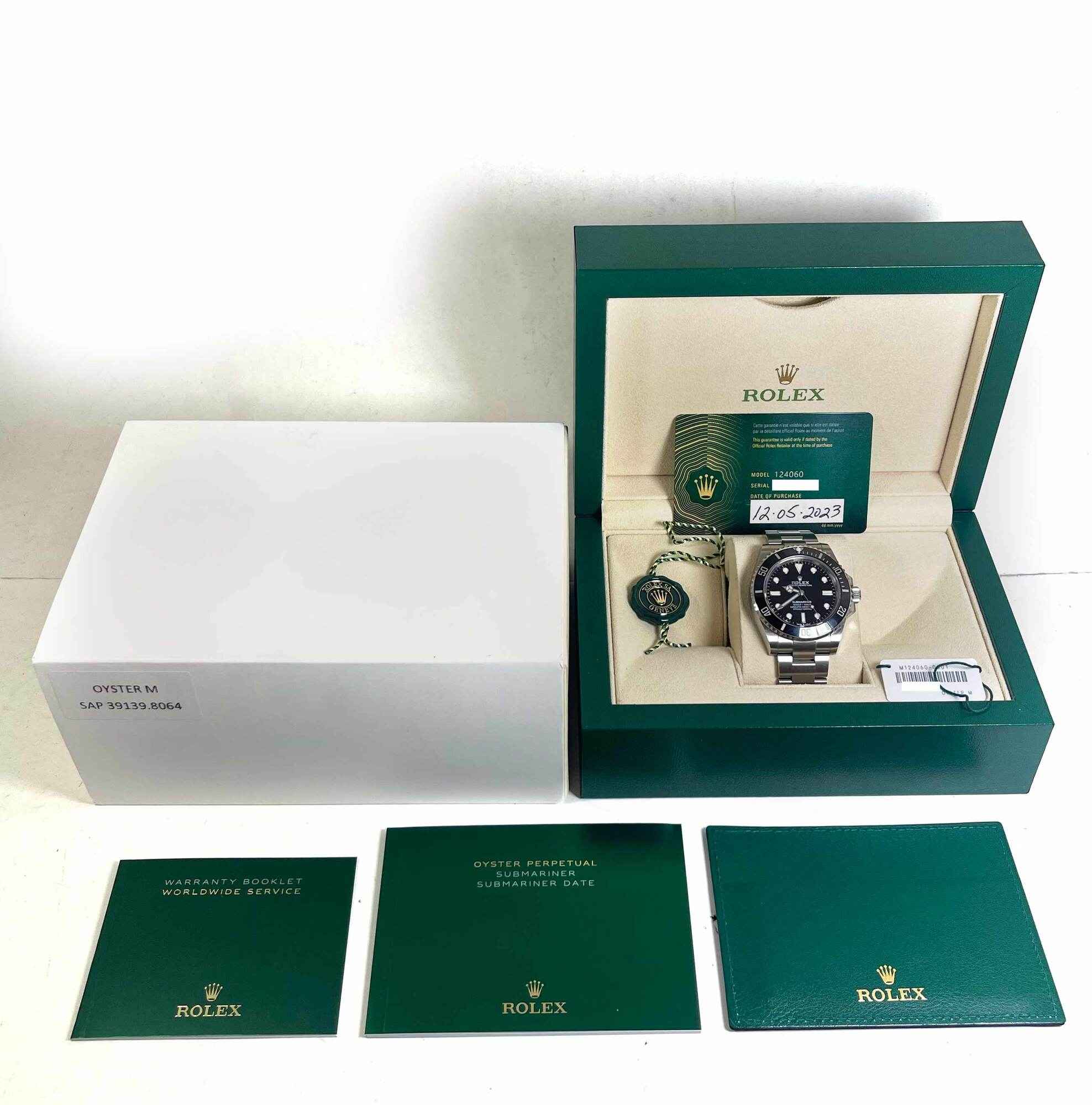 THIS ROLEX IS IN EXCELLENT CONDITION AND COMES WITH ITS BOX, BOOKLETS, BOTH HANG TAGS, AND WARRANTY CARD DATED MAY 12TH, 2023 AS SHOWN IN THE PICTURES ATTACHED. THIS WATCH IS IN STOCK AND AVAILABLE TO SHIP IMMEDIATELY!