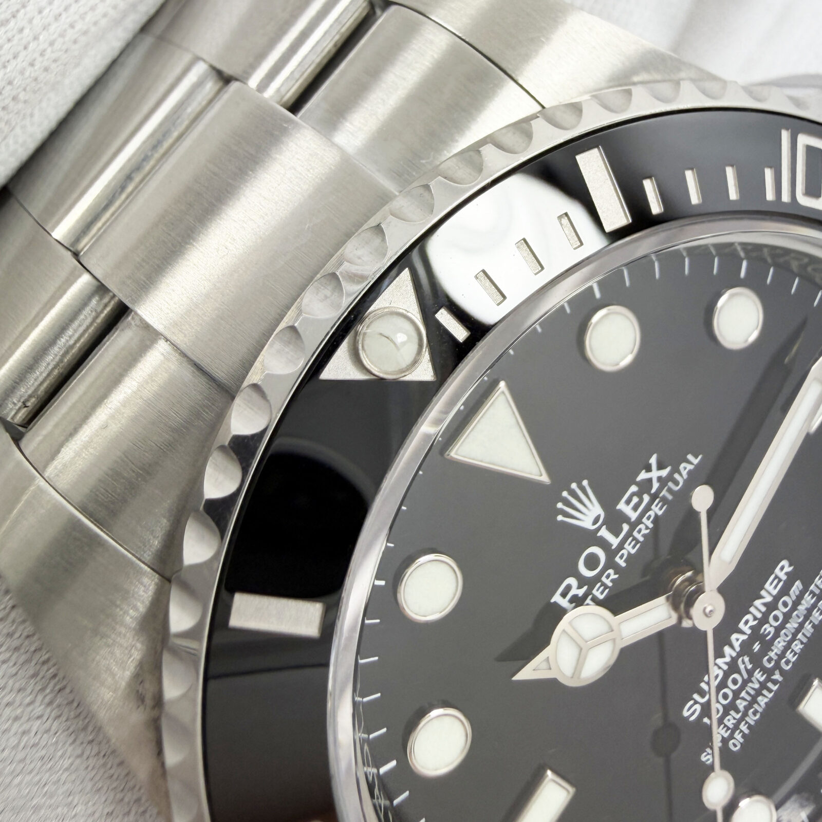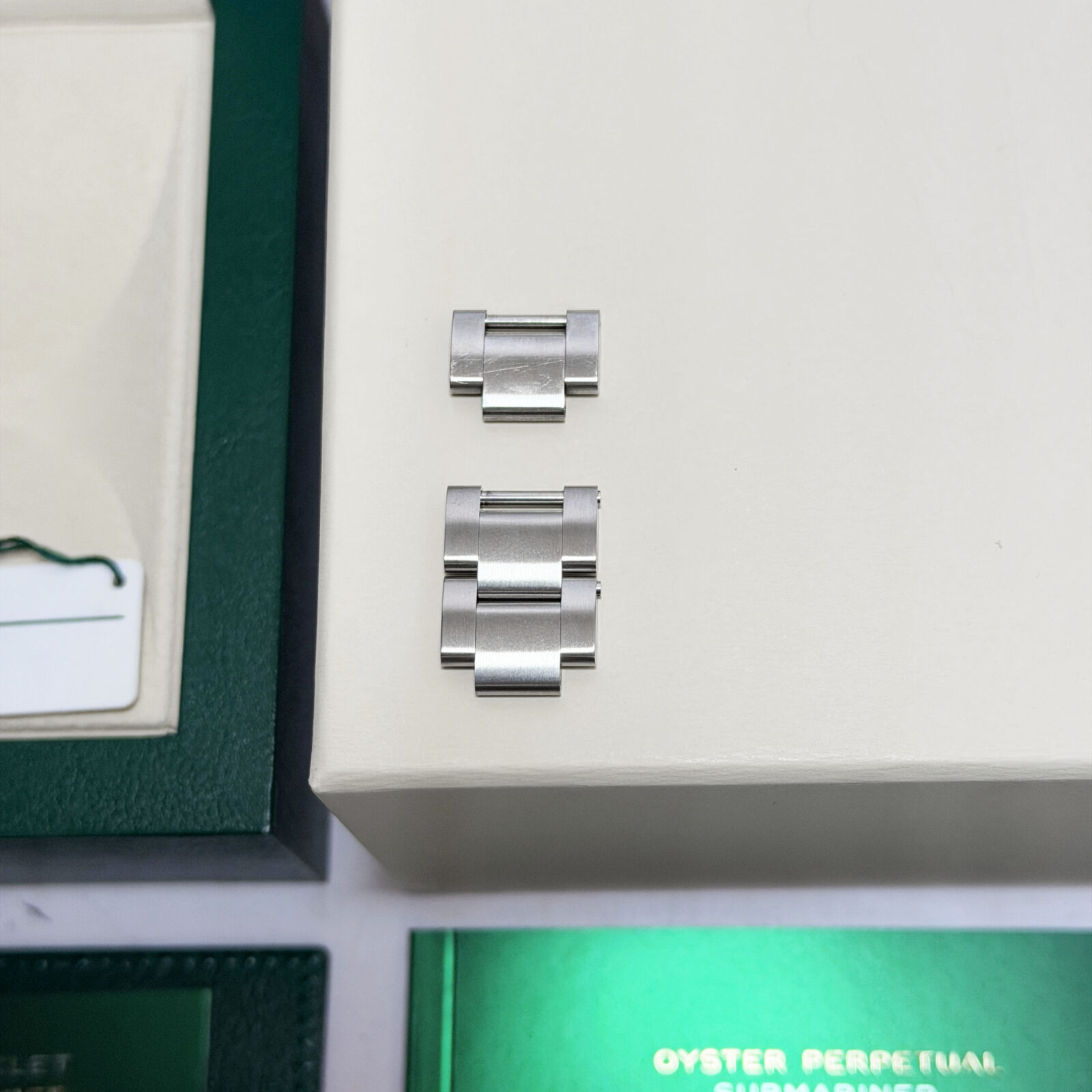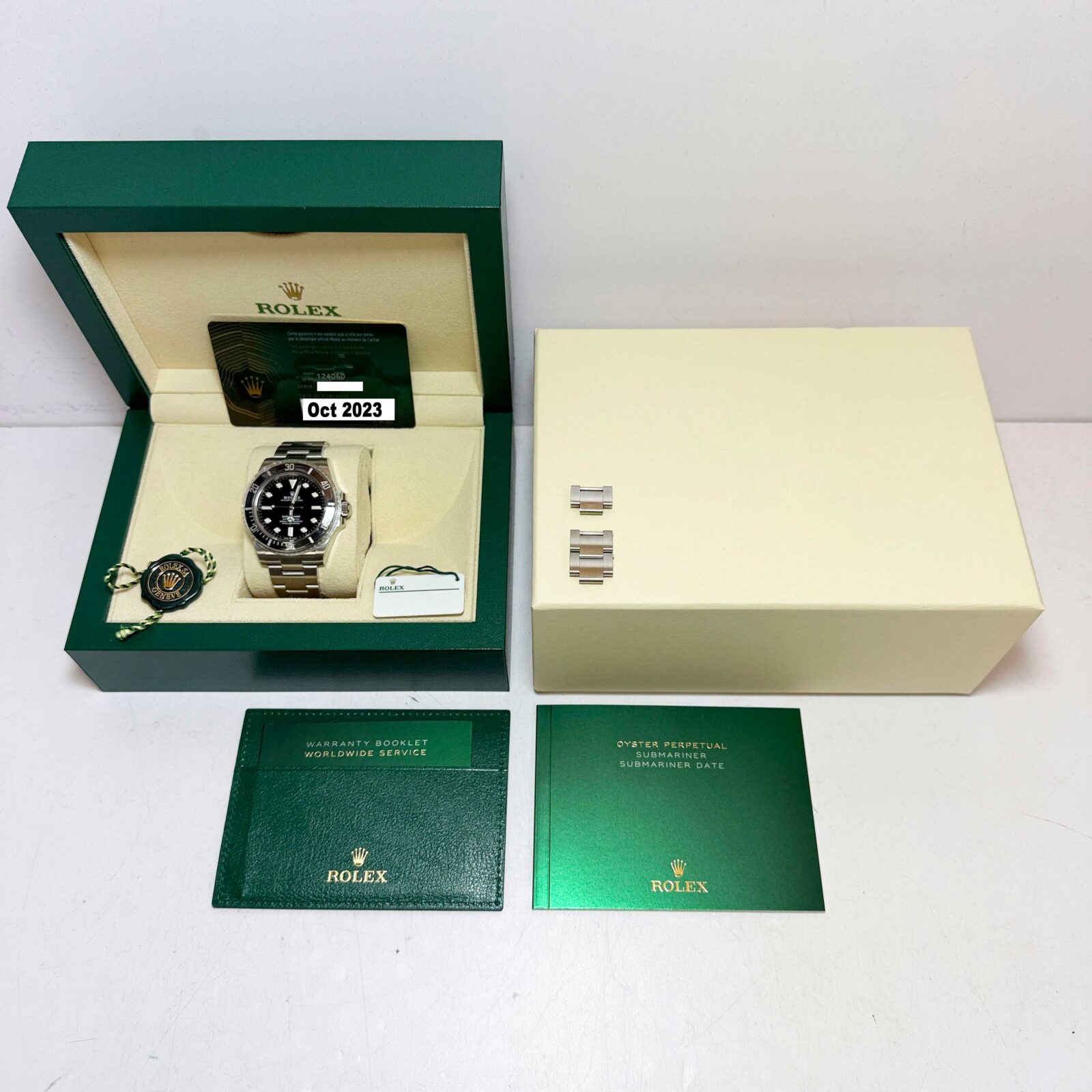 This Rolex Submariner watch comes with its box, booklets, hangtags, extra links, and warranty card dated October, 2023. Please note that there is a crack on the pearl as shown in the picture. The photos shown are of the exact watch being sold and accurately re...