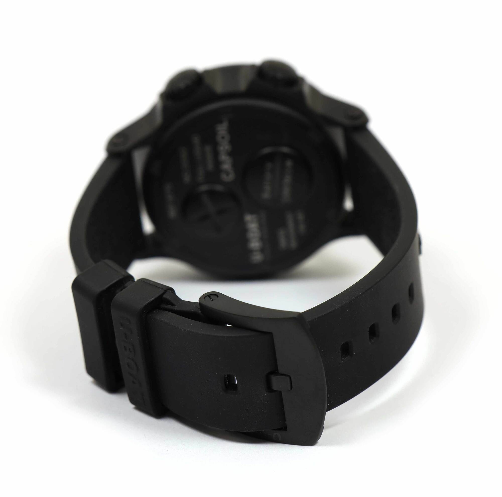 Read Morethis u-boat watch is in excellent overall condition and comes with its box, one additional black leather strap, and warranty card dated august, 2023 as shown in the pictures attached. This watch features a 45mm black dlc steel case that surrounds a black dial with oily fluid filled inside and comes on a black rubber strap with a tang buckle. This watch is in stock and available to ship immediately!