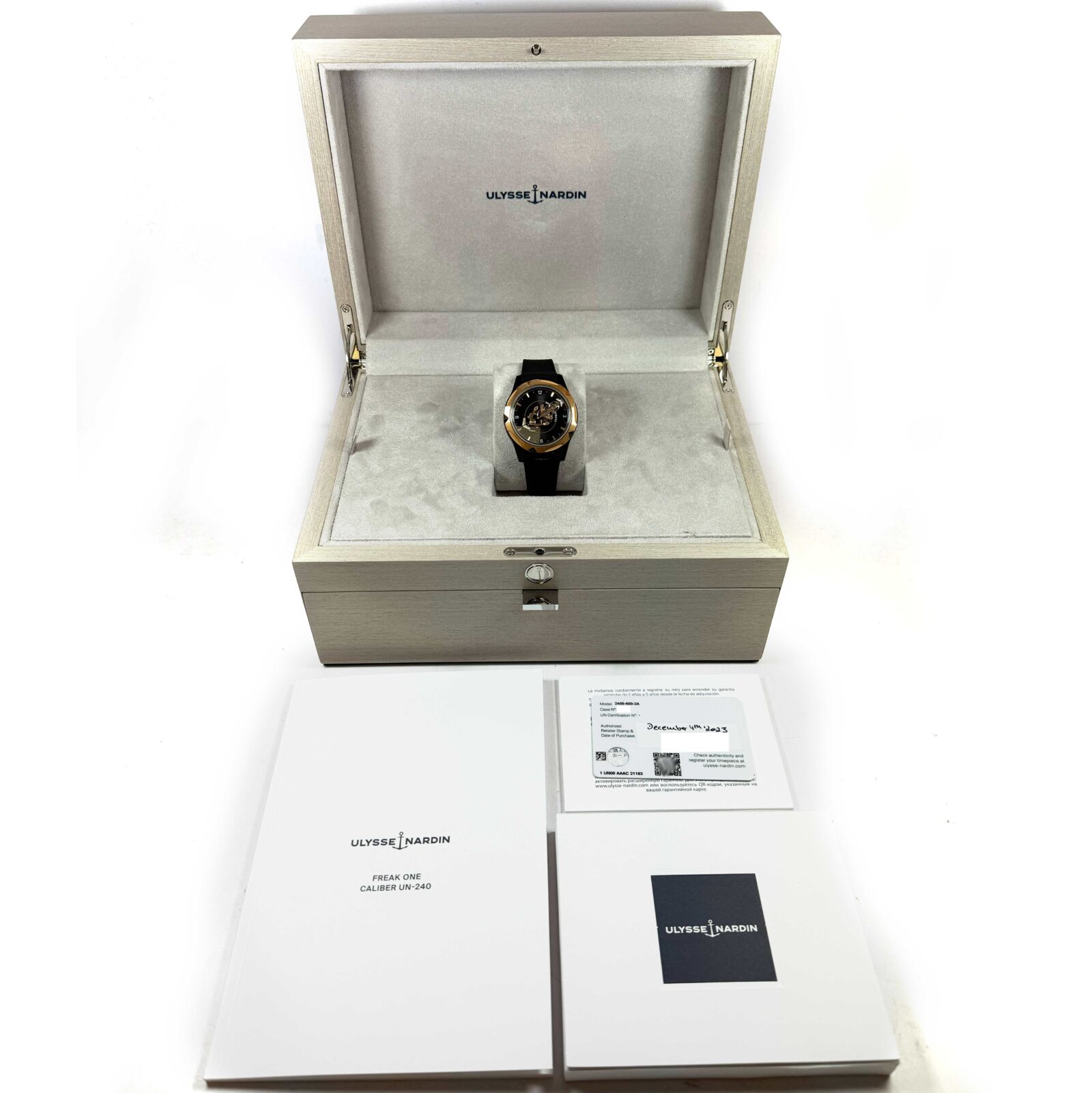 this ulysse nardin watch is in excellent overall condition showing some signs of surface wear consistent with preowned watches. This comes with its box, booklets, and warranty card dated december 4th, 2023 as shown in the pictures attached. This watch is in stock and available to ship immediately!