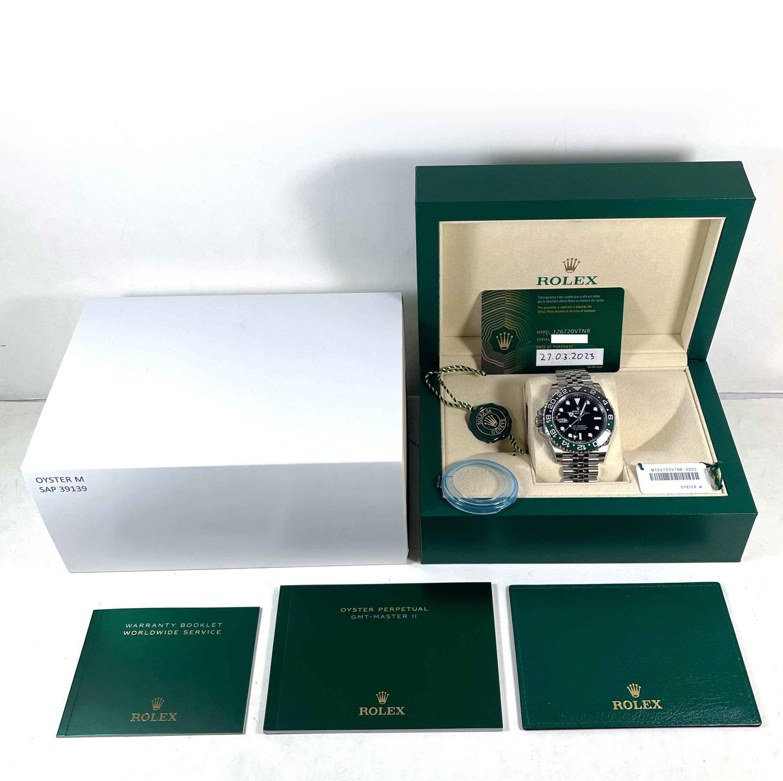 Read Morethis rolex is new and comes with stickers on the caseback as shown in the pictures attached. This watch comes with its box, booklets, hang tags, bezel protector, and warranty card date march 27th, 2023. This watch is in stock and available to ship immediately!