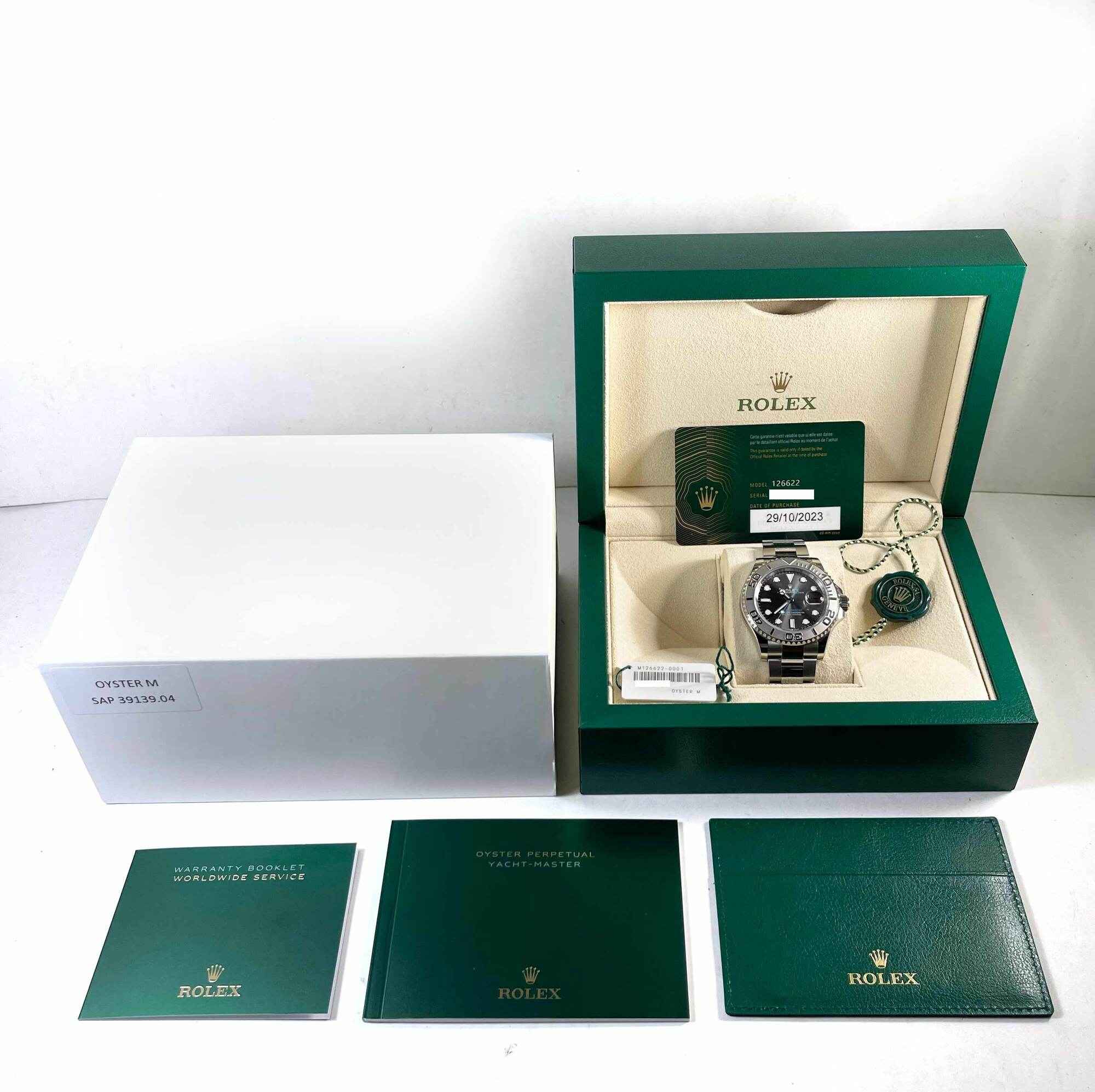 this rolex is unworn and comes with its box, booklets, both hang tags, and warranty card dated october 29th, 2023 as shown in the pictures attached. This watch is in stock and available to ship immediately!