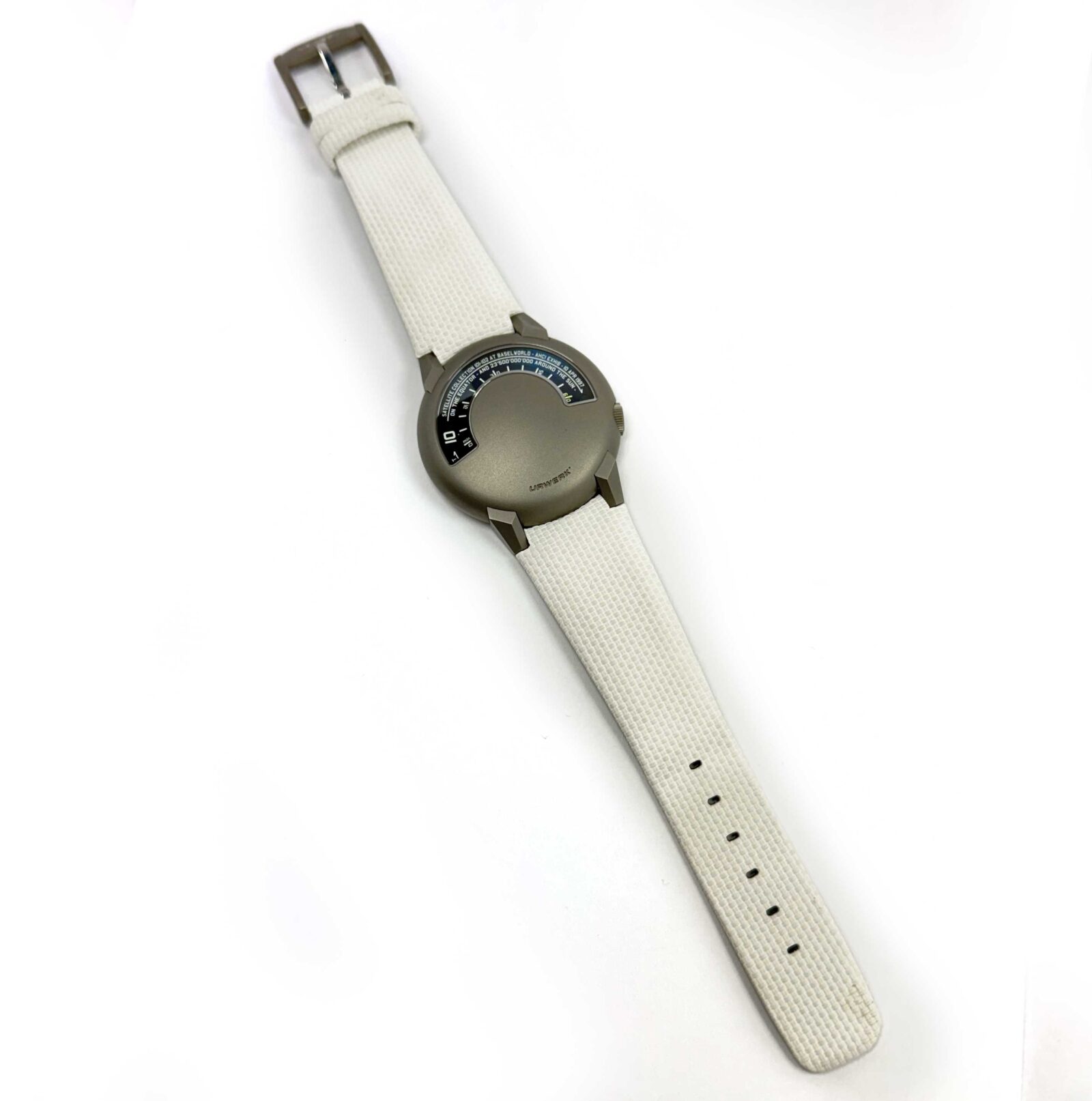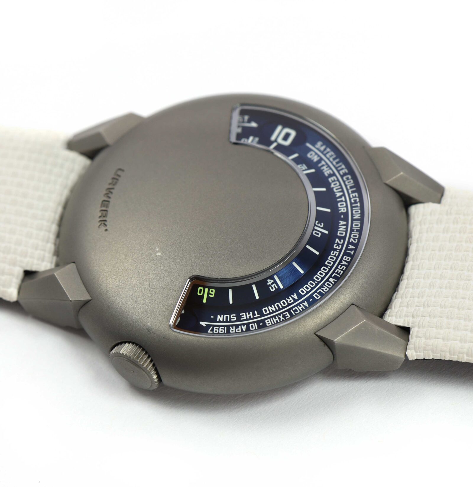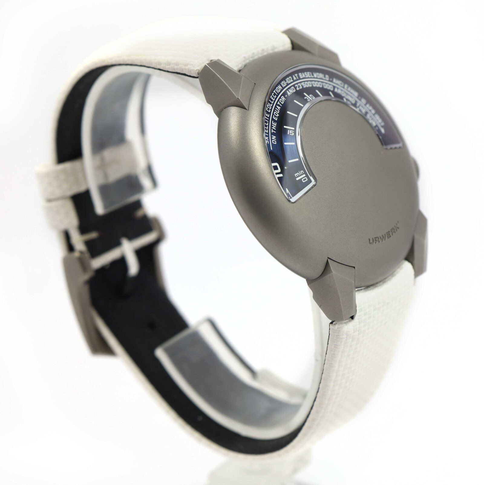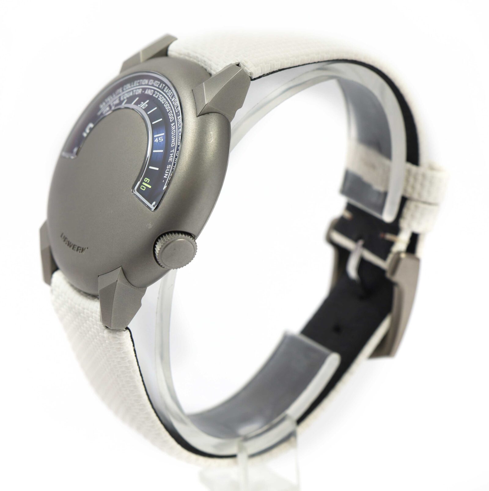 This Urwerk watch is in excellent condition and comes with its box, booklets, one additional rubber camo strap, and warranty card as shown in the pictures attached. This watch is in stock and available to ship immediately!