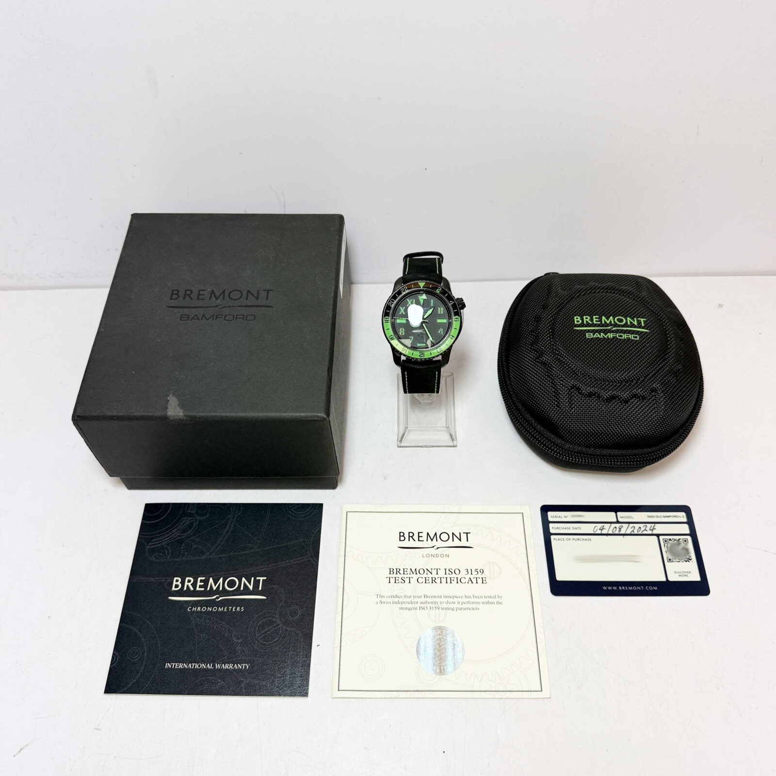 this bremont bamford aurora watch is new and comes with its box, booklets, and warranty card dated august 4th, 2024. The photos shown are of the exact watch being sold and accurately represent its condition. This watch is in stock and ready to ship immediately!