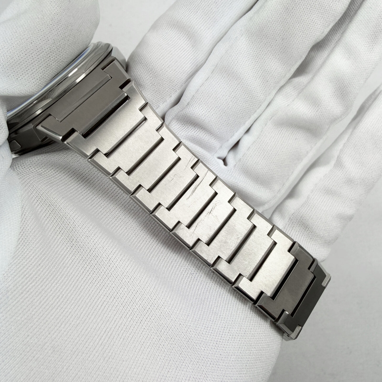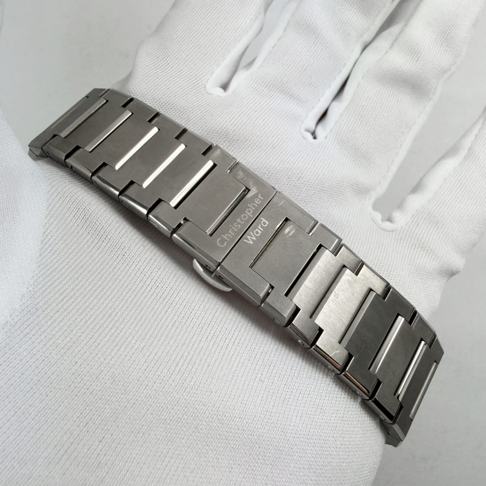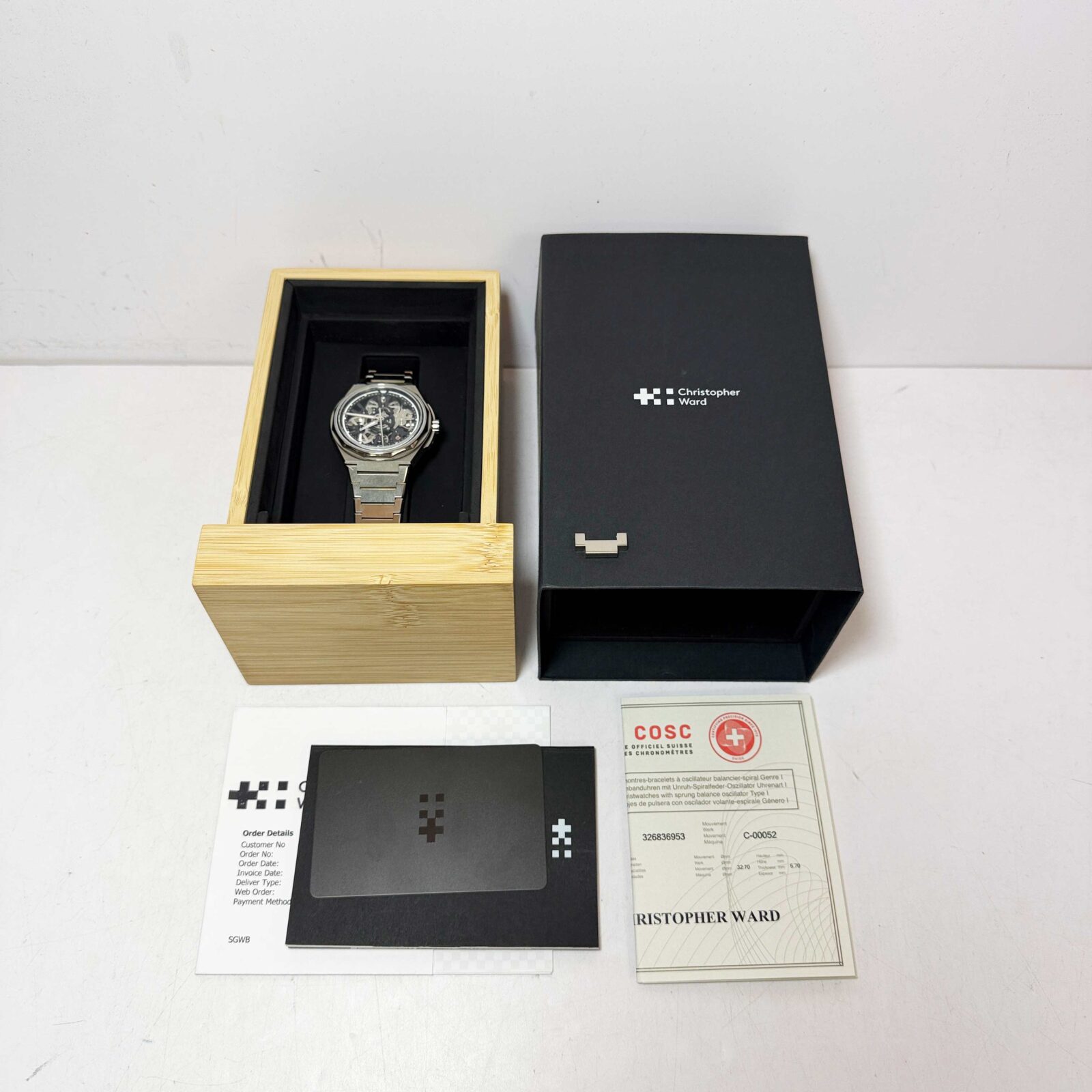 this christopher ward twelve x watch comes with its box, papers, extra link and warranty card dated november 2024. The photos shown are of the exact watch being sold and accurately represent its condition. This watch is in stock and ready to ship immediately!
