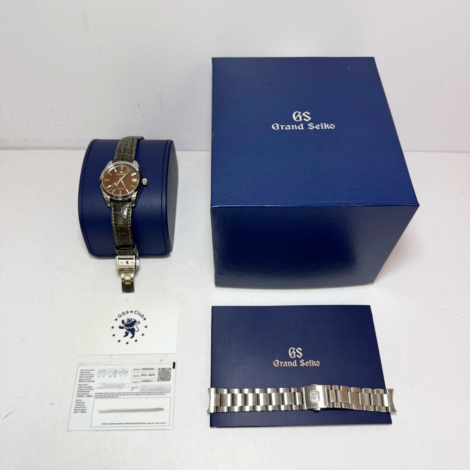 this grand seiko watch comes with its box, booklet, extra bracelet, and warranty card dated august 29th, 2024. The photos shown are of the exact watch being offered and accurately reflect its condition. This watch is in stock and ready to ship immediately!