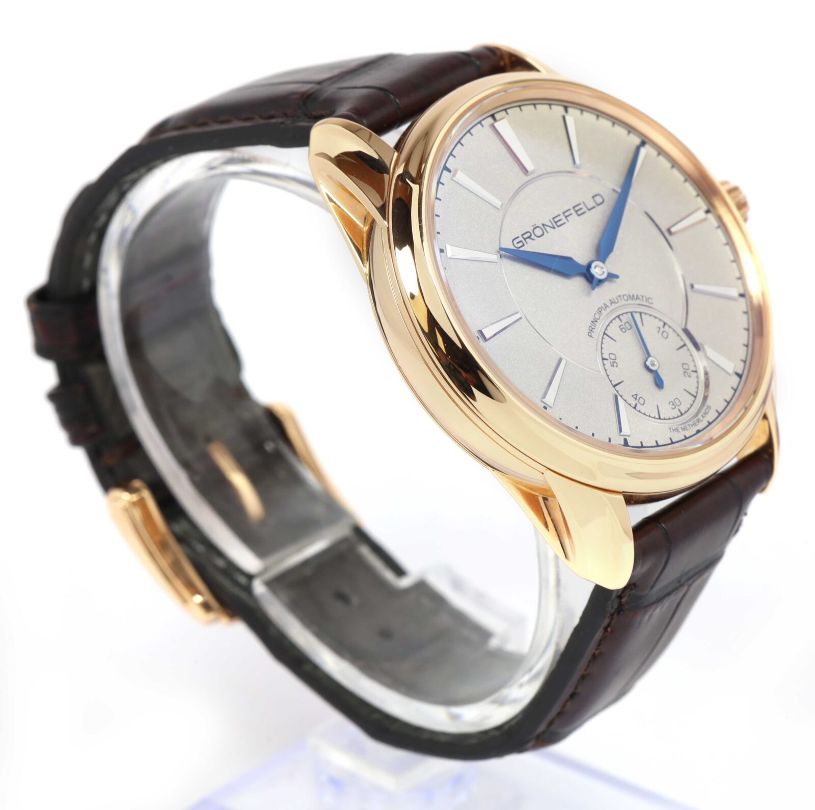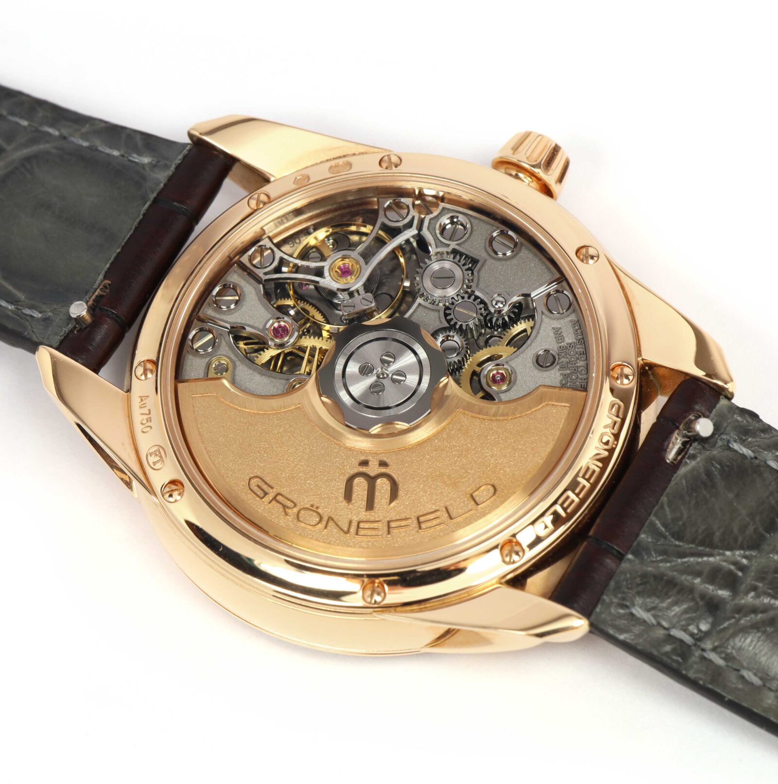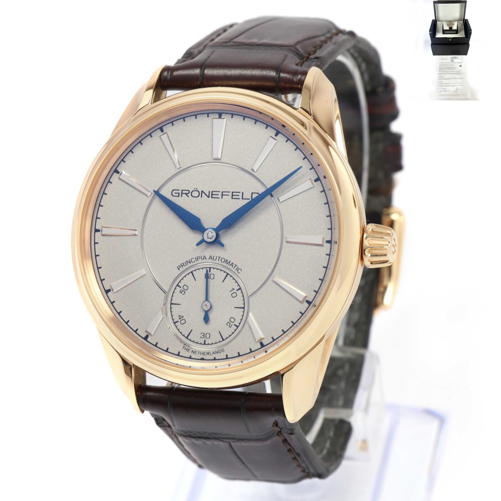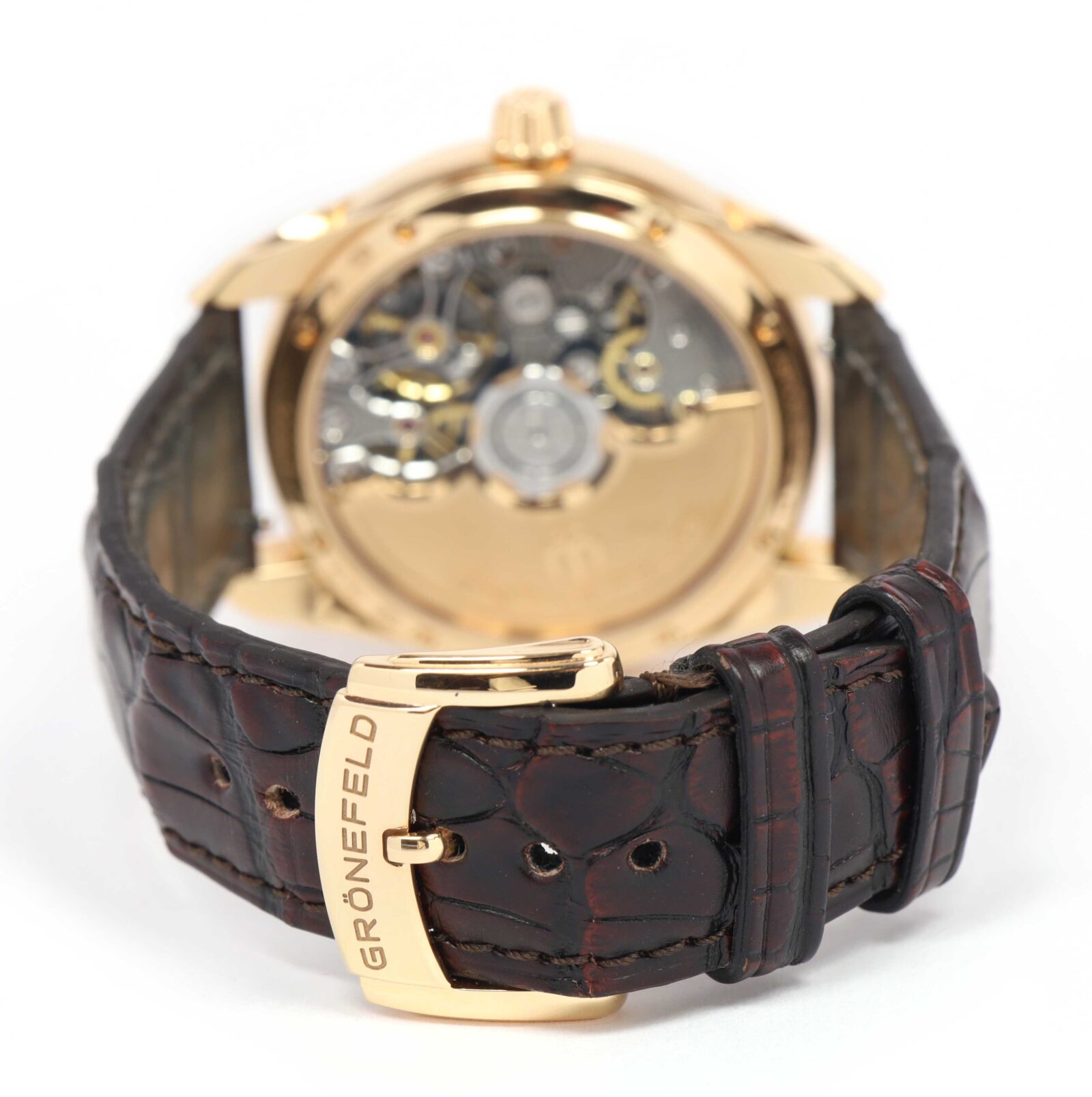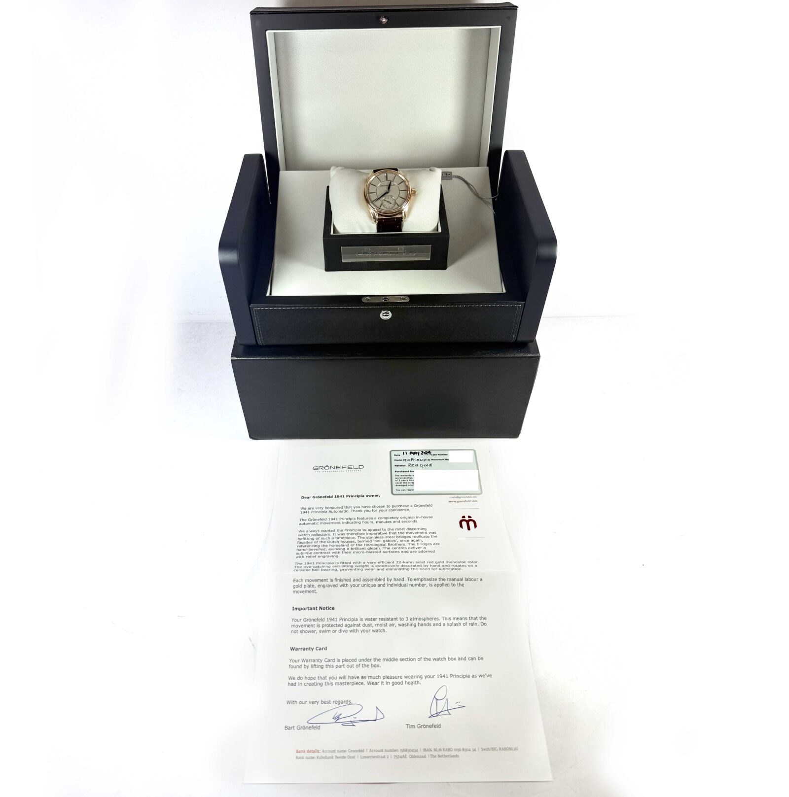 this gronefeld watch is in excellent condition and comes with its box and warranty card dated may 11th, 2024 as shown in the pictures attached. This watch is in stock and available to ship immediately!