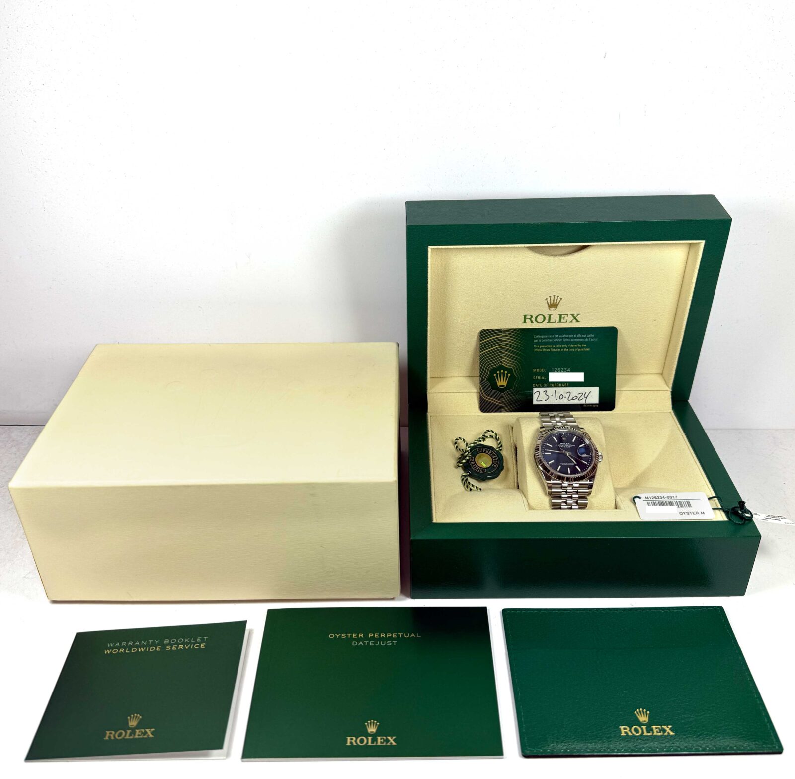 this rolex is in excellent condition and comes with its box, booklets, hang tags, and warranty card dated october 23rd, 2024 as shown in the pictures attached. This watch is in stock and available to ship immediately!