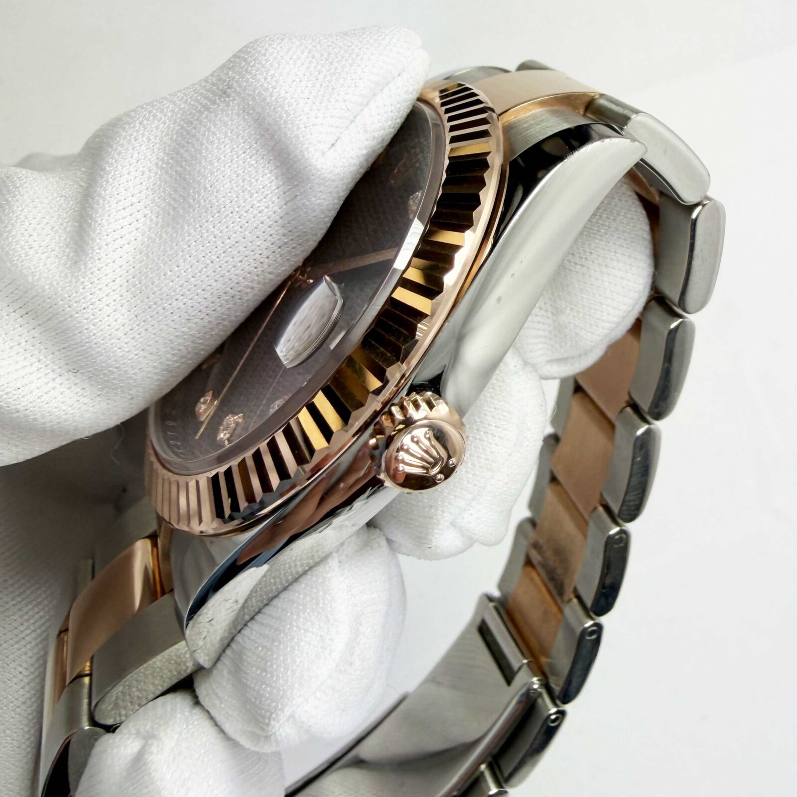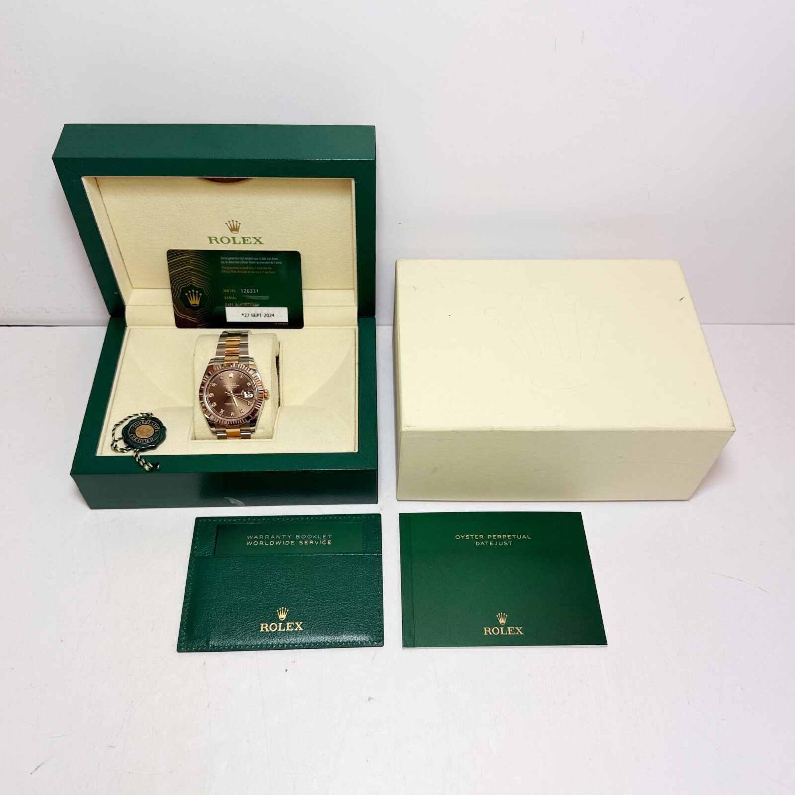 This Rolex Datejust watch comes with its box, hang tag, booklets, and warranty card dated September 27th, 2024. The photos shown are of the exact watch being offered and accurately reflect its condition. This watch is in stock and ready to ship immediately.