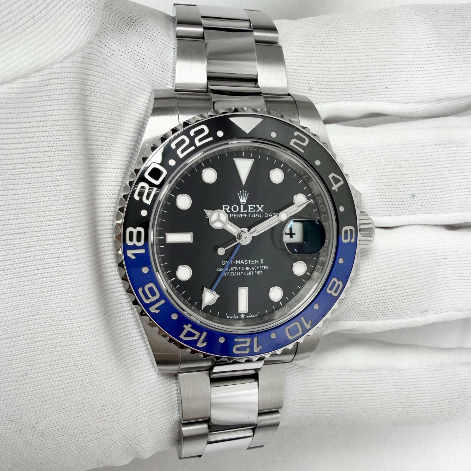 This Rolex GMT-Master II watch comes with its box, booklets, hangtags, and warranty card dated March 15th, 2024. The photos shown are of the exact watch being sold and accurately represent its condition. This watch is in stock and ready to ship immediately!