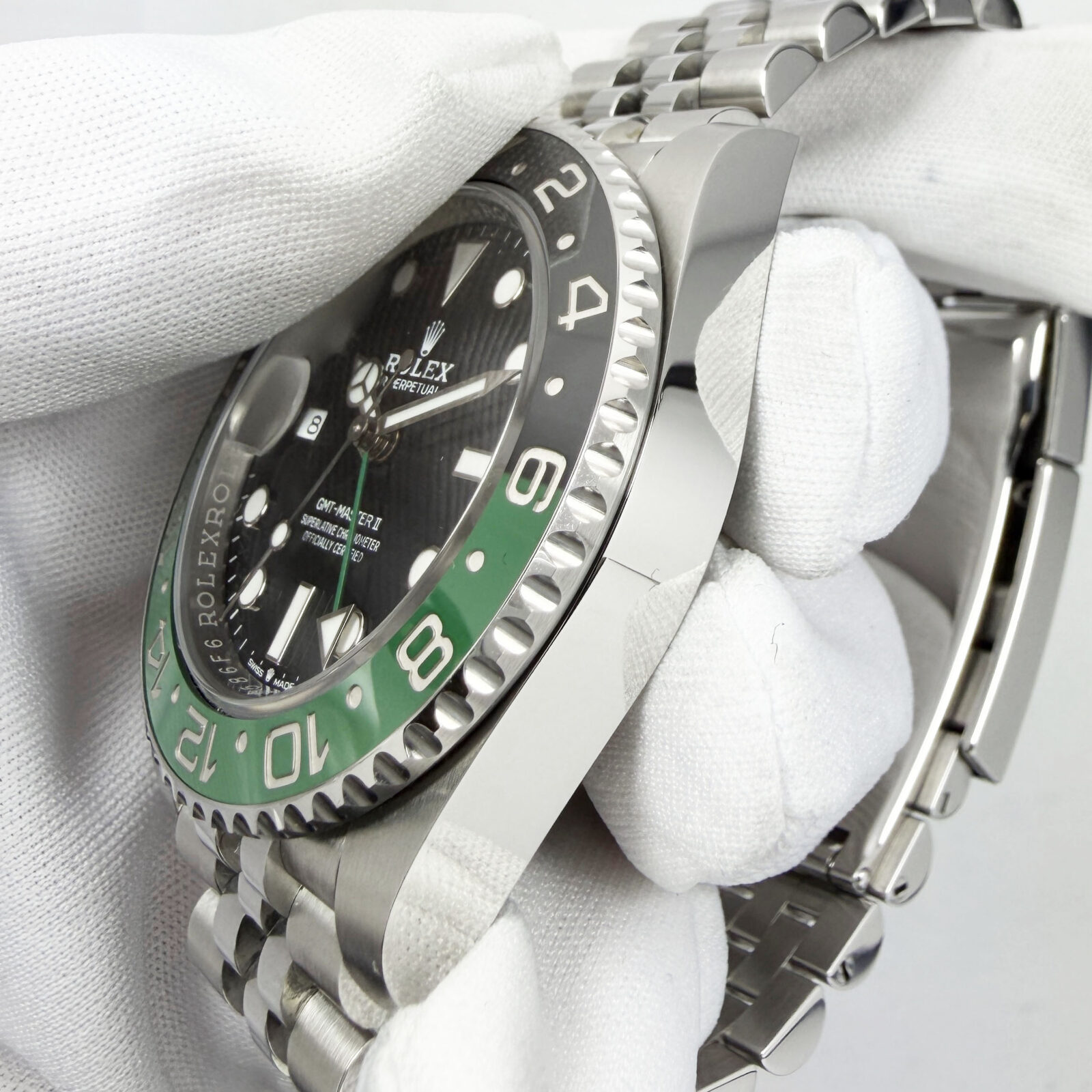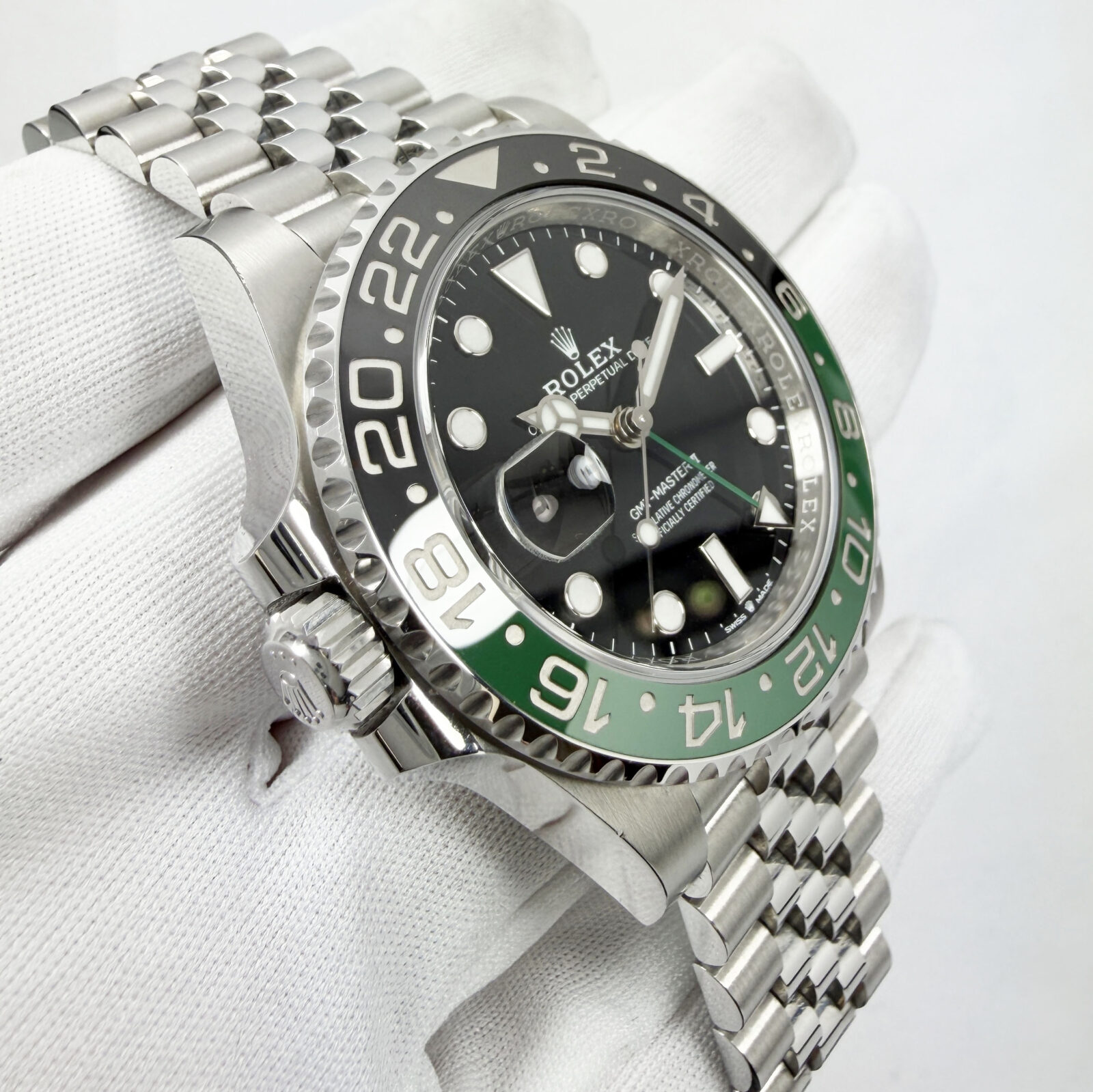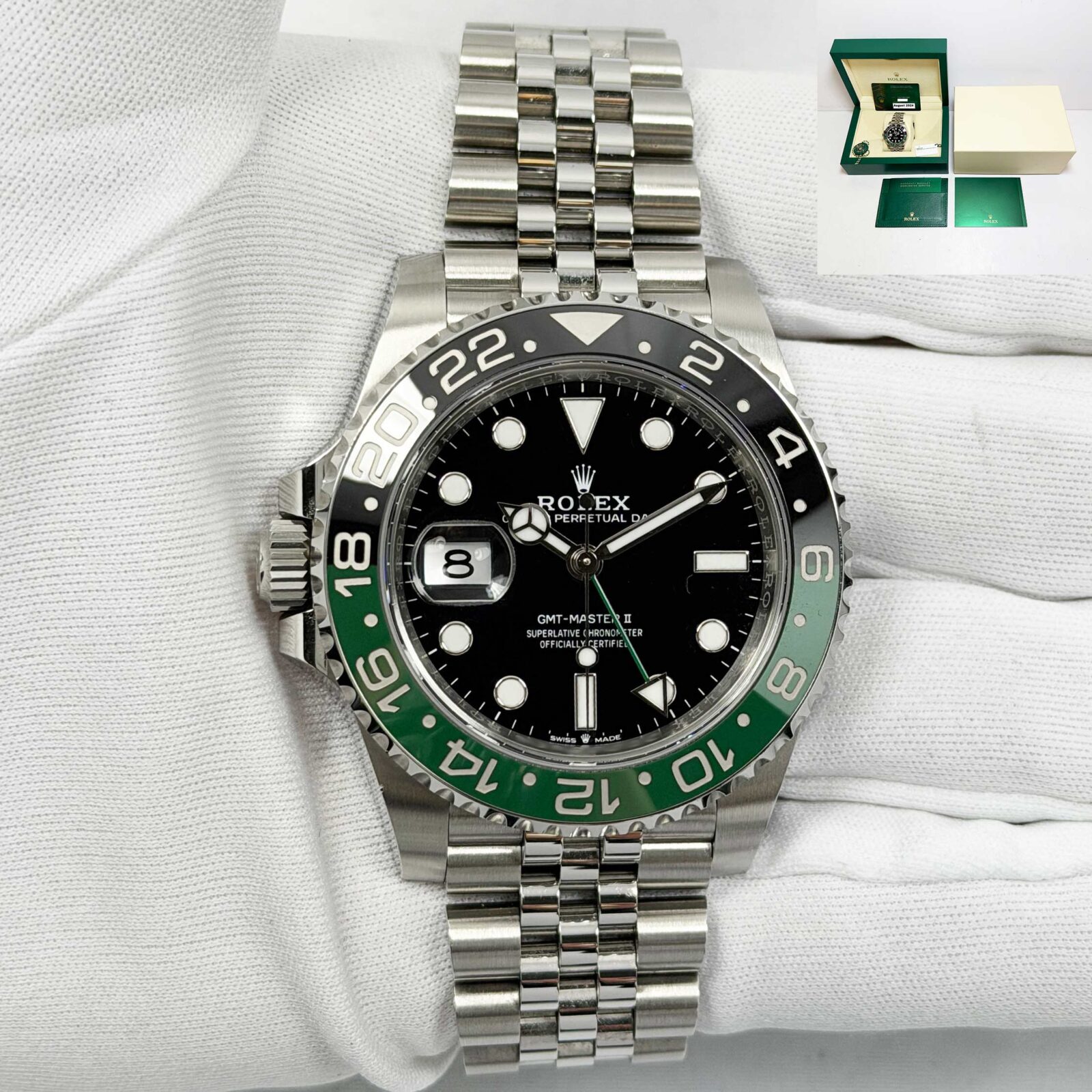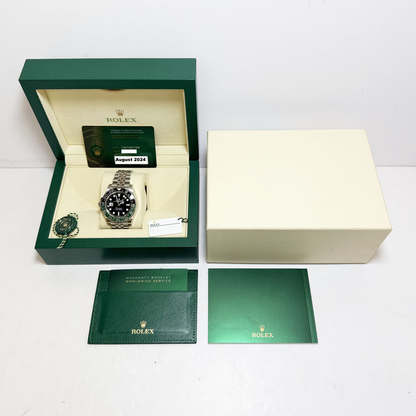 This Rolex GMT-Master II watch comes with its box, hangtags, booklets, and warranty card dated August, 2024. The photos shown are of the exact watch being sold and accurately represent its condition. This watch is in stock and ready to ship immediately!
