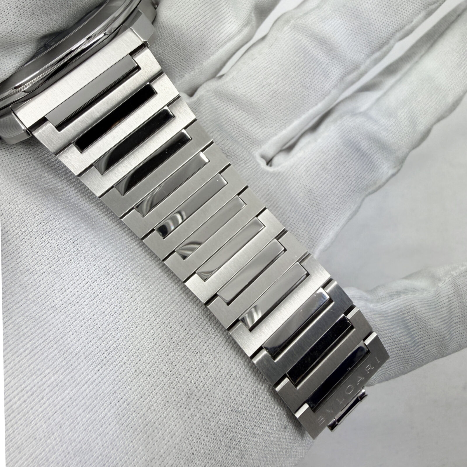 This Bulgari Octo watch comes with its box, extra straps, and warranty paper dated November, 2025. The photos shown are of the exact watch being sold and accurately represent its condition. This watch is in stock and ready to ship immediately!