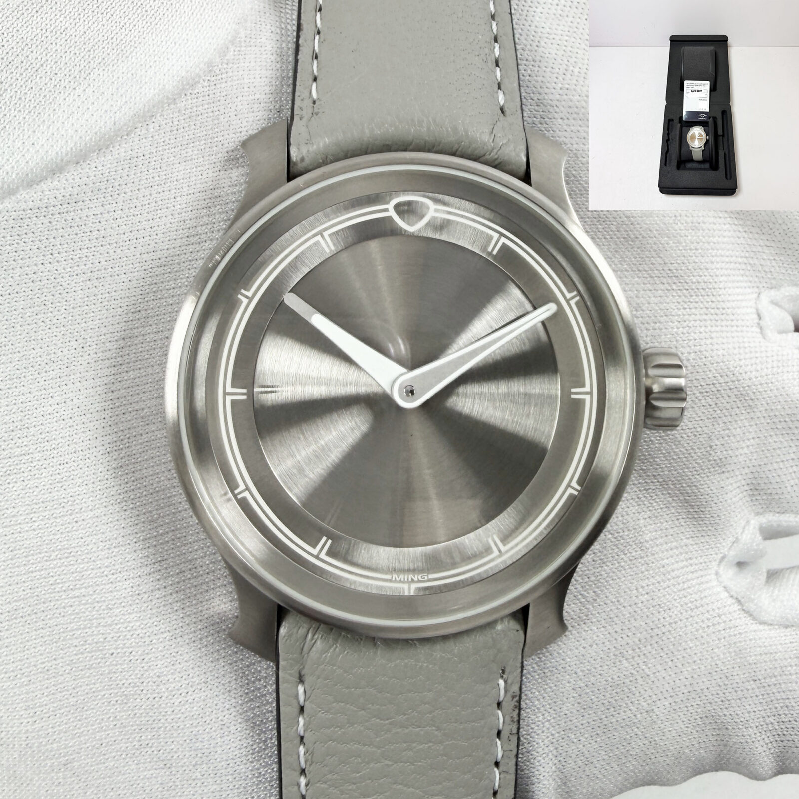 This Ming watch comes with its box and warranty card dated April, 2025. The photos shown are of the exact watch being sold and accurately represent its condition. This watch is in stock and ready to ship immediately!