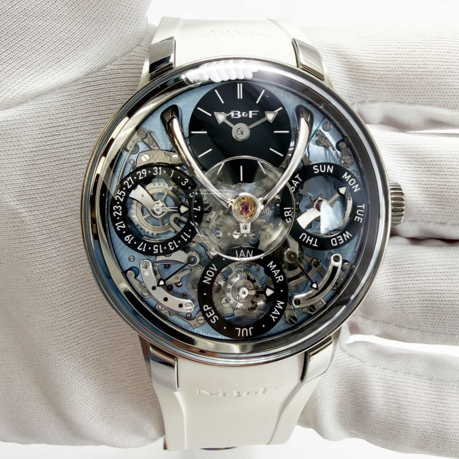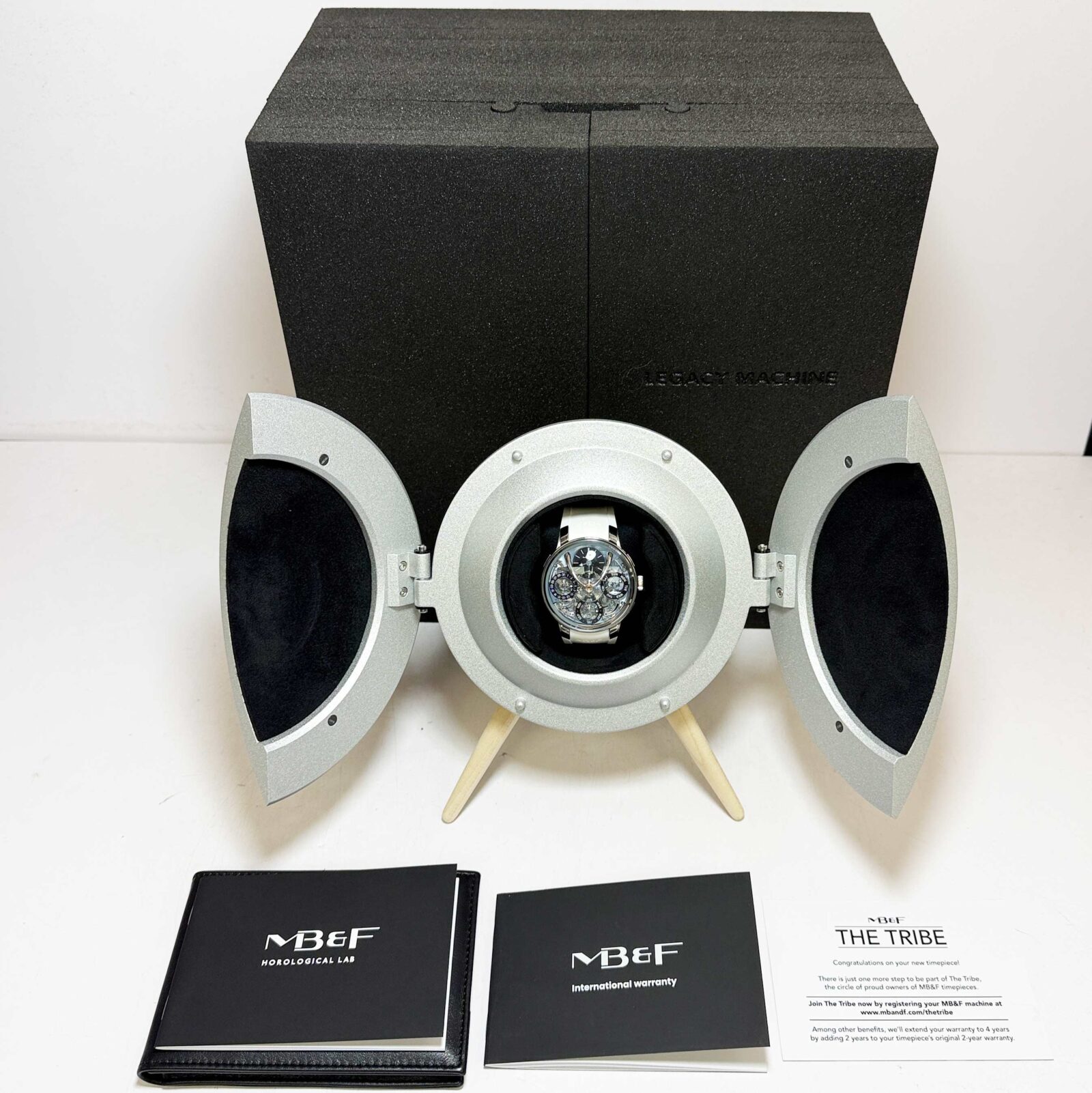 this brand new mb&f watch comes with its box, booklets, and warranty card as shown in the picture. The photos being shown are of the exact watch being sold and accurately represent its condition. This watch is in stock and ready to ship immediately!