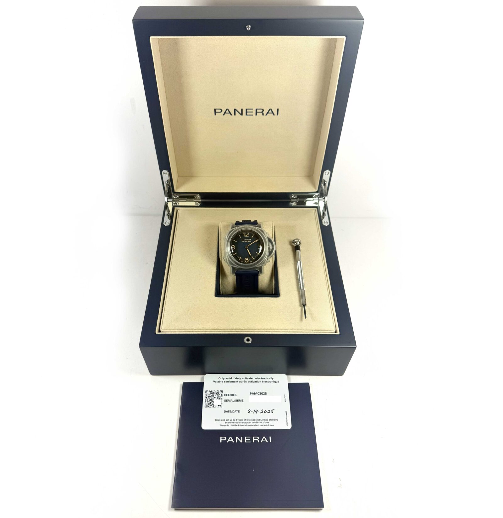 This Panerai watch is new and comes with its box, booklets, Panerai tool, bezel protector, and warranty card dated August 14th, 2025 as shown in the pictures attached. This watch is in stock and available to ship immediately!