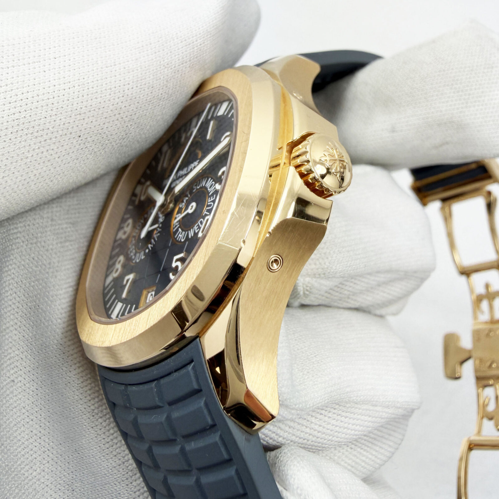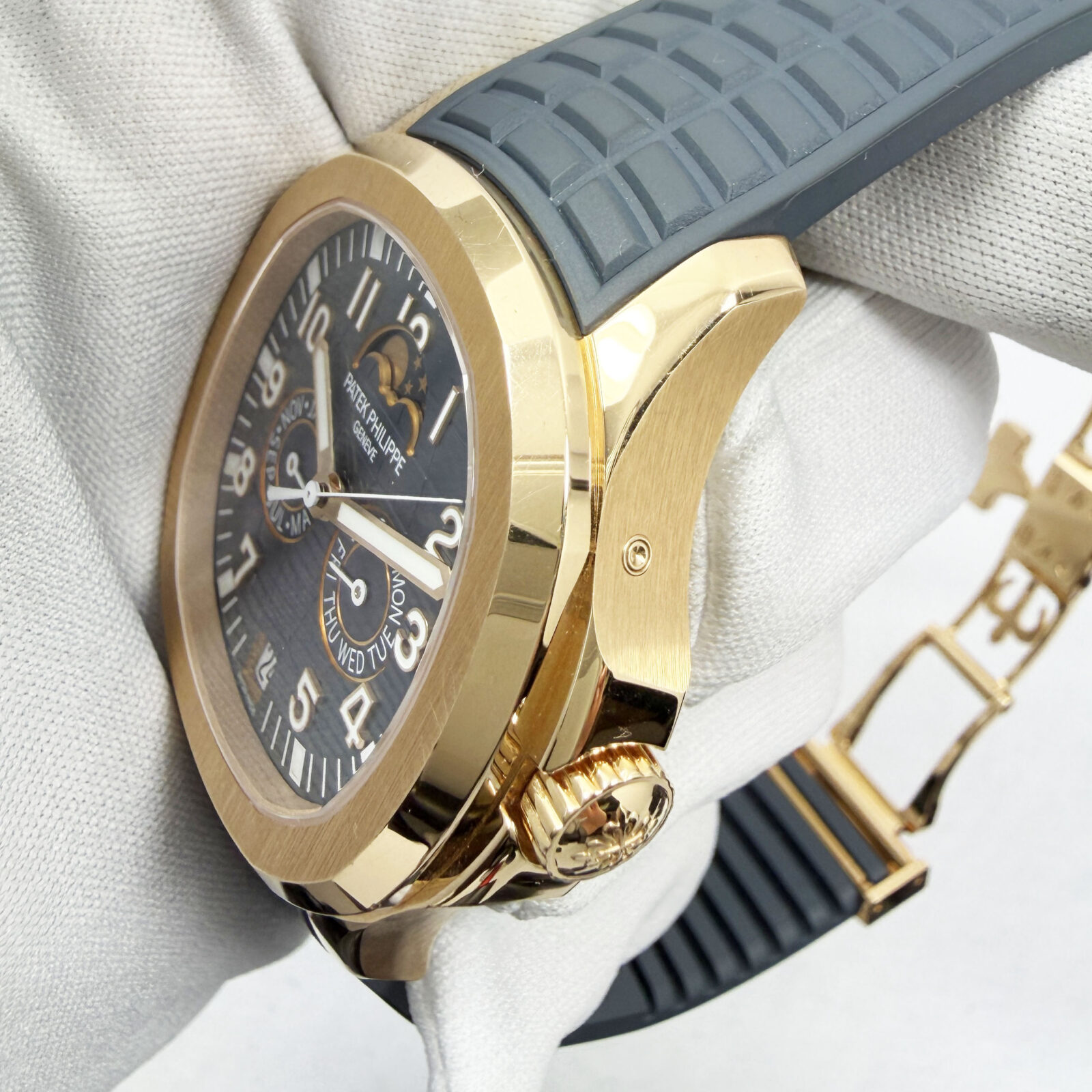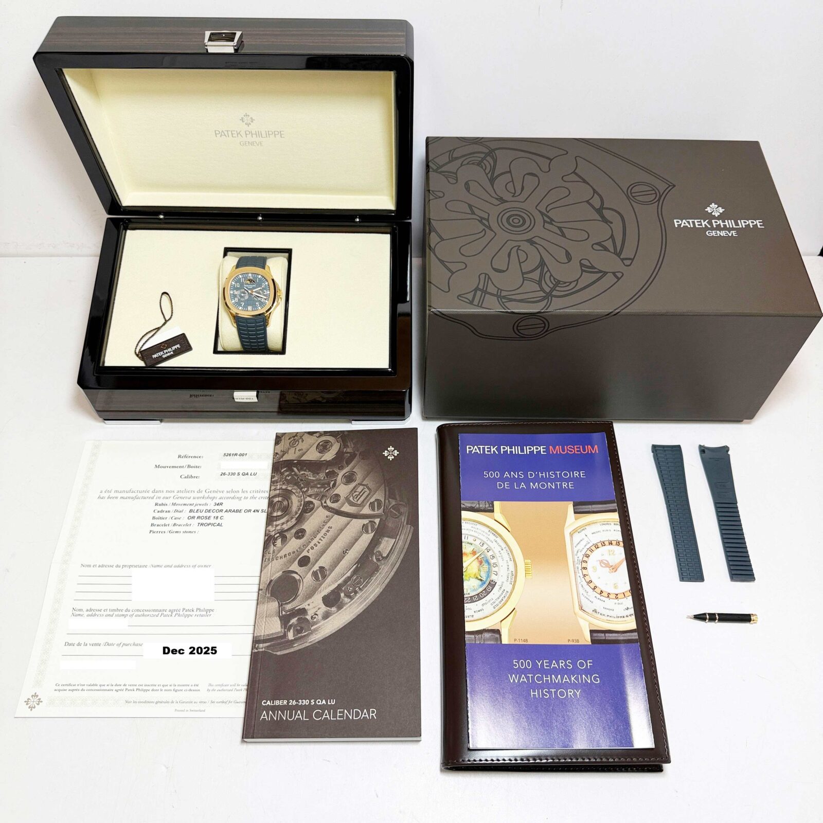 This Patek Philippe Aquanaut watch comes with its box, booklets, hangtag, extra straps, pusher tool, and warranty paper dated December, 2025. The photos shown are of the exact watch being sold and accurately represent its condition. This watch is in stock and ...