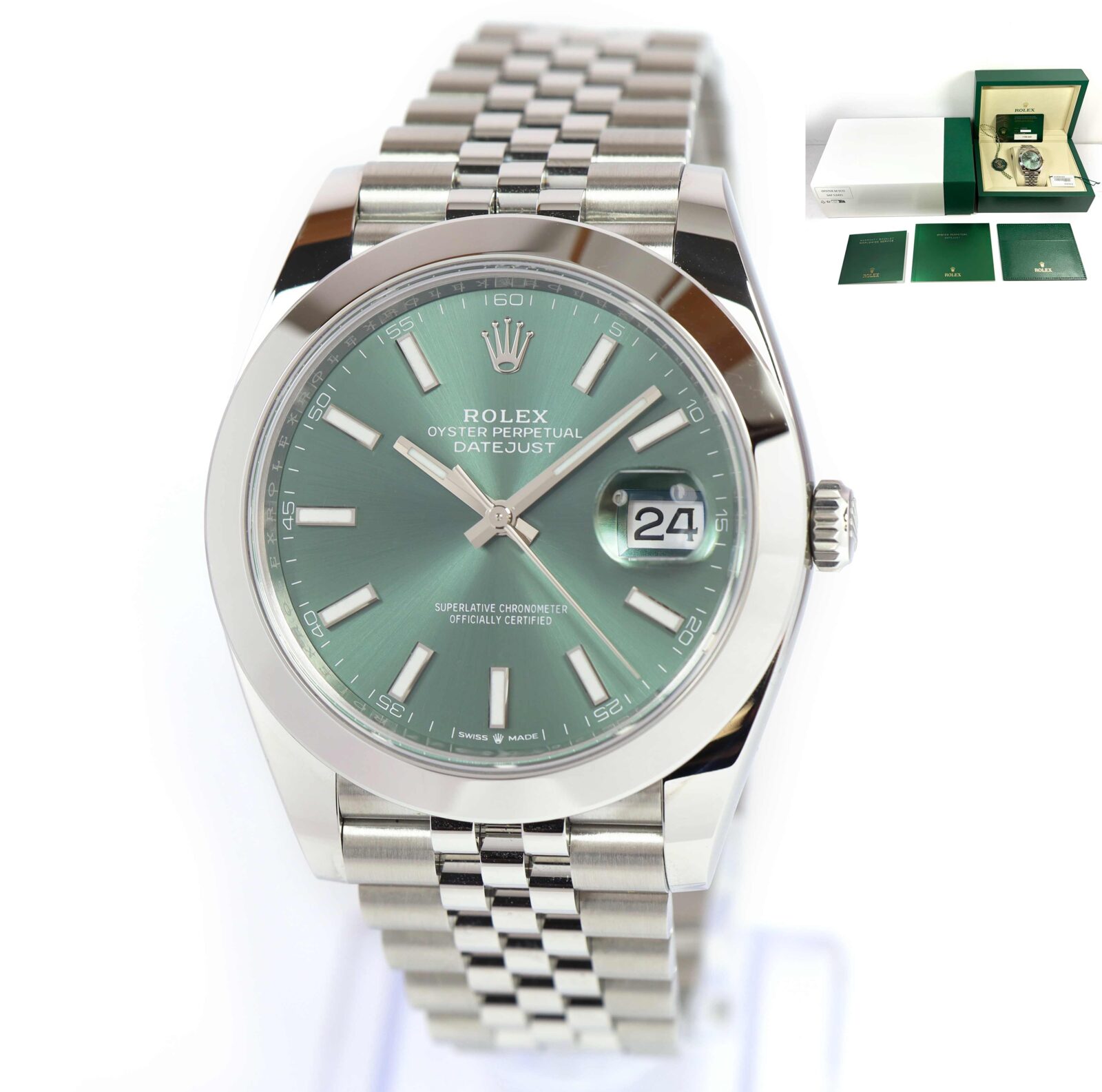 2025 Rolex Datejust 126300 41MM Mint Green Dial Smooth Jubilee Box Papers