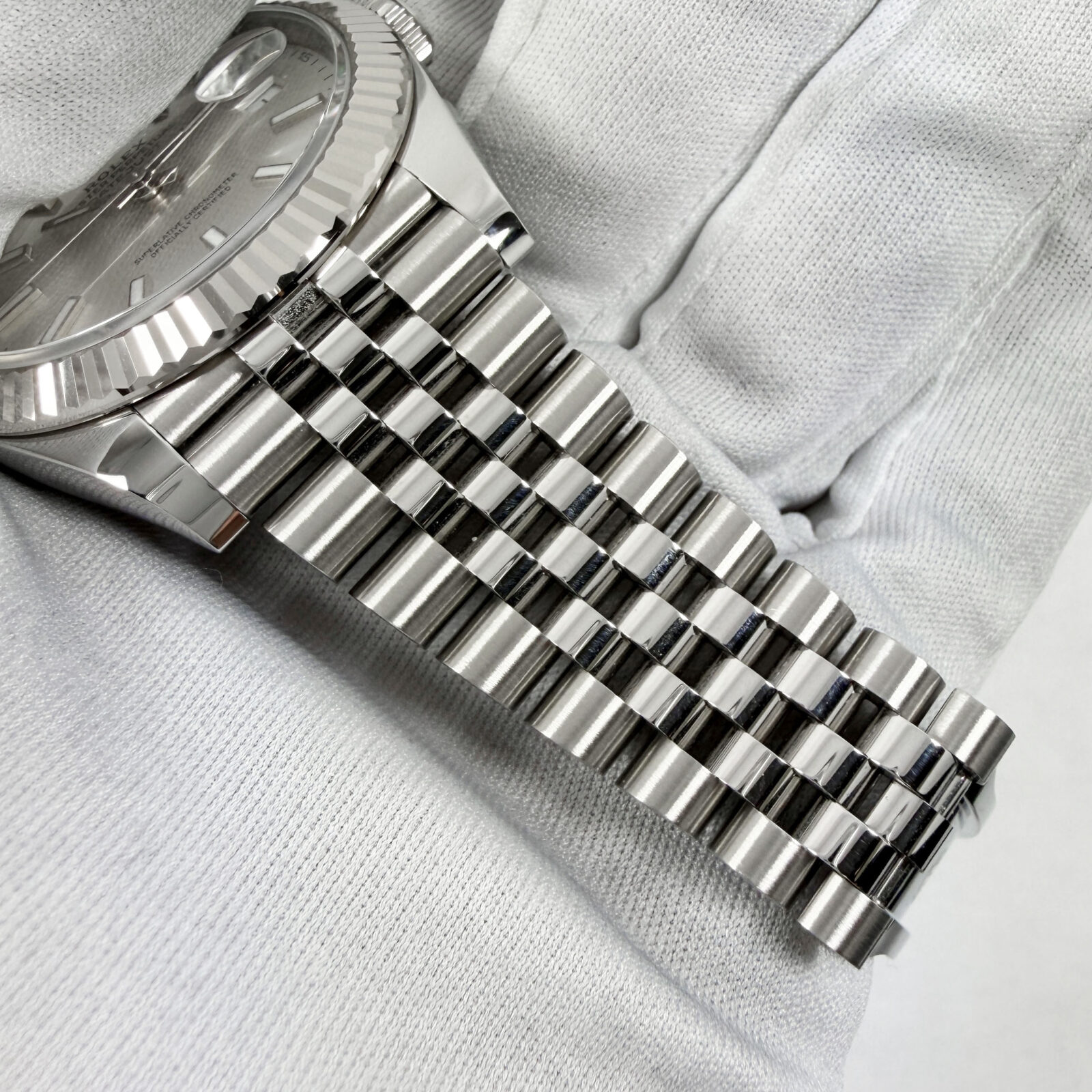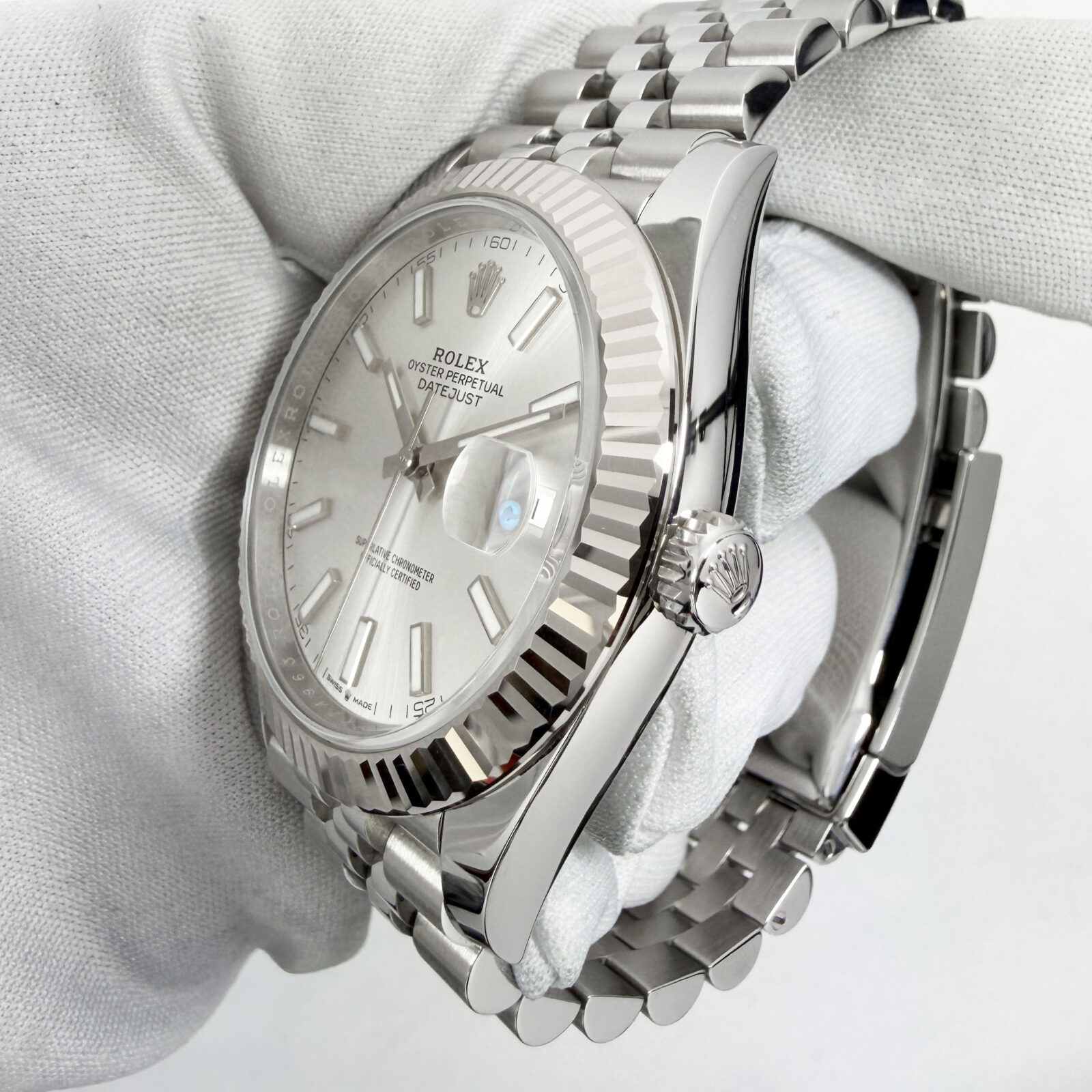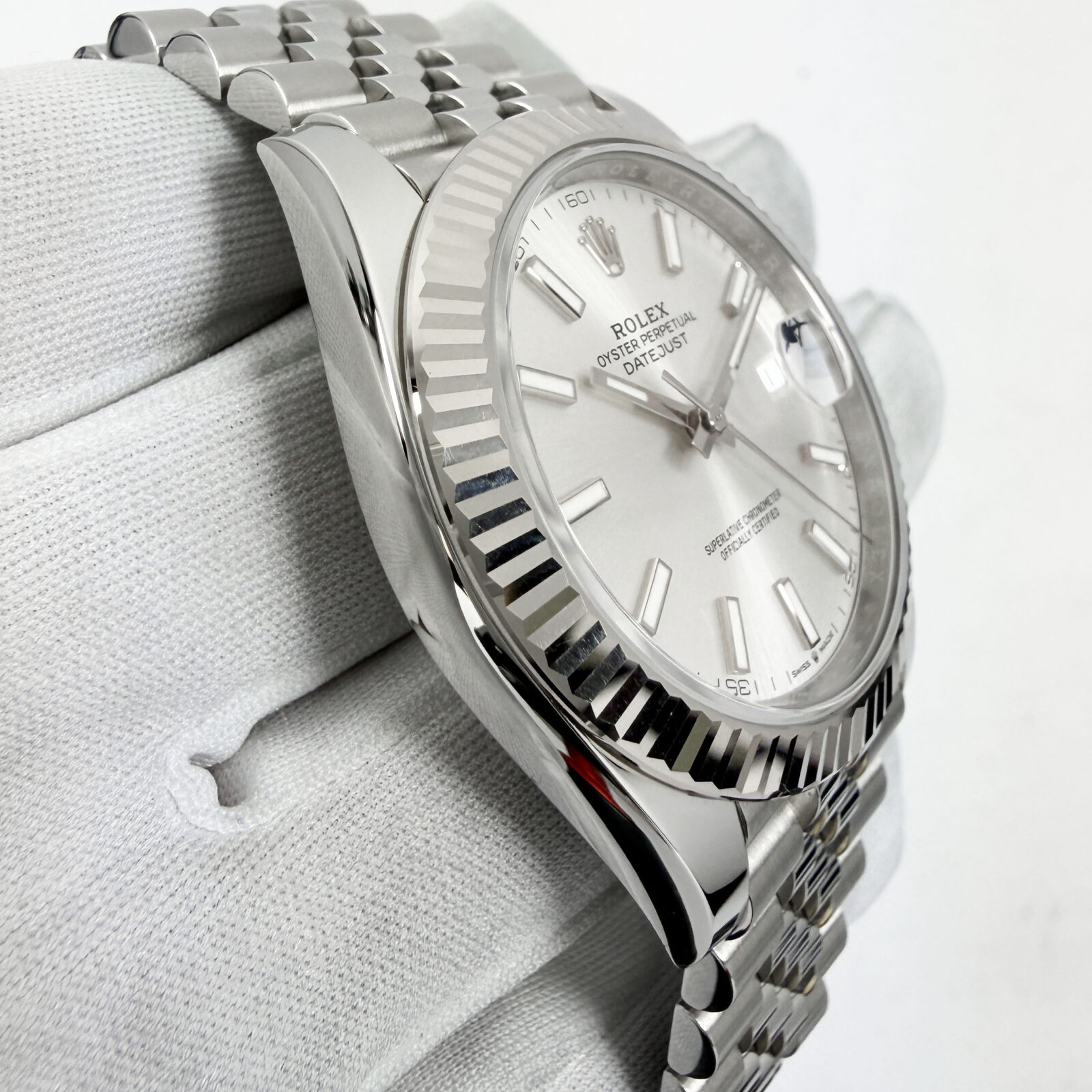 this rolex datejust watch comes with its box, hangtags, booklets, extra links, and warranty card dated september, 2025. The photos shown are of the exact watch being sold and accurately represent its condition. This watch is in stock and ready to ship immediately!