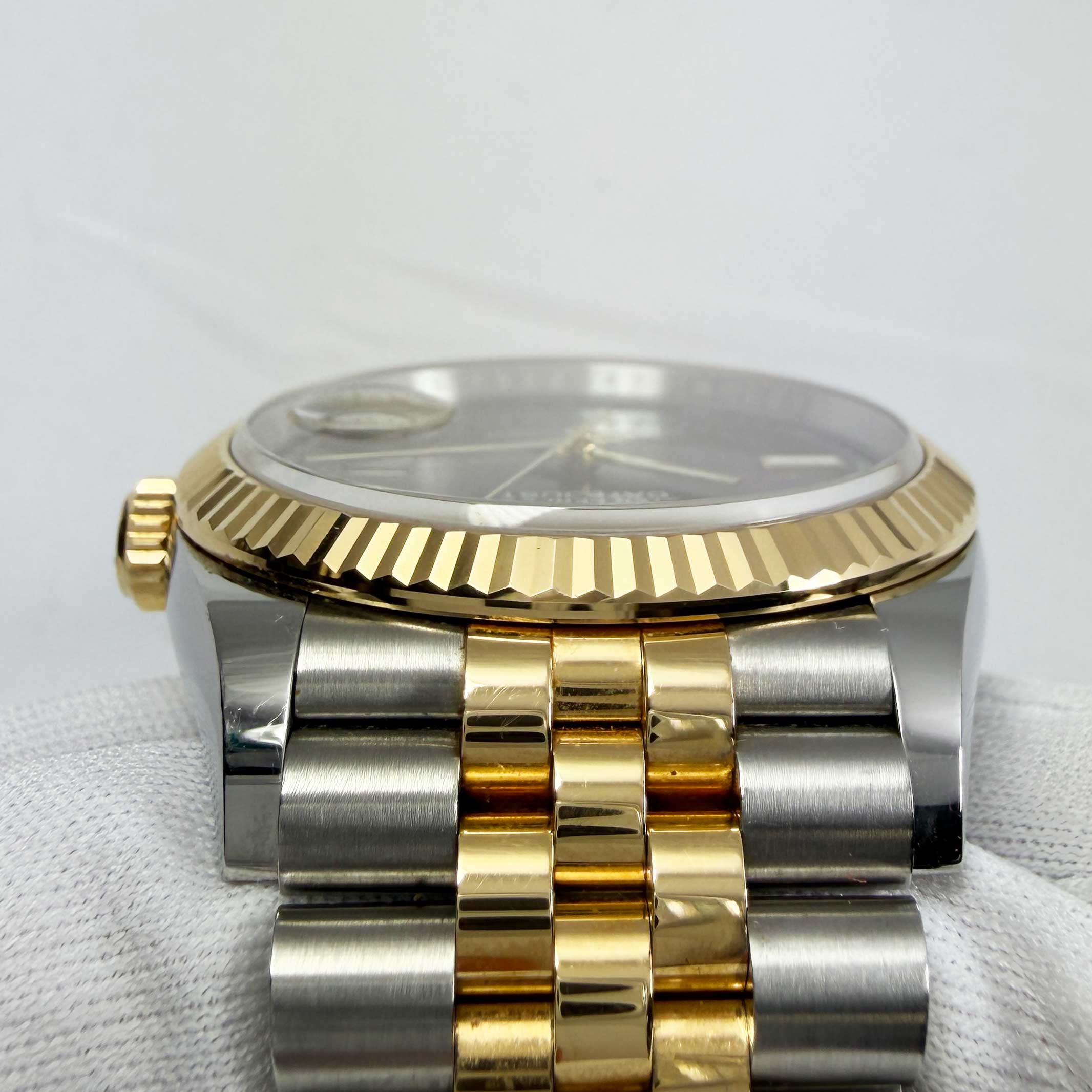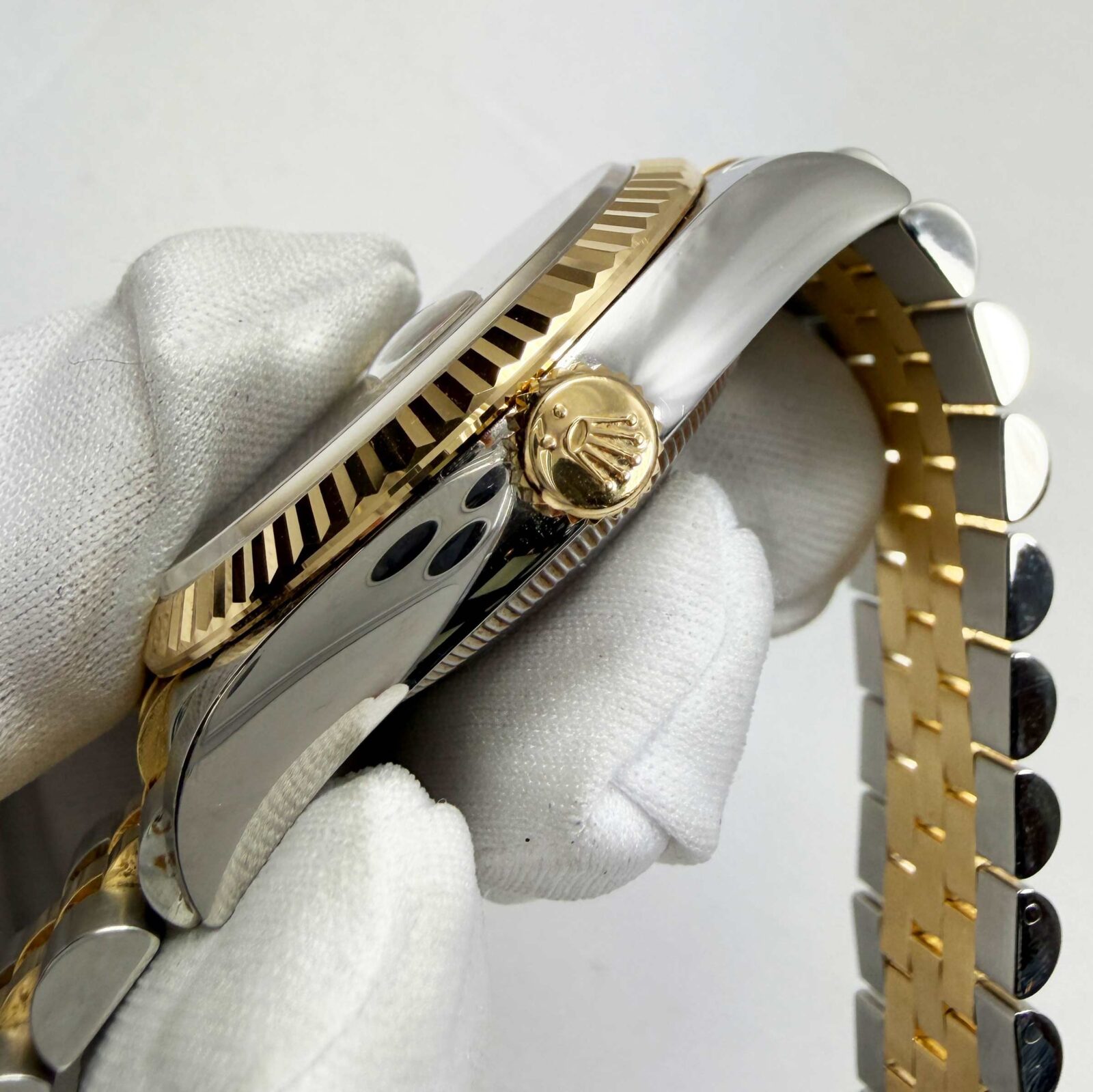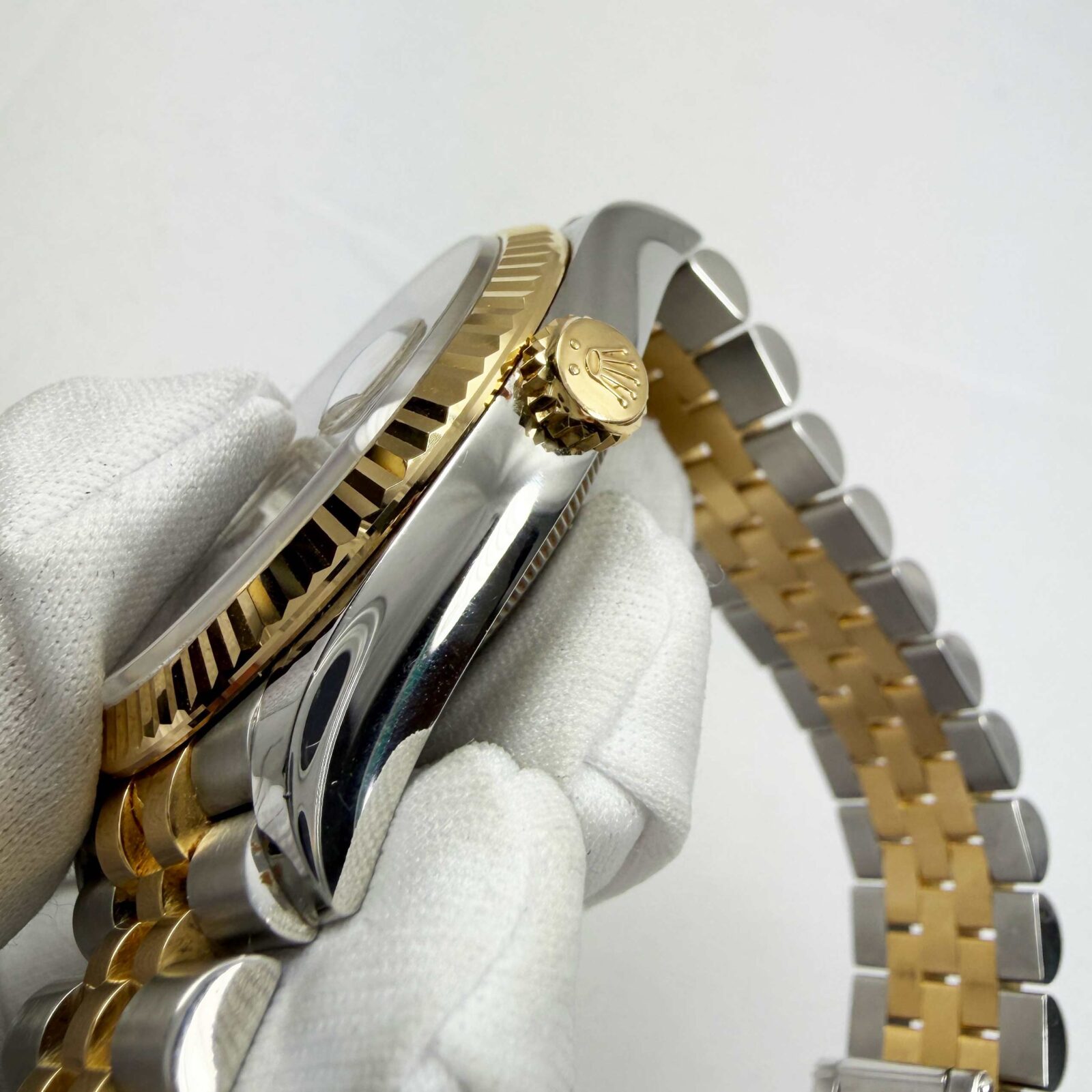 this rolex datejust watch comes with its box, booklets, hangtags, extra link, and warranty card dated may 30th, 2025. The photos shown are of the exact watch being sold and accurately represent its condition. This watch is in stock and ready to ship immediately!