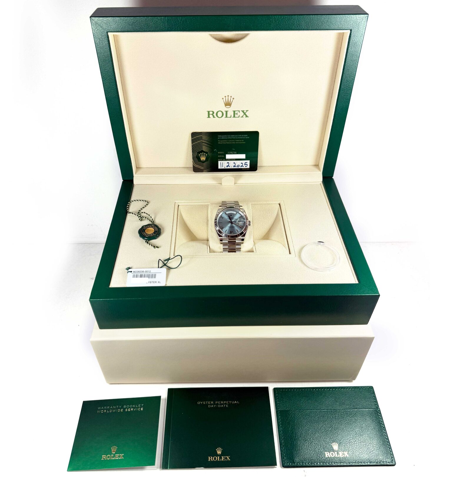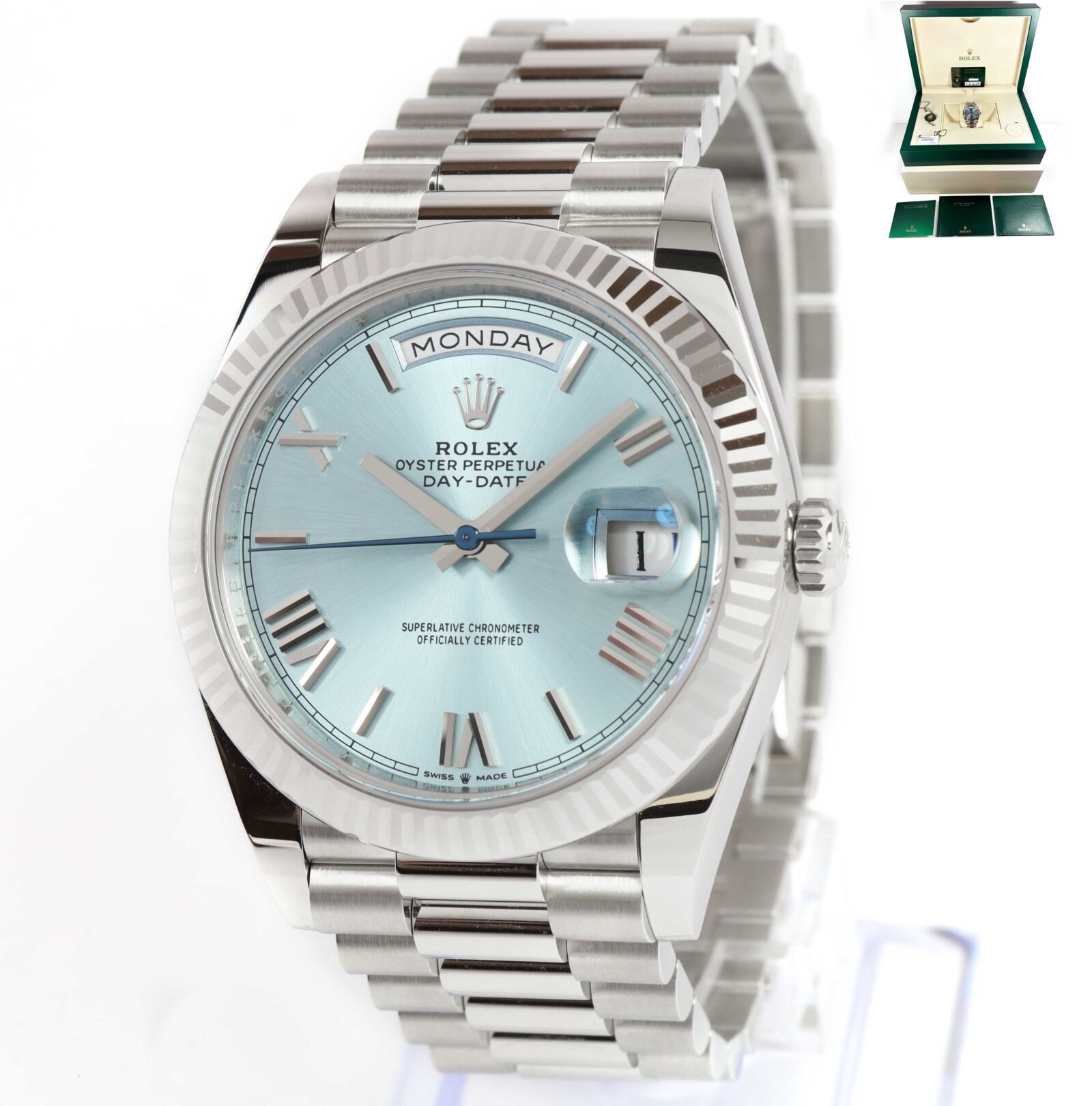 2025 Rolex Day-Date President 228236 40MM Platinum Ice Blue Roman Dial Box Papers