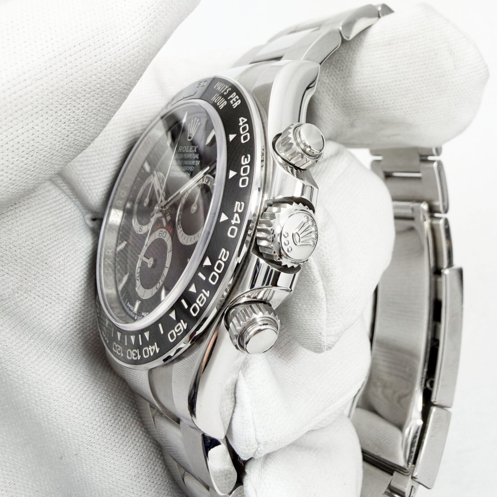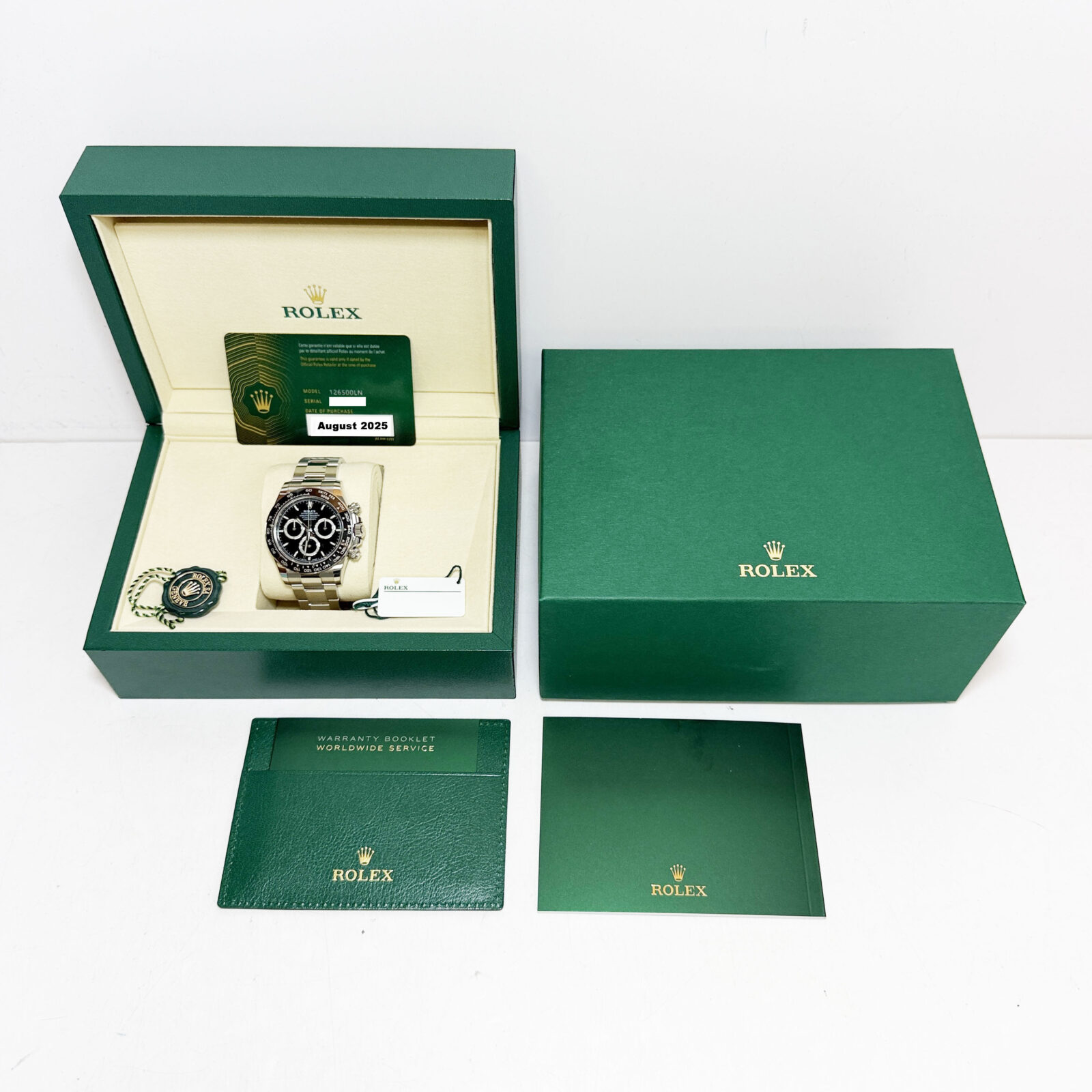 This Rolex Daytona watch comes with its box, booklets, hangtags, and warranty card dated August, 2025. The photos shown are of the exact watch being sold and accurately represent its condition. This watch is in stock and ready to ship immediately!