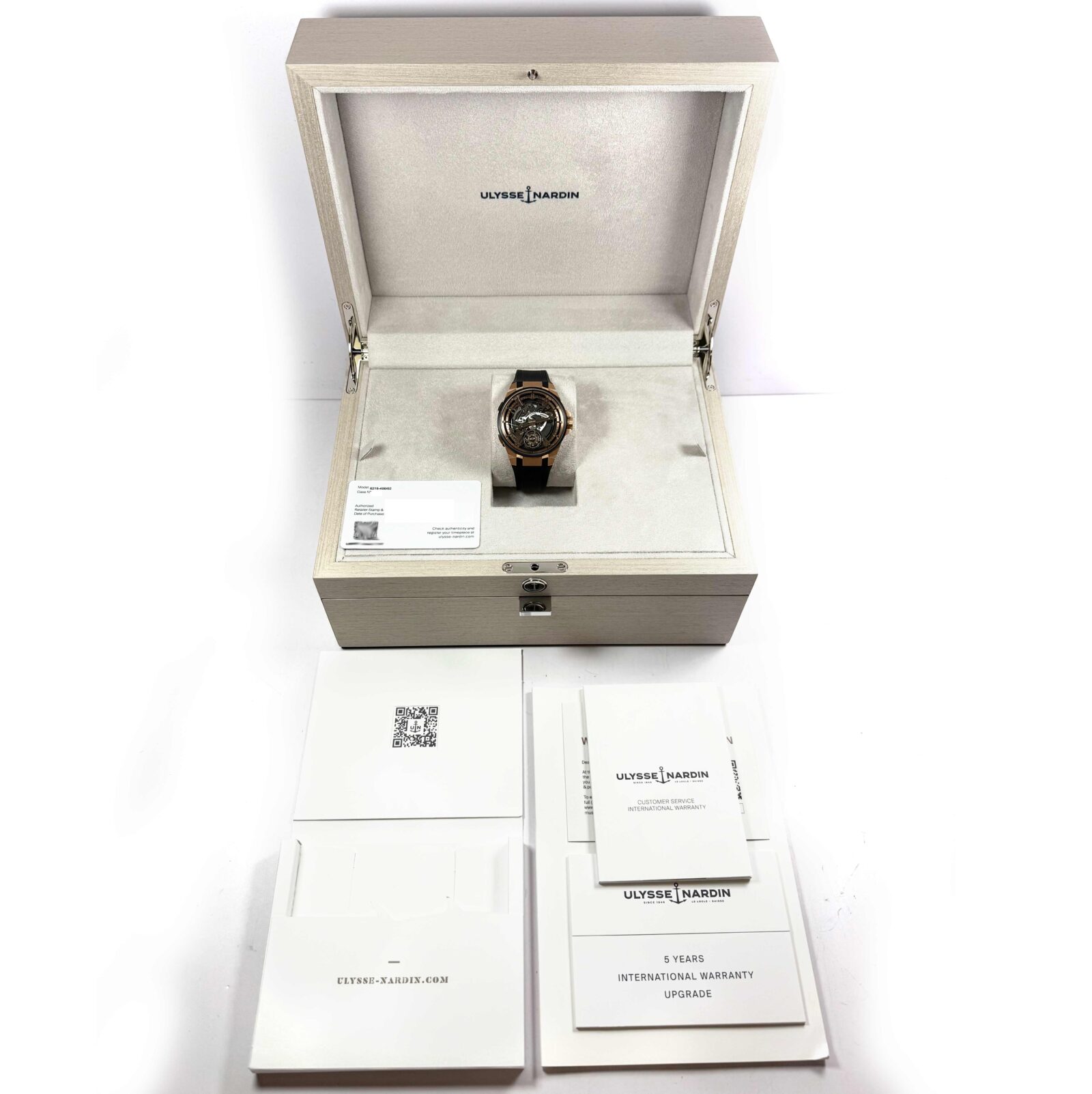 THIS ULYSSE NARDIN WATCH IS IN AMAZING OVERALL CONDITION AND COMES WITH ITS BOX, BOOKLETS, AND WARRANTY CARD AS SHOWN IN THE PICTURES ATTACHED. THIS WATCH IS IN STOCK AND AVAILABLE TO SHIP IMMEDIATELY!