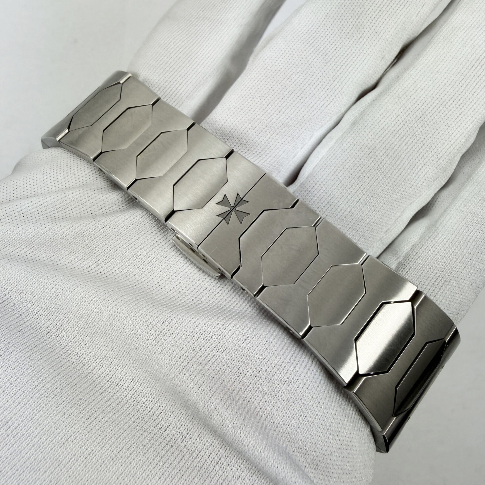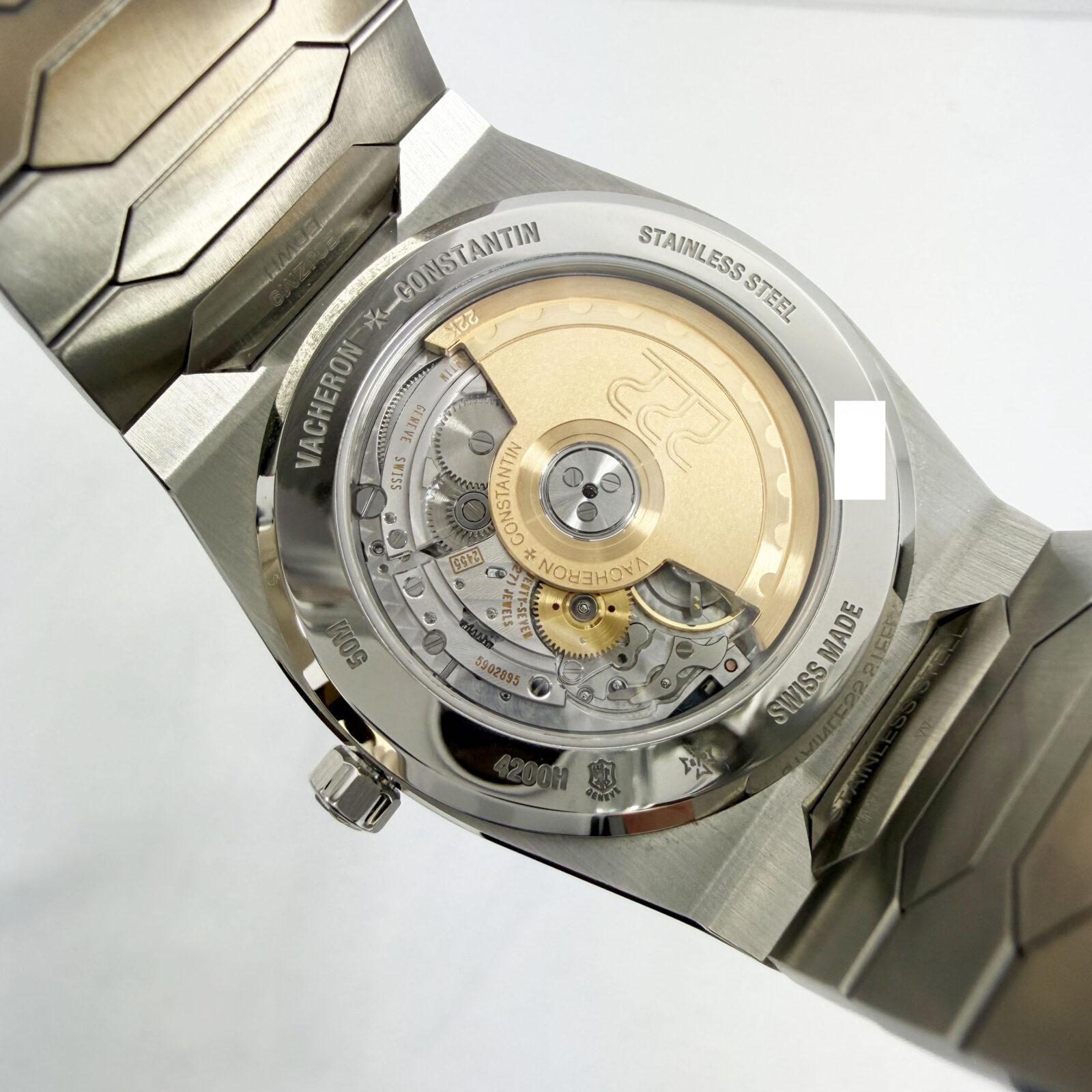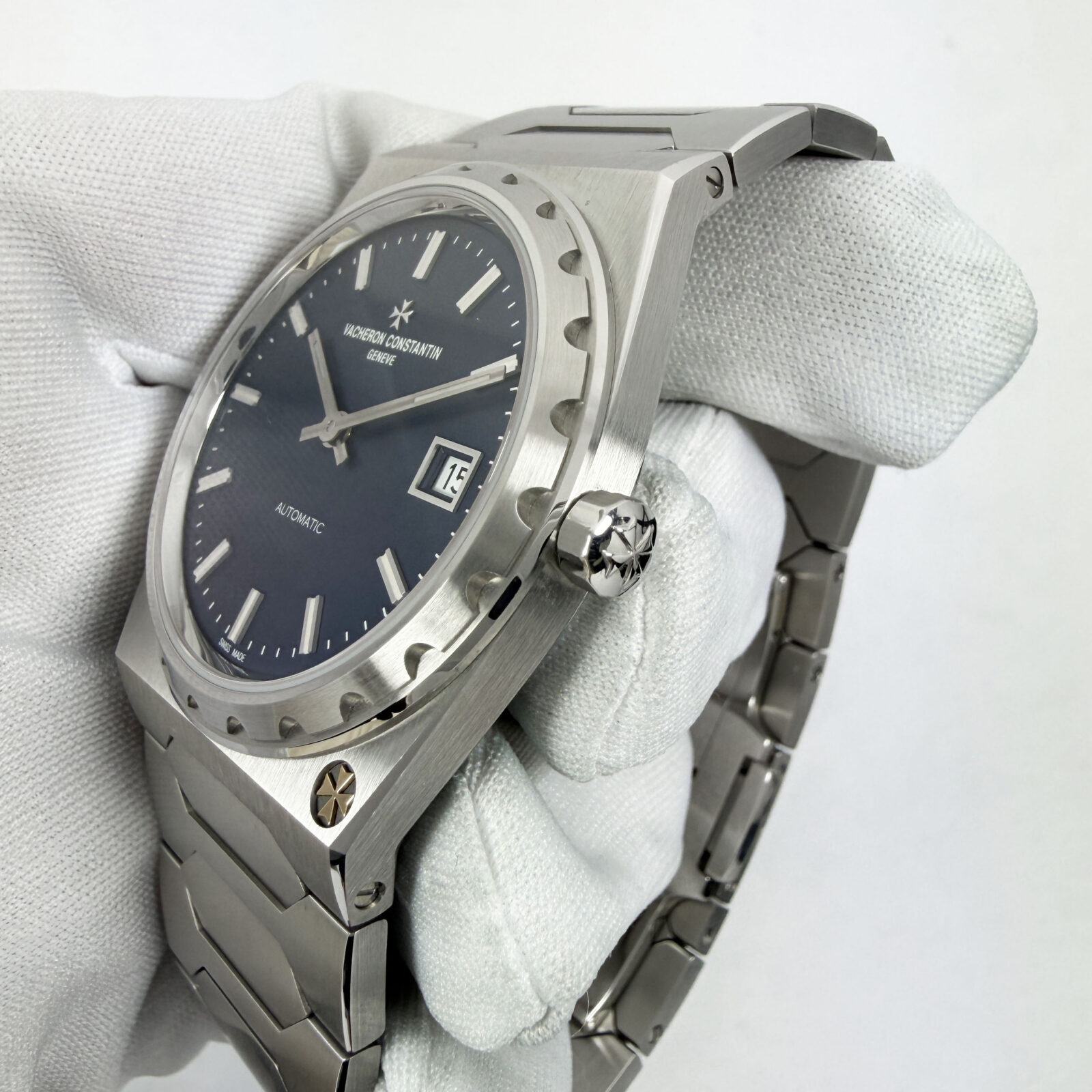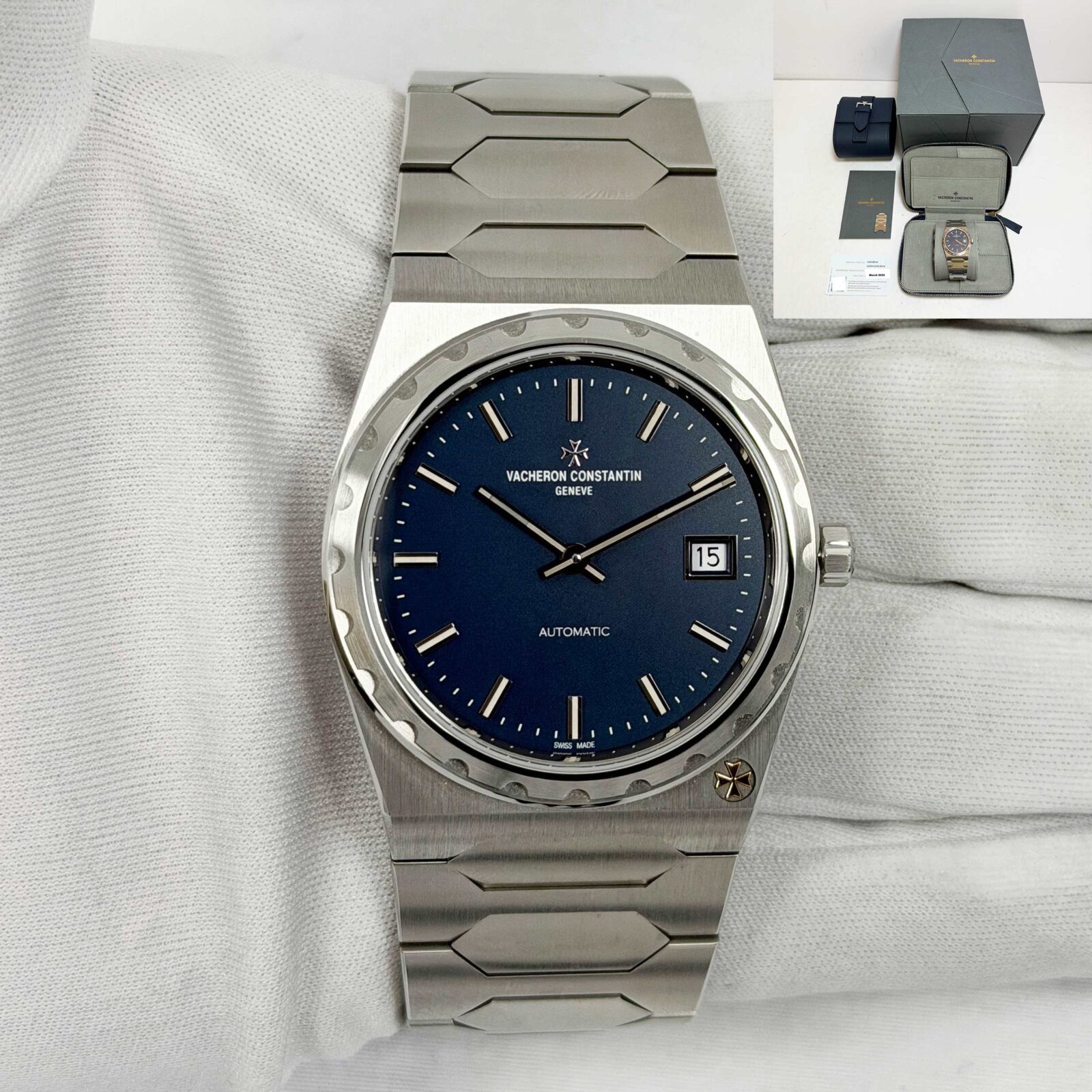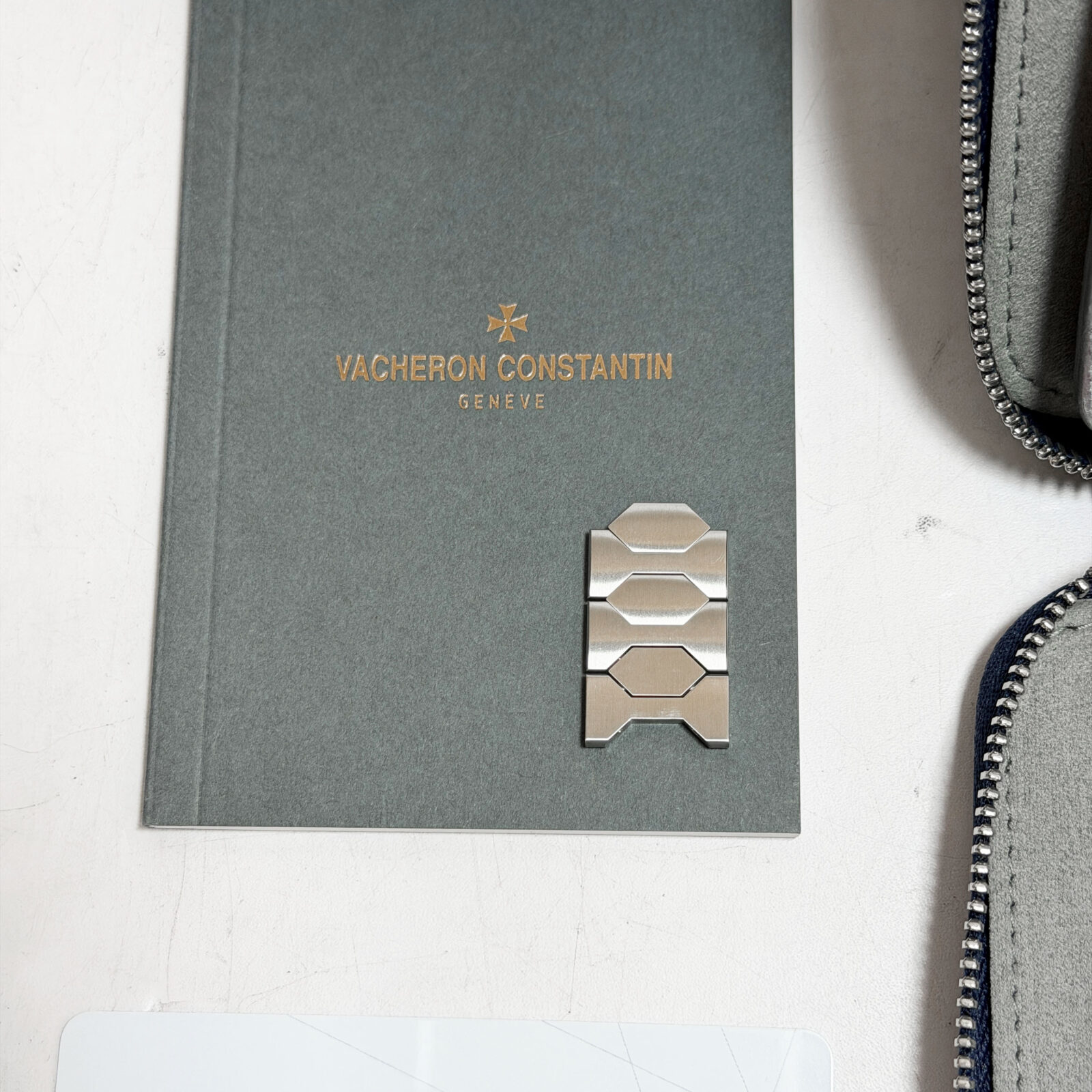 This Vacheron Constantin watch comes with its box, travel case, booklet, extra links, and warranty card dated March, 2025. The photos shown are of the exact watch being sold and accurately represent its condition. This watch is in stock and ready to ship immed...