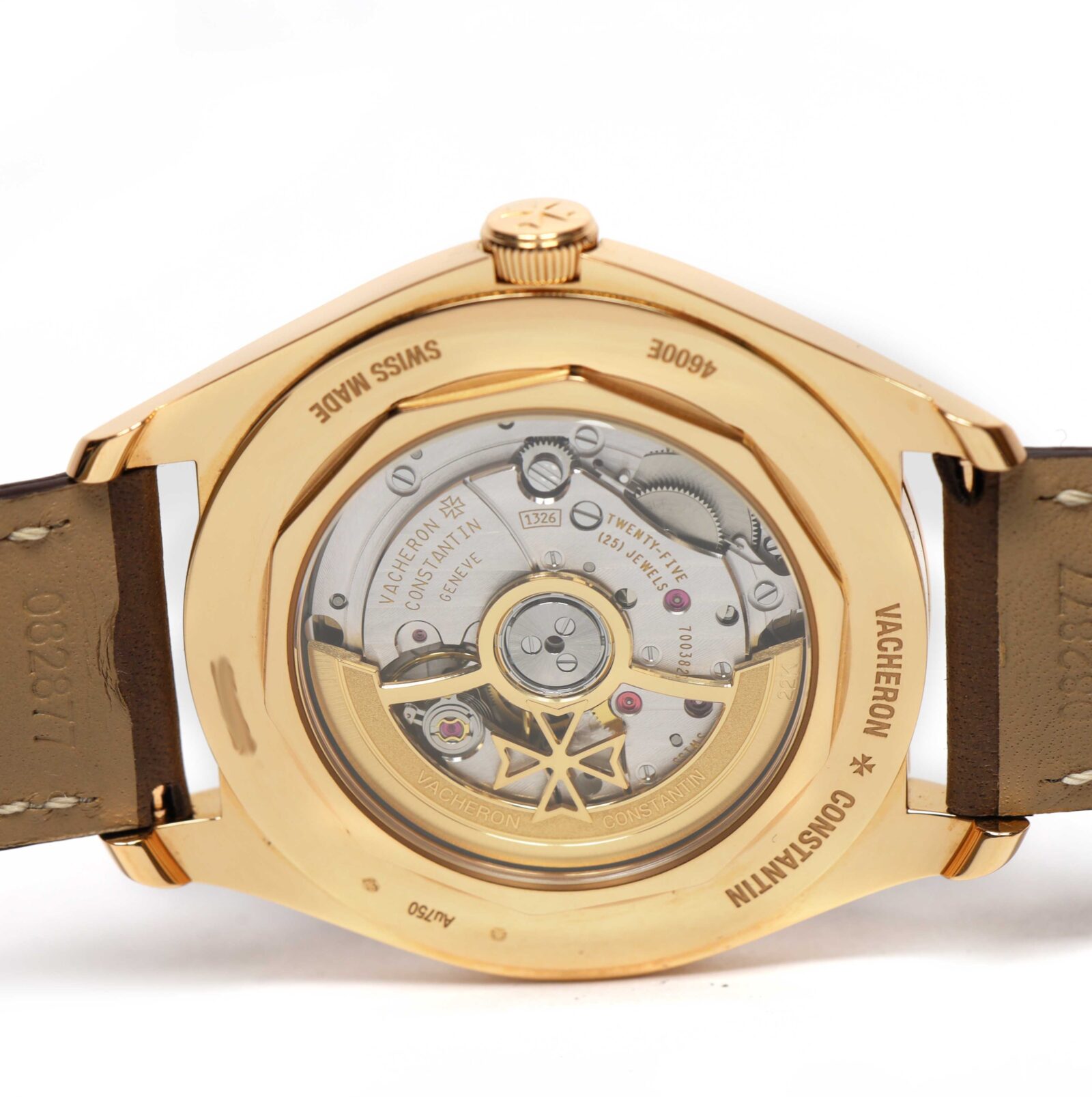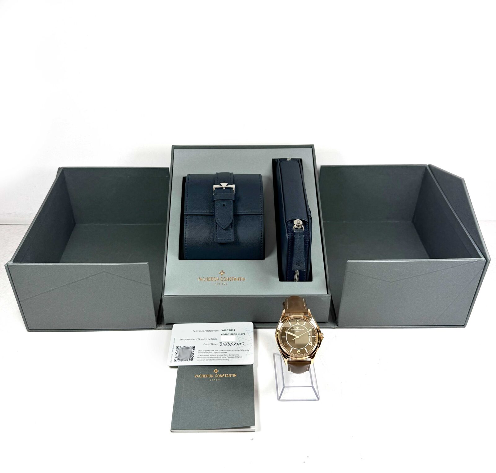 this vacheron watch is in excellent condition and comes with its box, booklets, travel case, and warranty card dated march 23rd, 2025 as shown in the pictures attached. This watch is in stock and available to ship immediately!