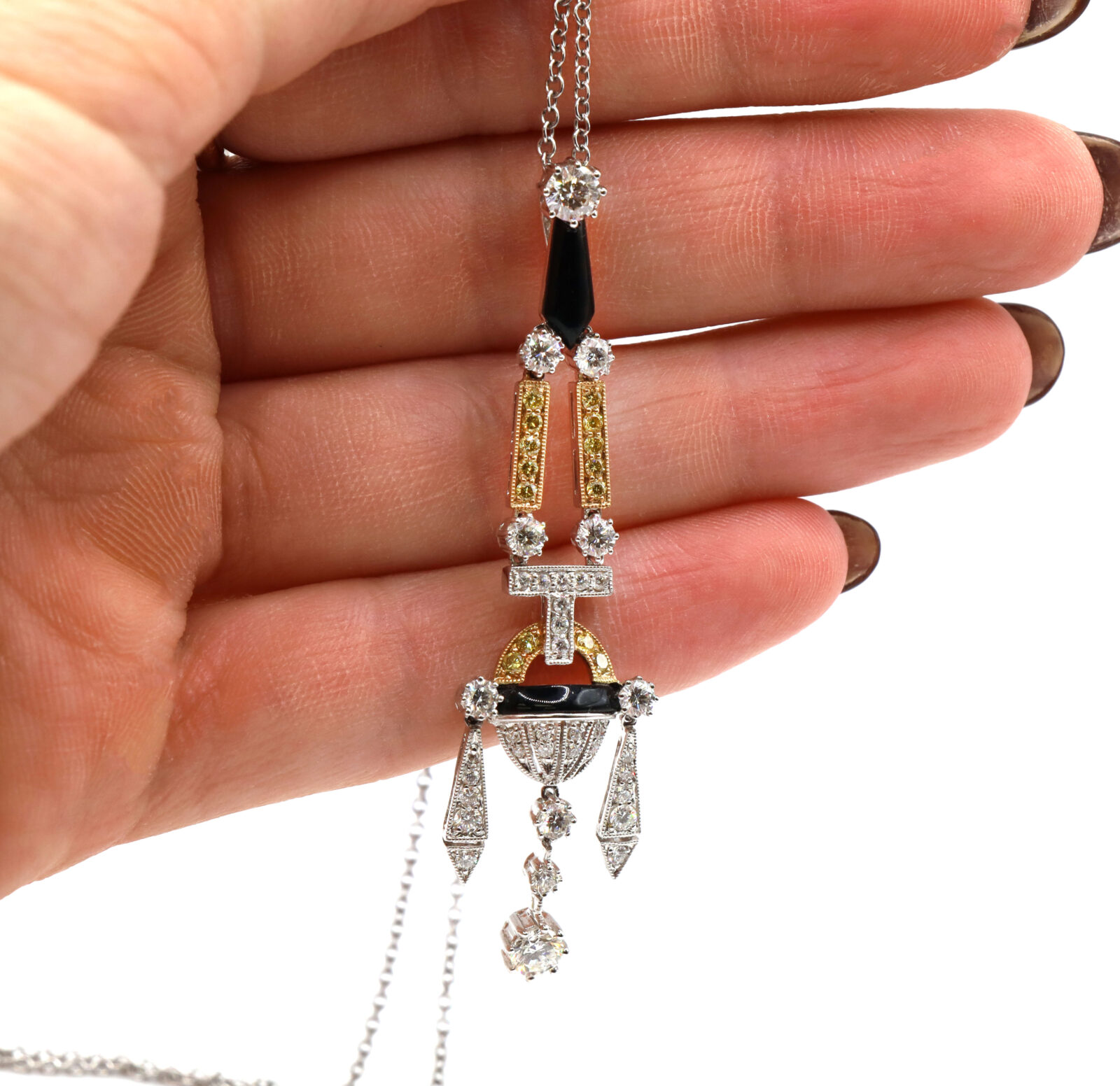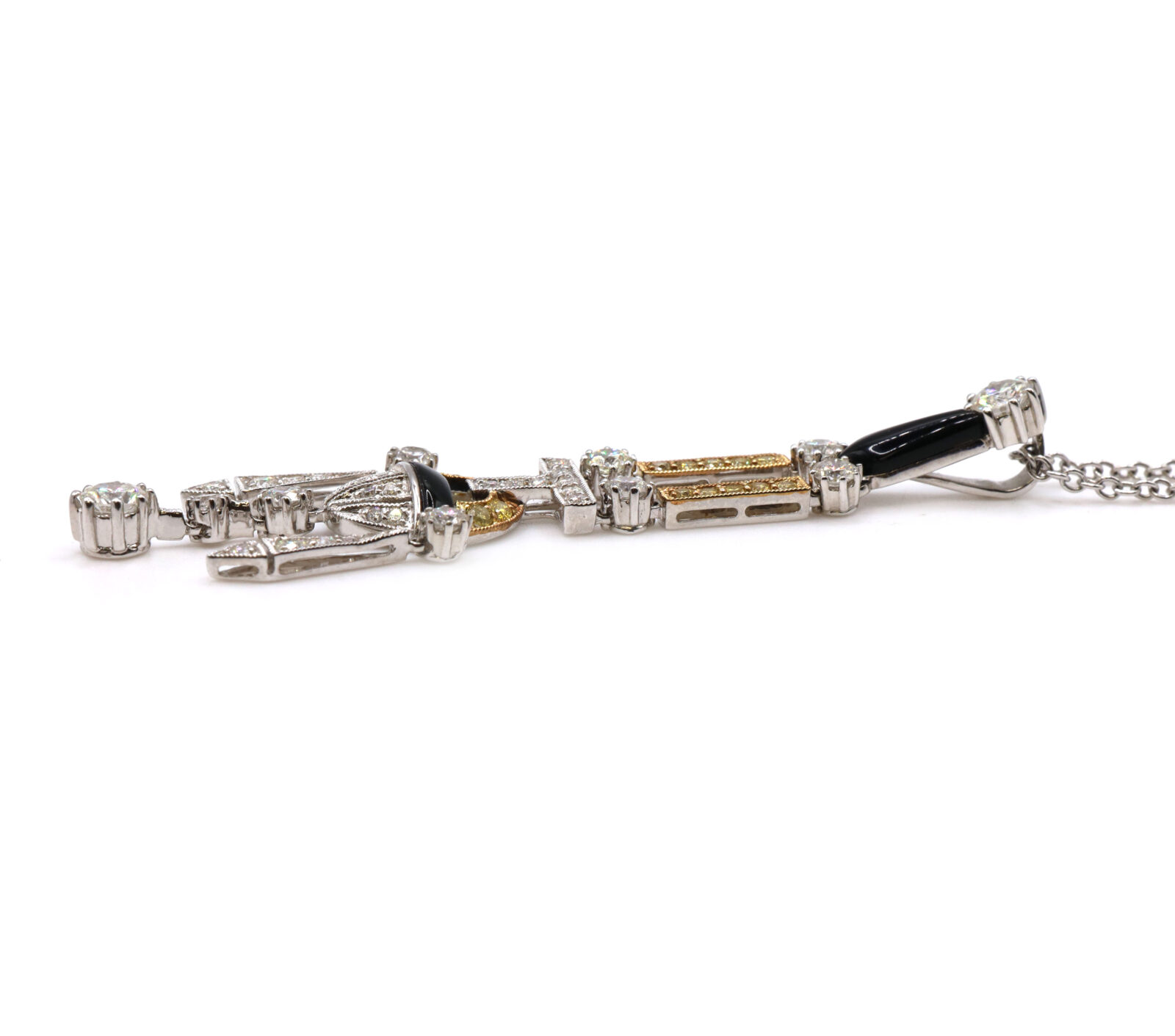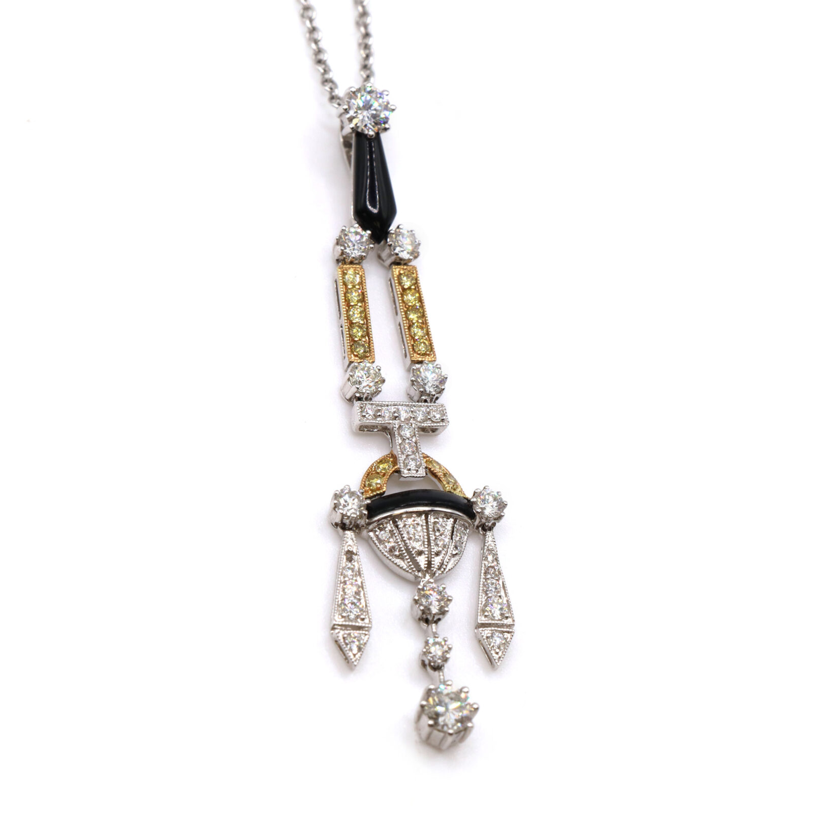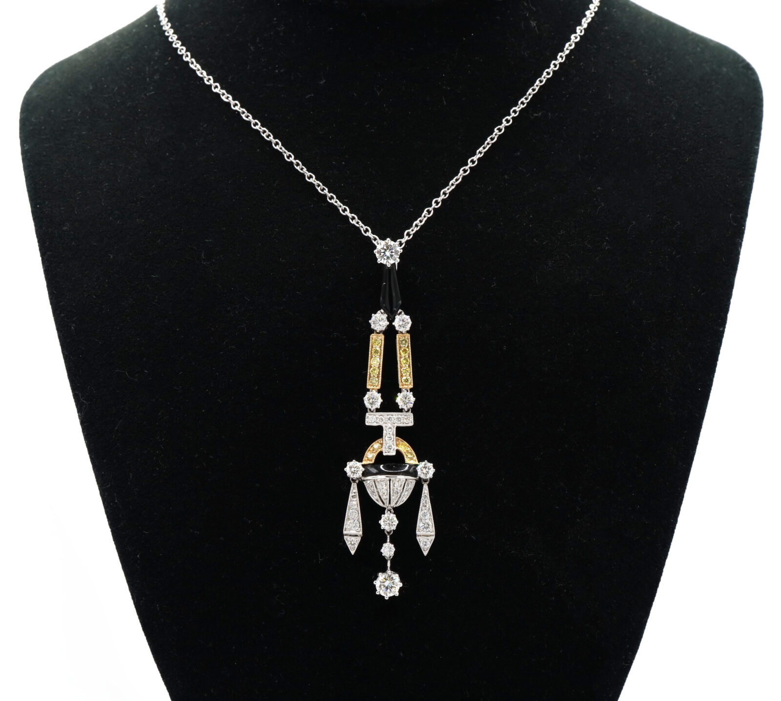 Material: 18k White & Yellow Gold Gemstone: Onyx, Yellow Diamond, White Diamond White Diamond Carat Weight: Approximately 1.75 Carat Yellow Diamond Carat Weight: Approximately 0.14 Carat Diamond Color: D/E/F & Fancy Yellow Diamond Clarity: VS1/V...