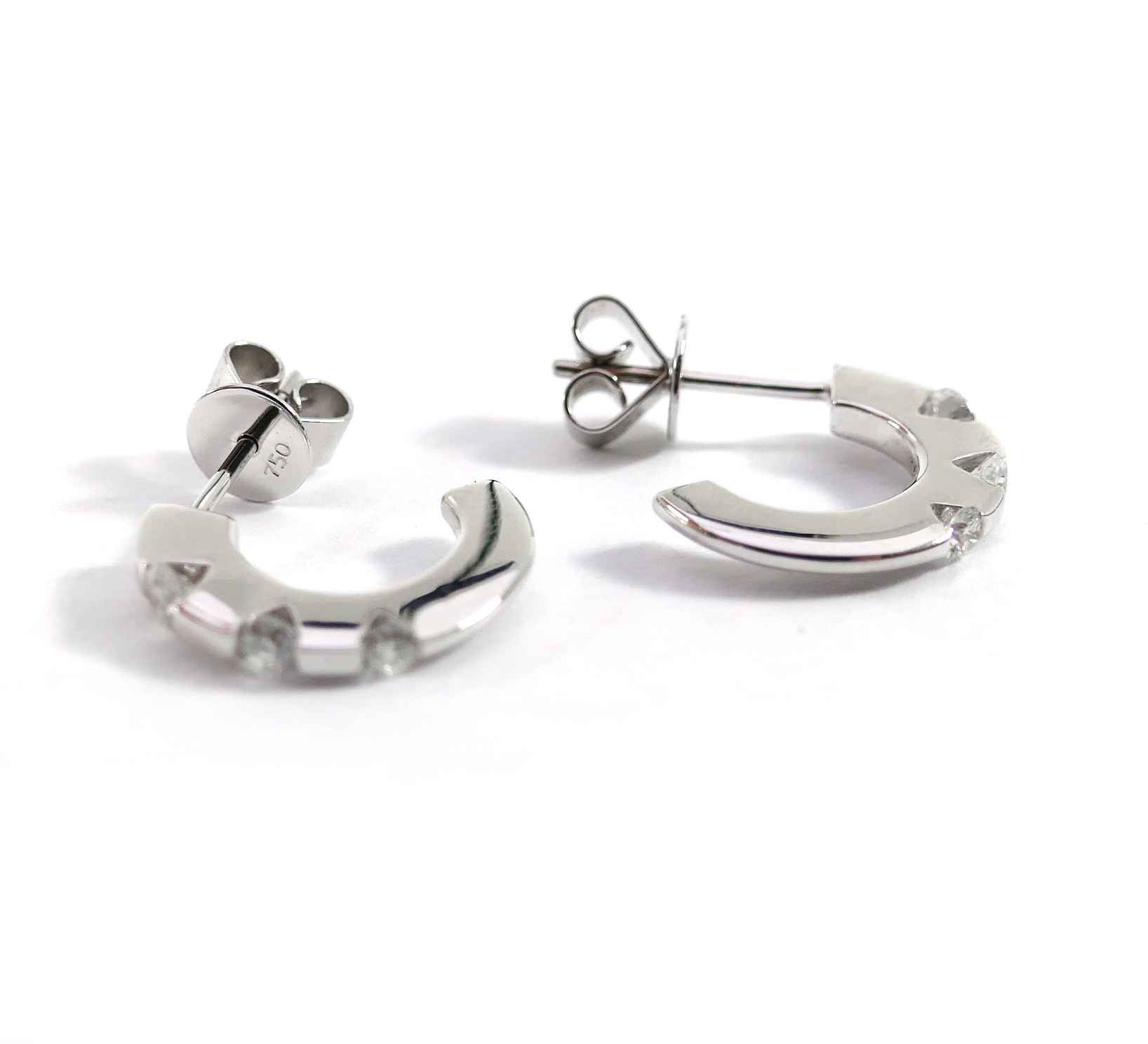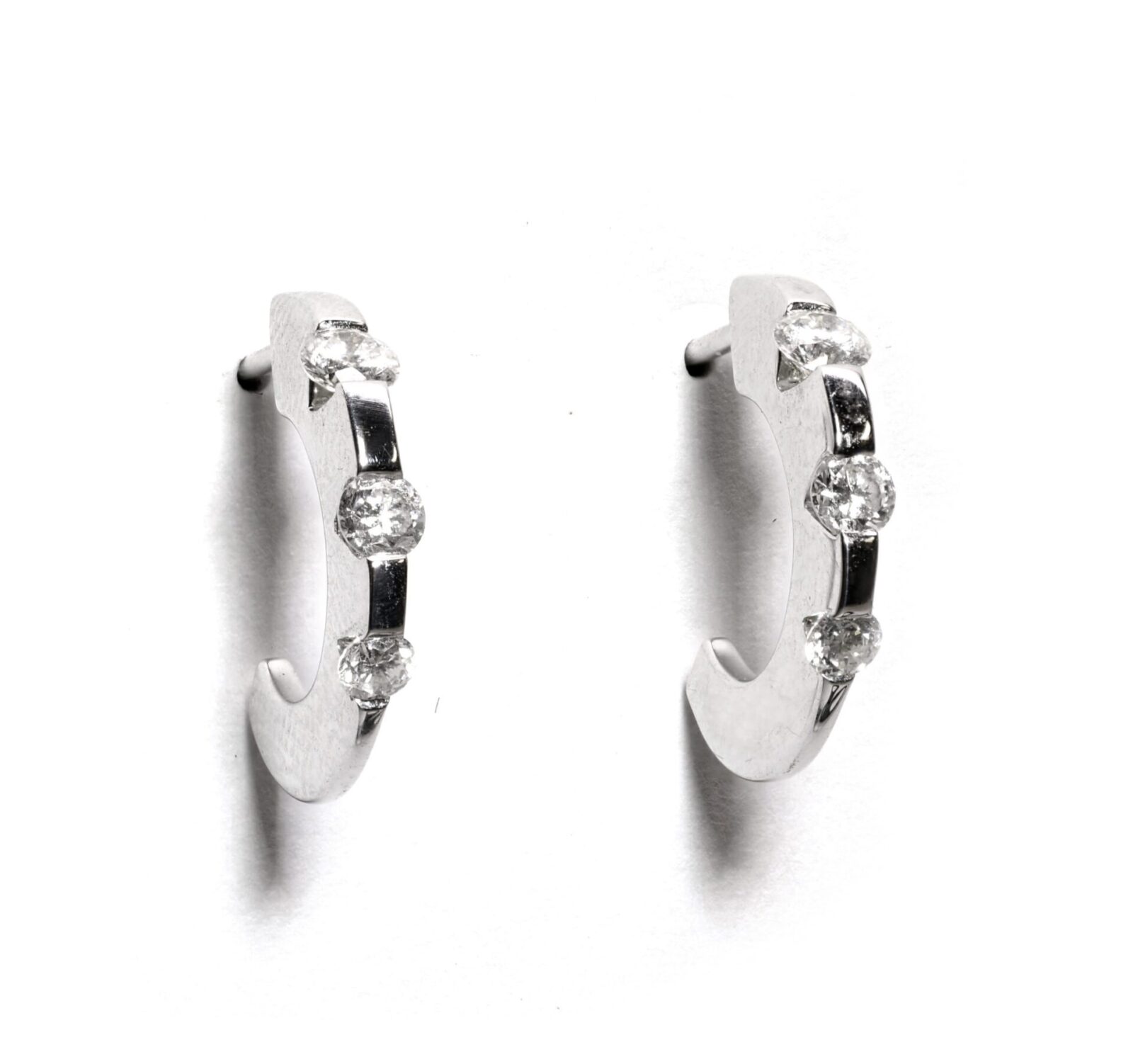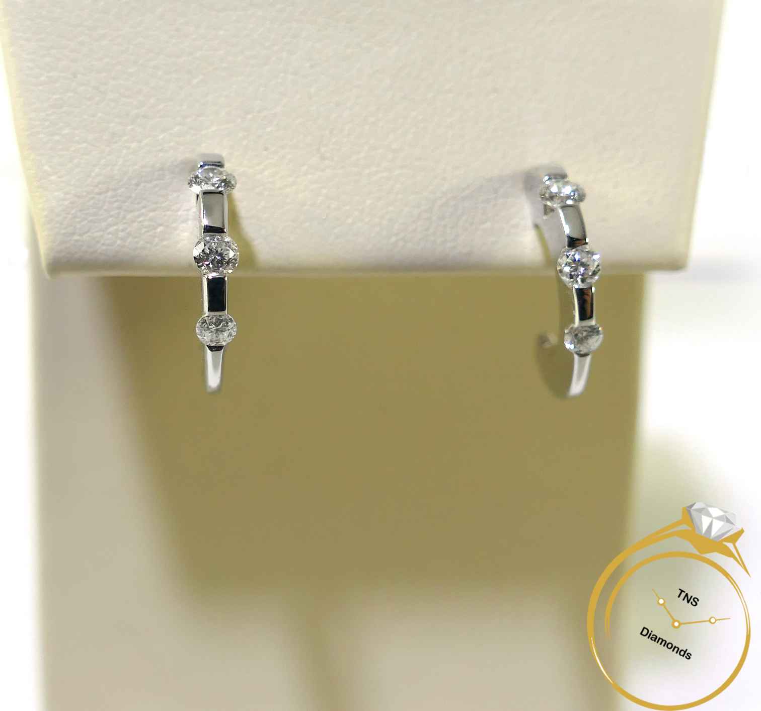 these beautiful earrings hold 3 diamonds that graduate in size on each earring. There is a total of .50 carats held together in 18k white gold. They have push backings to make them easy to put on and have security as well.