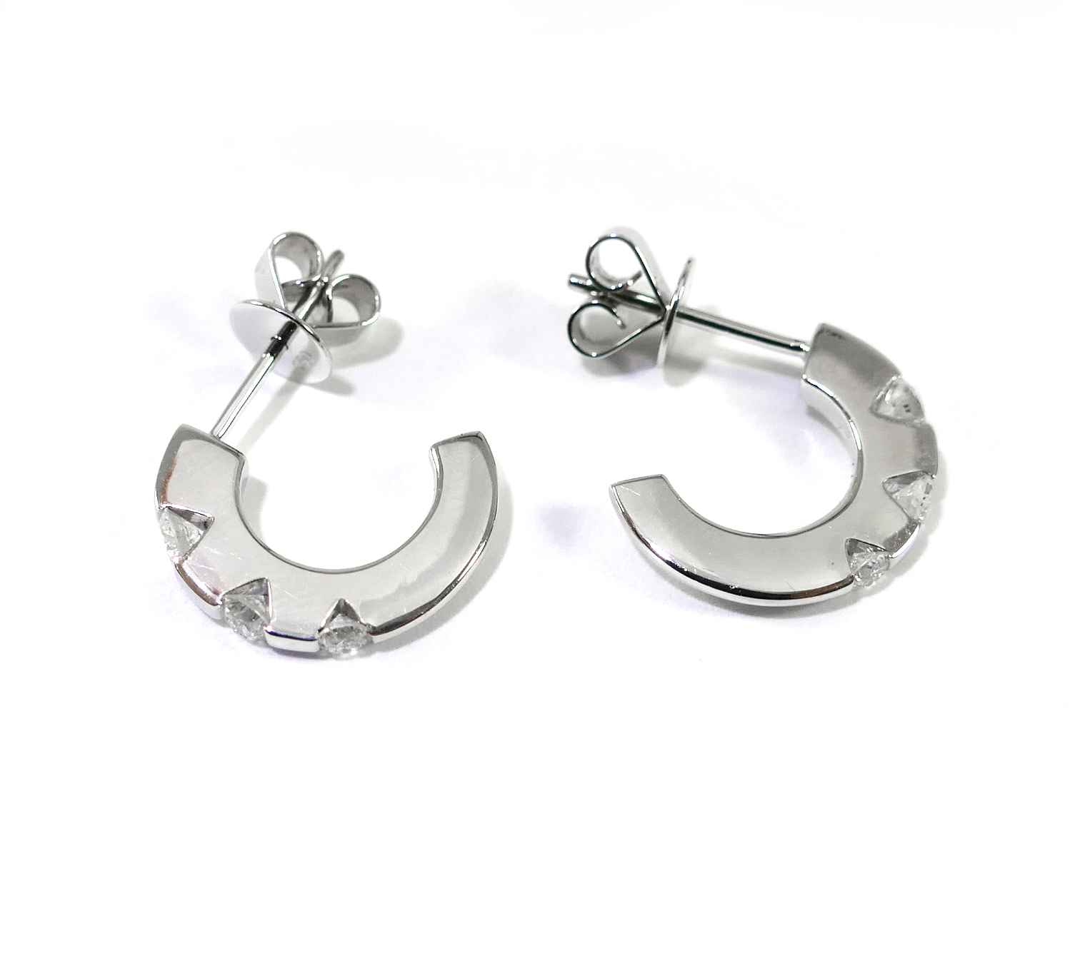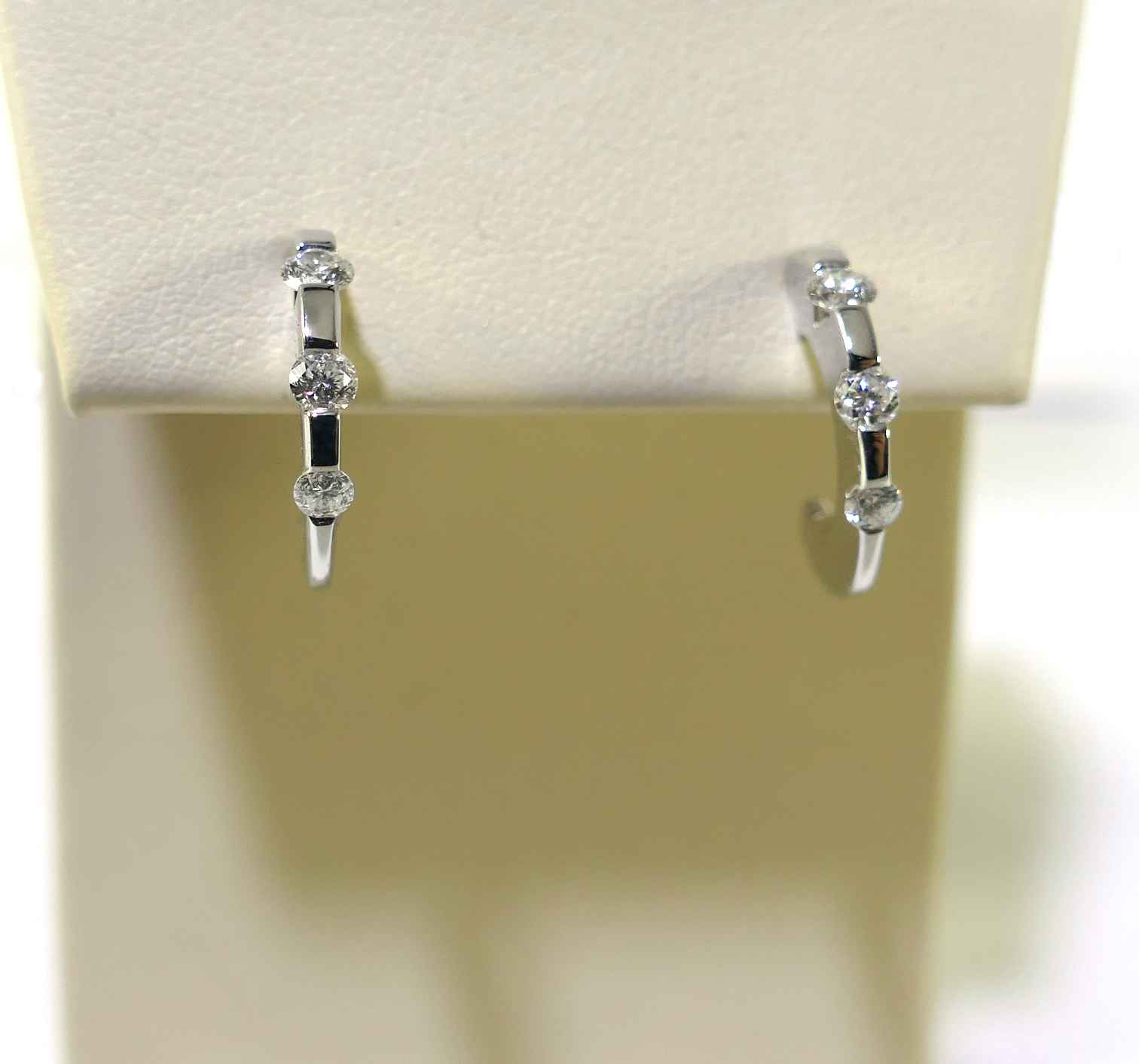 Product Description: These beautiful earrings hold 3 diamonds that graduate in size on each earring. There is a total of .50 carats held together in 18k white gold. They have push backings to make them easy to p...