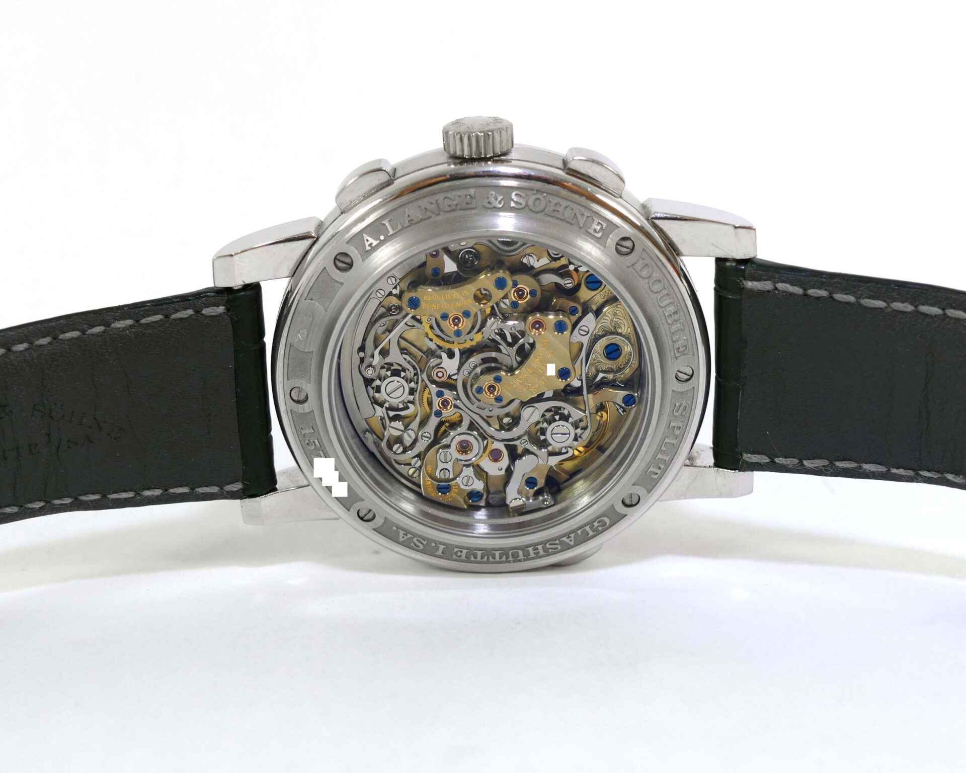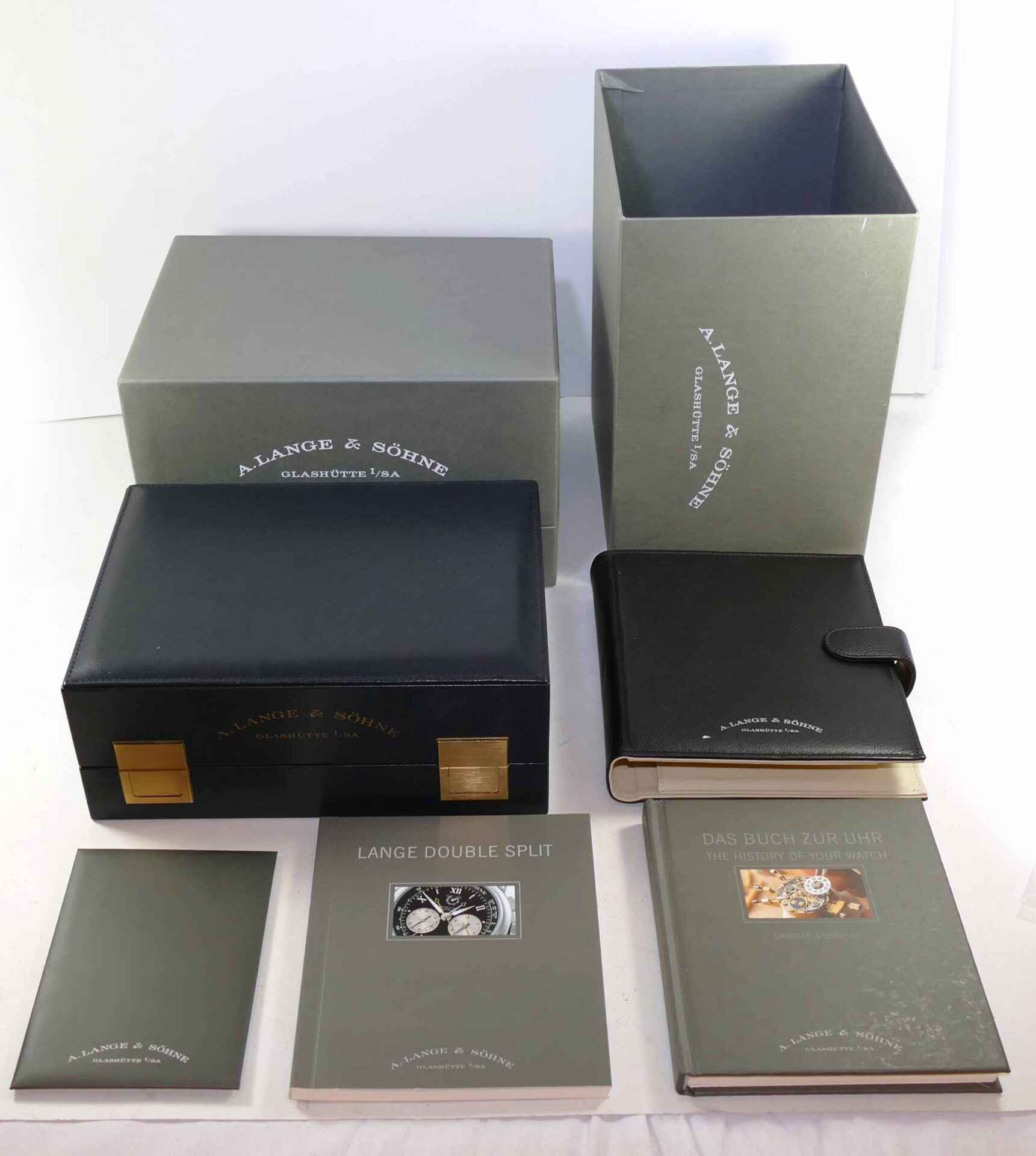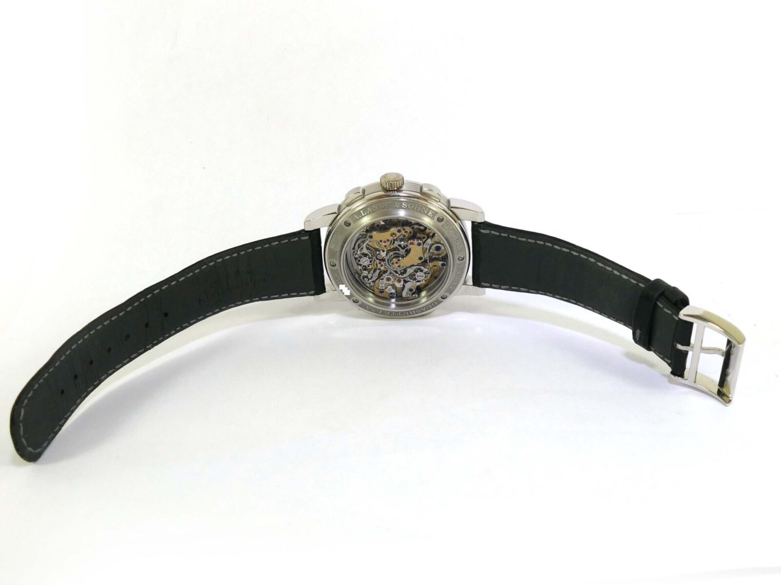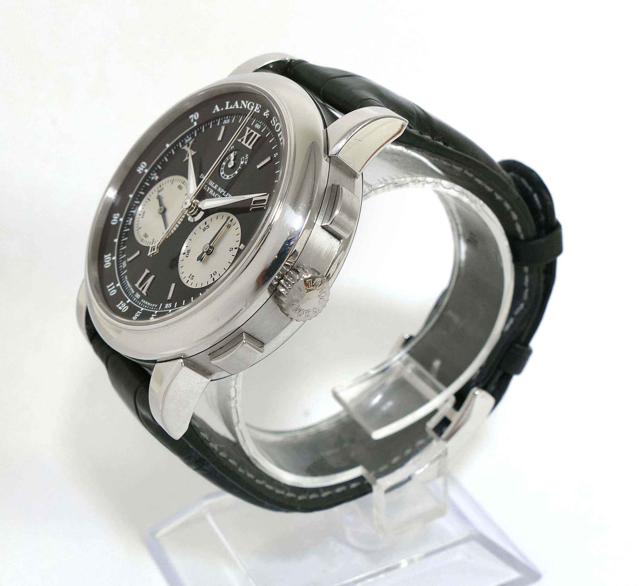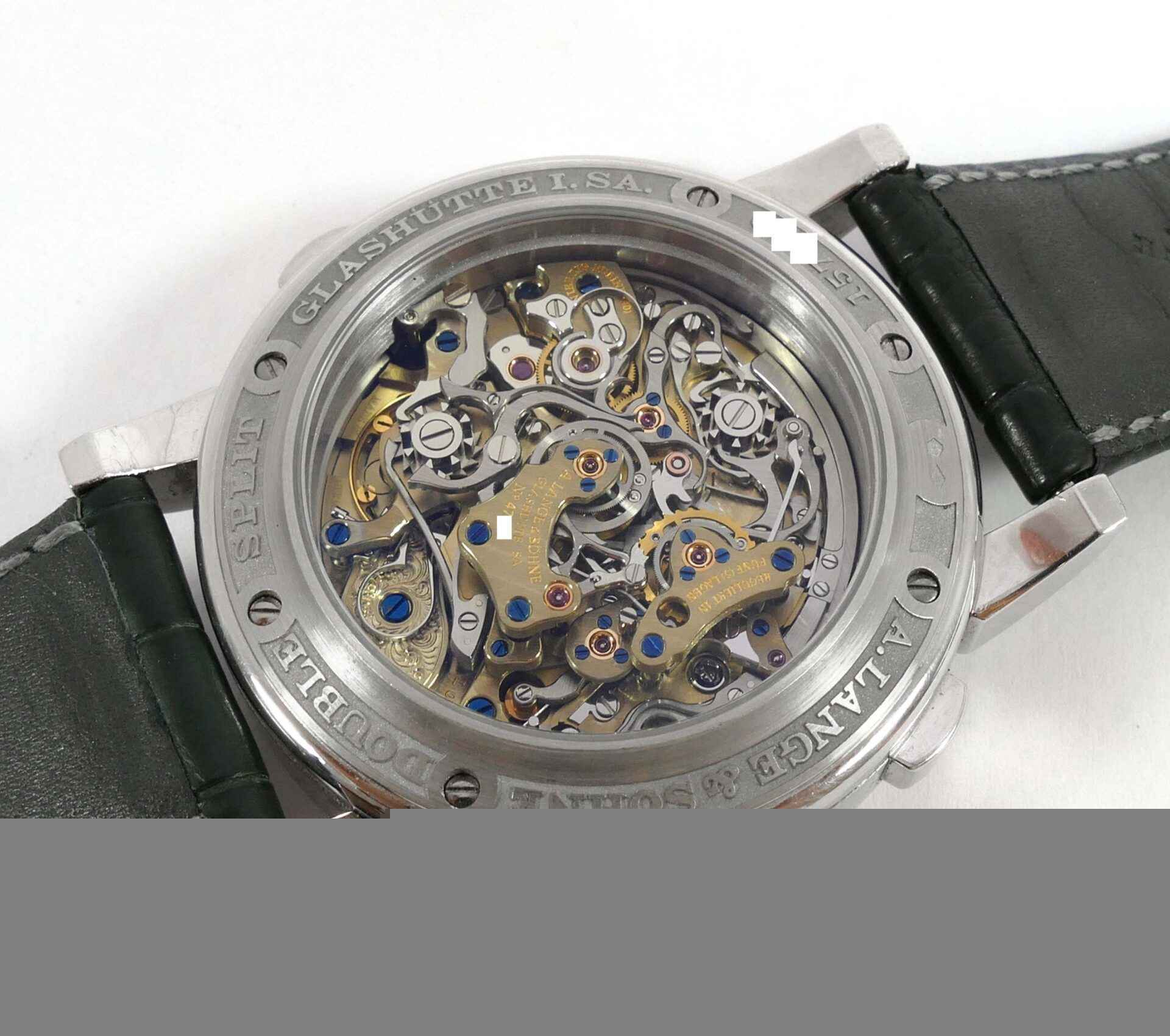 Read Morethis a lange & sohne watch is in very nice condition, showing just some minor wear from regular use. It comes with its complete set of box, booklets, original microfiber cloth, and original paperwork dated december 2006. It comes with 3 original a lange straps, all are in excellent condition with very little use shown, the black leather strap shown on the left side is a long size, the other 2 are regular size.