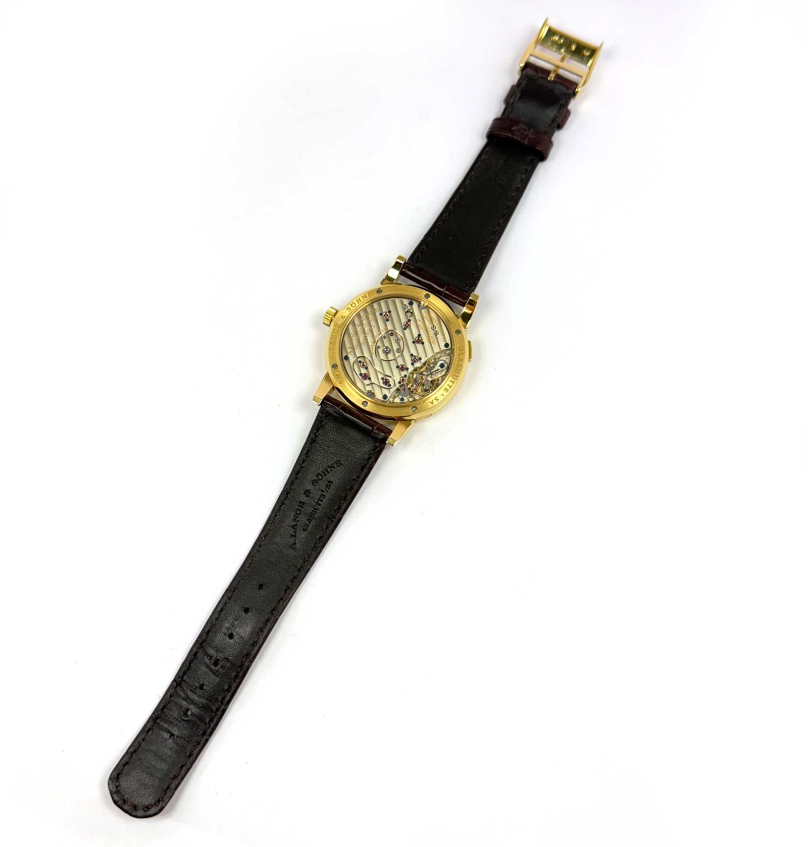 This A. Lange & Sohne watch is in excellent overall condition showing some light signs of surface wear consistent with preowned watches. This comes with its box, booklet, and warranty card as shown in the pictures attached. Please note the watch box cus...
