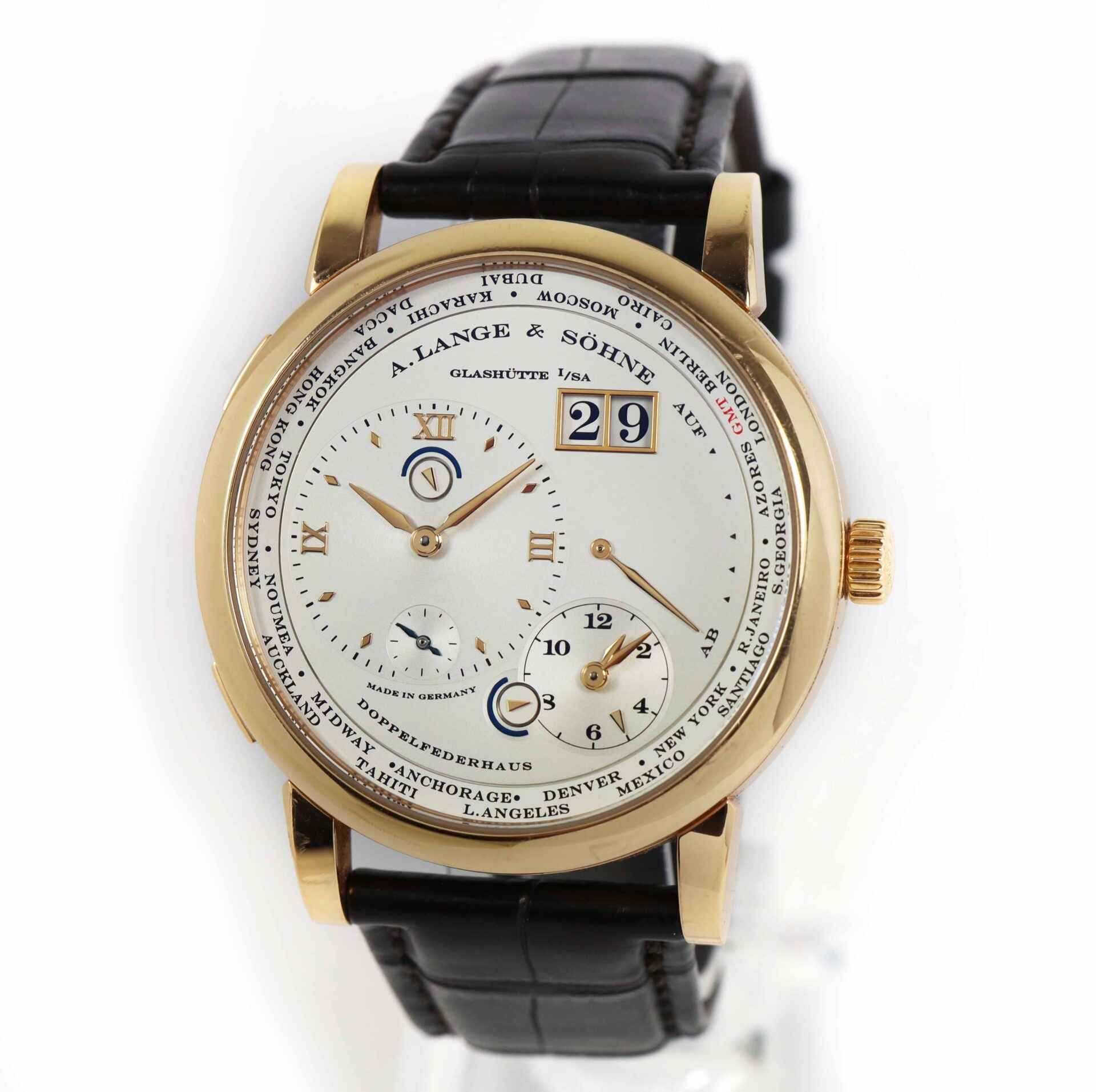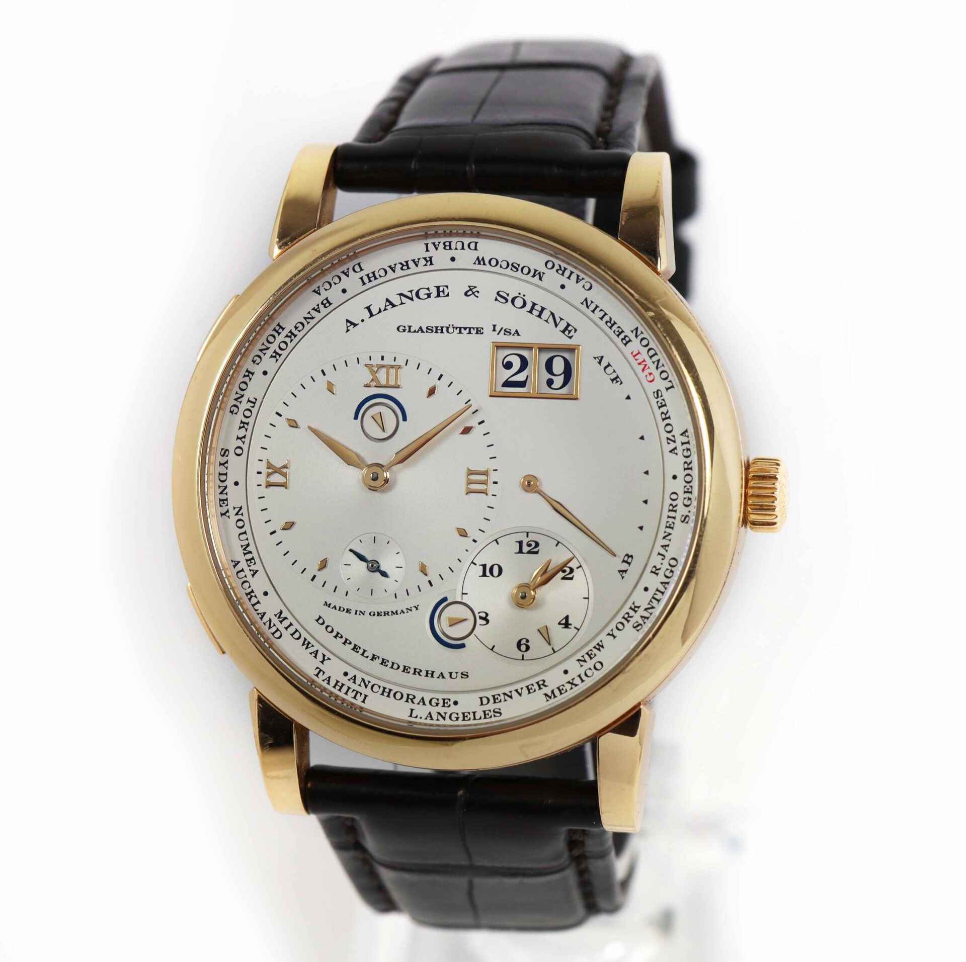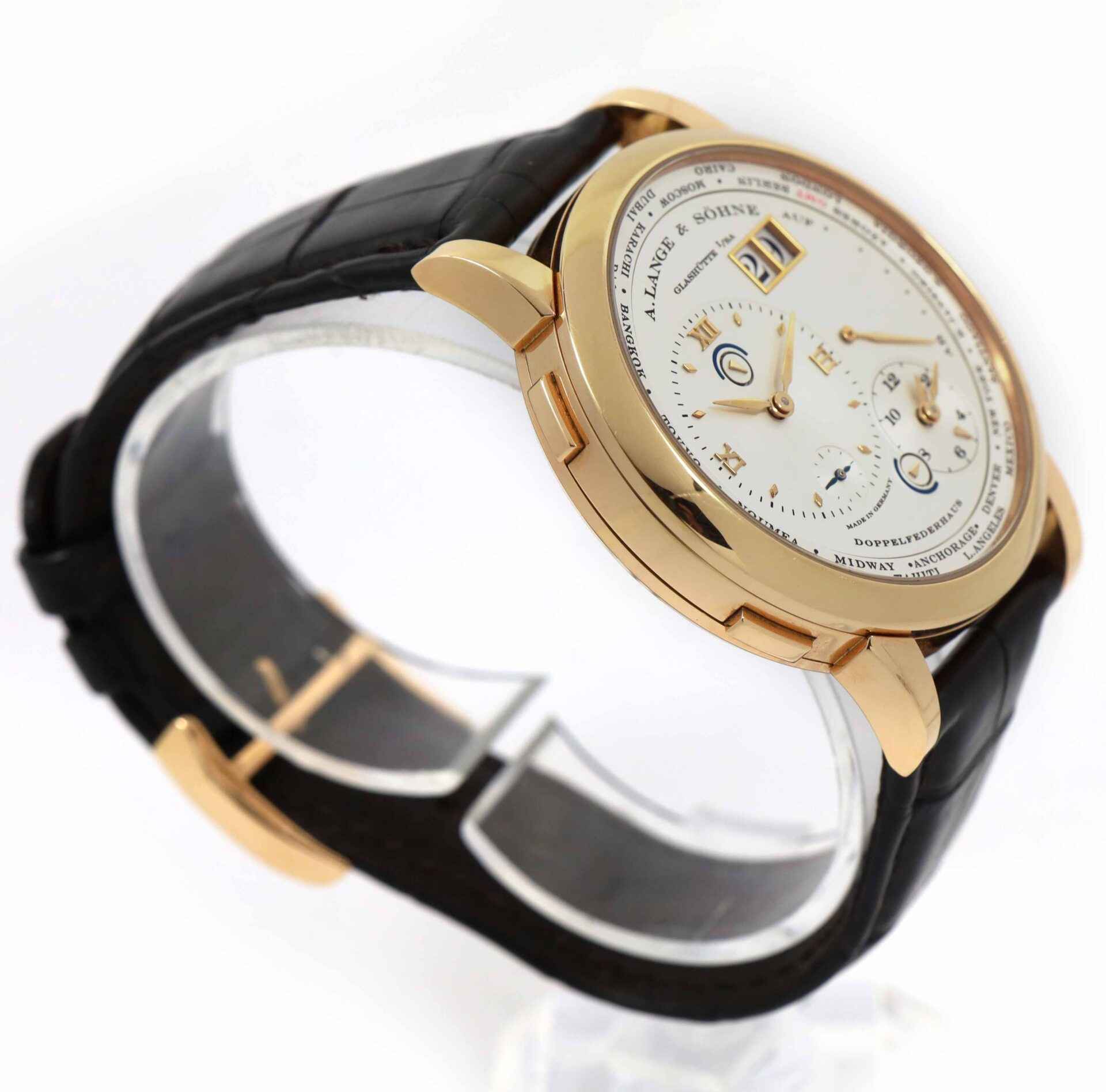 This A. Lange & Söhne is in excellent condition and comes as watch only as shown in the pictures attached. This watch is in stock and available to ship immediately!