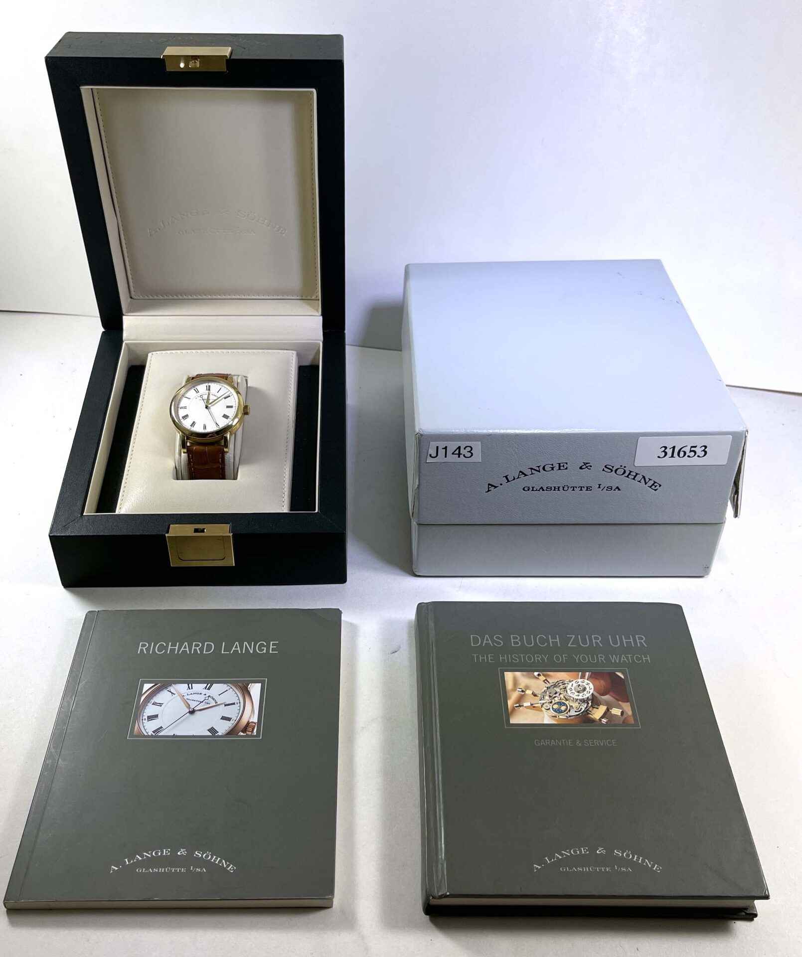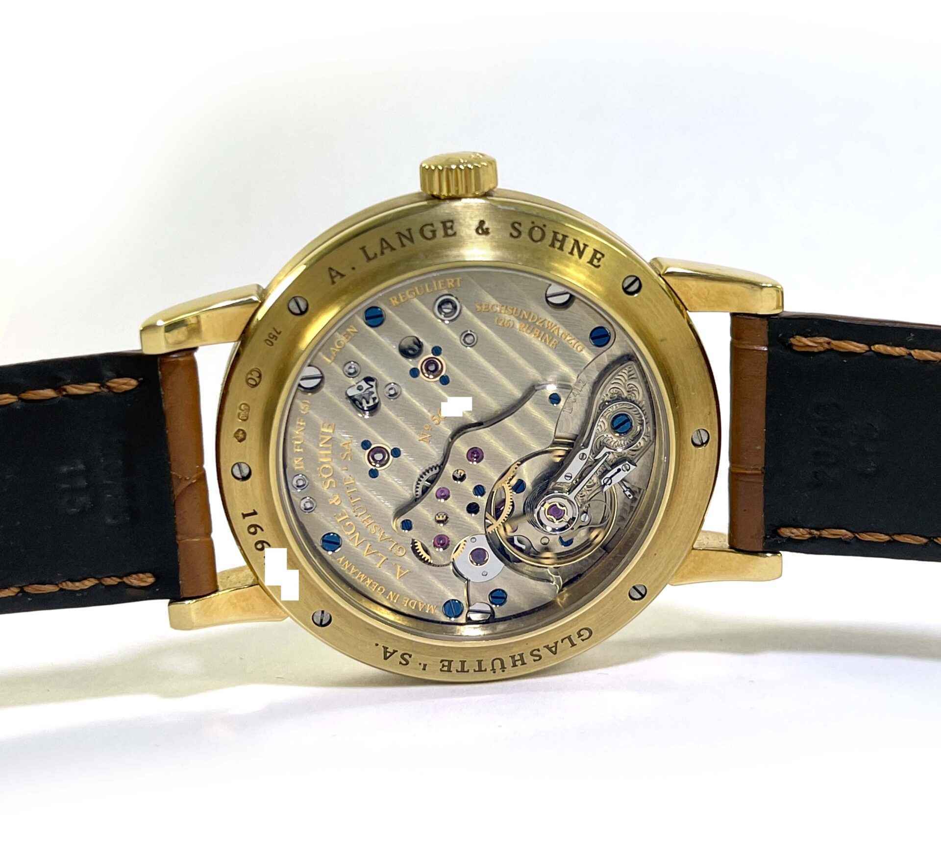 This A Lange & Sohne Watch is in excellent condition and comes with its complete set of box and papers. The strap is not an original Lange strap, however it is a high quality leather strap that suits the watch beau...