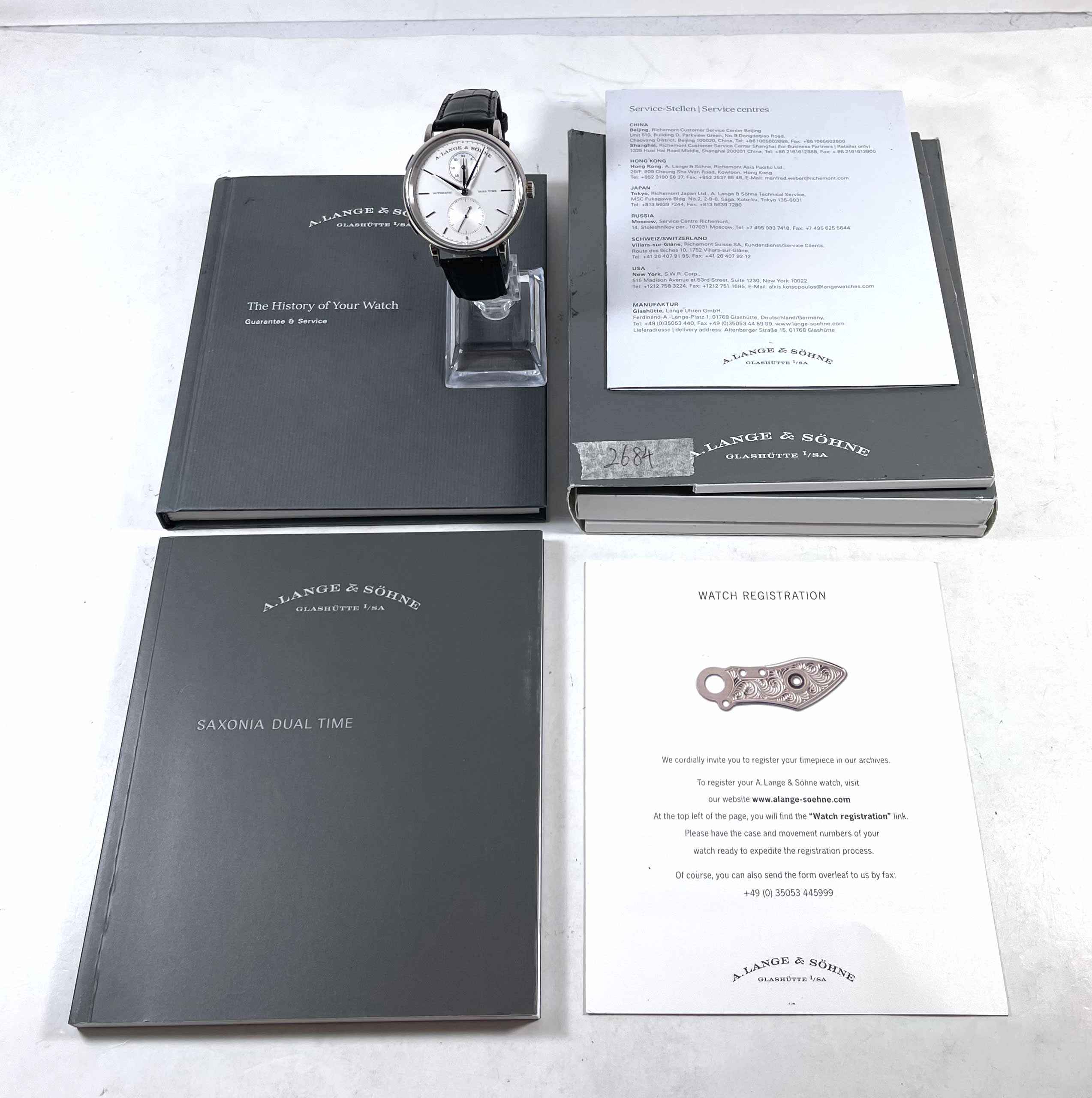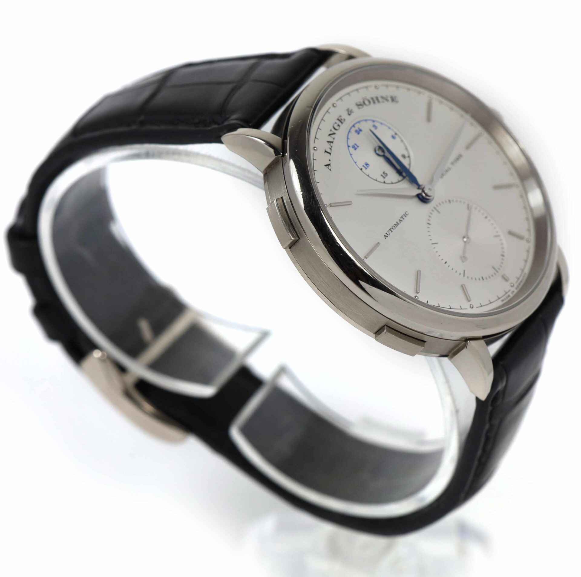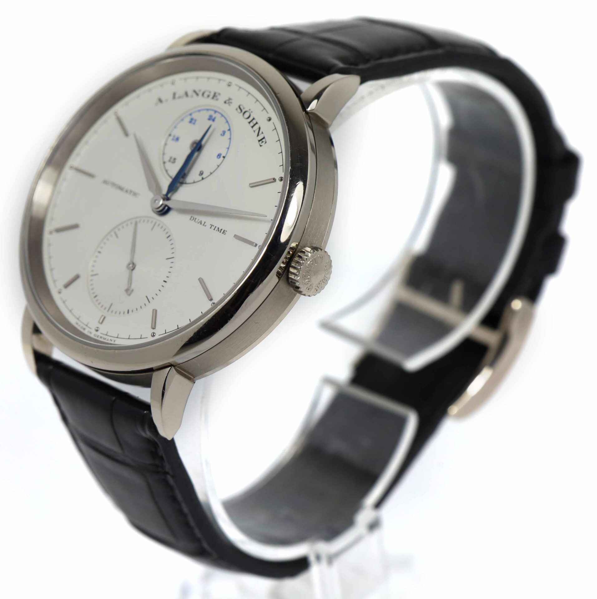 Read Morethis a. Lange & sohne watch is in excellent condition and comes with its papers and warranty booklet dated july 9th, 2014 as shown in the pictures attached. This watch features a 40mm 18k white gold case that surrounds a silver dial and comes on a black leather strap. The functions include hours, minutes, small seconds and dual time. This watch is in stock and available to ship immediately!