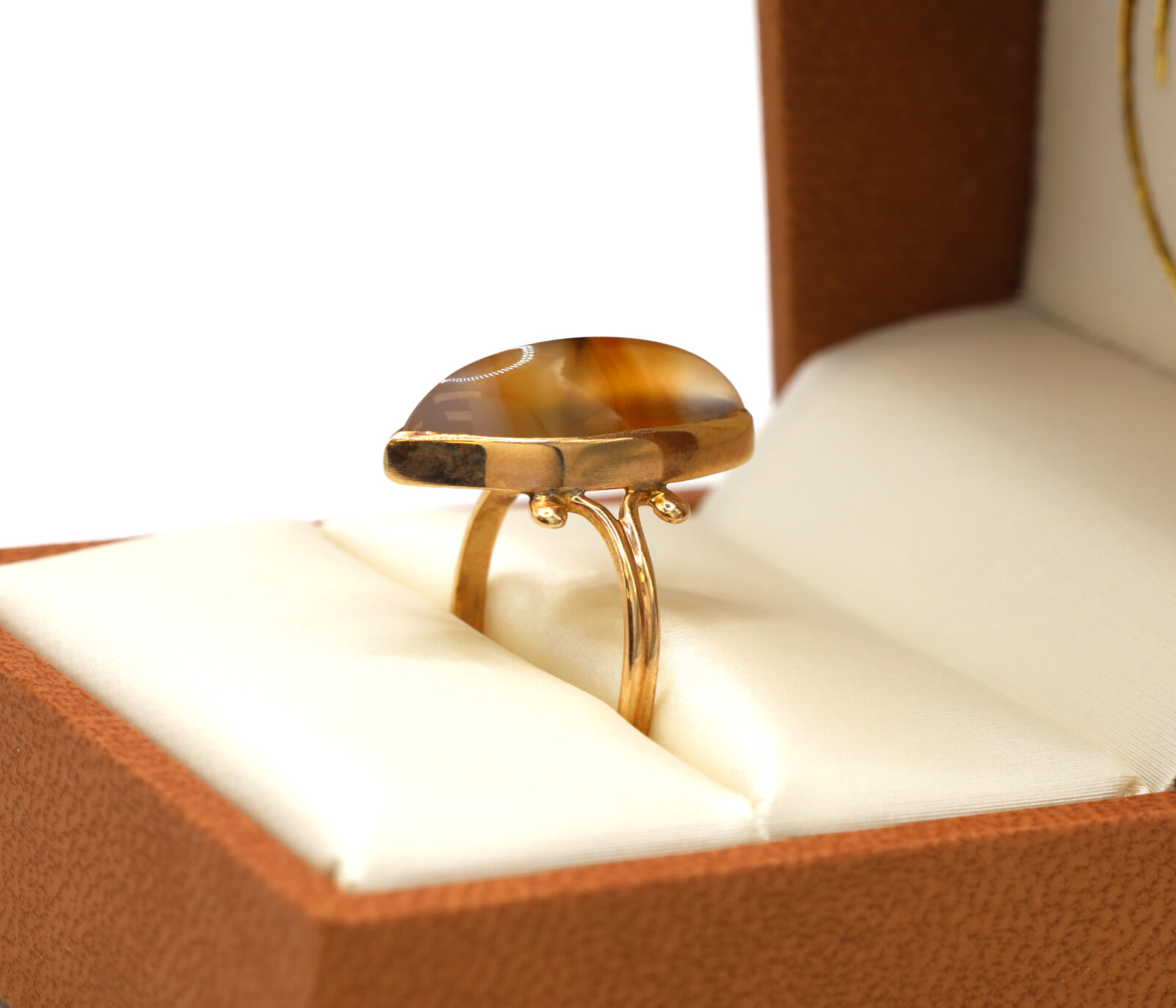 Agate Knife-Edge Marquise Cabochon 14K Yellow Gold Women’s Statement Ring