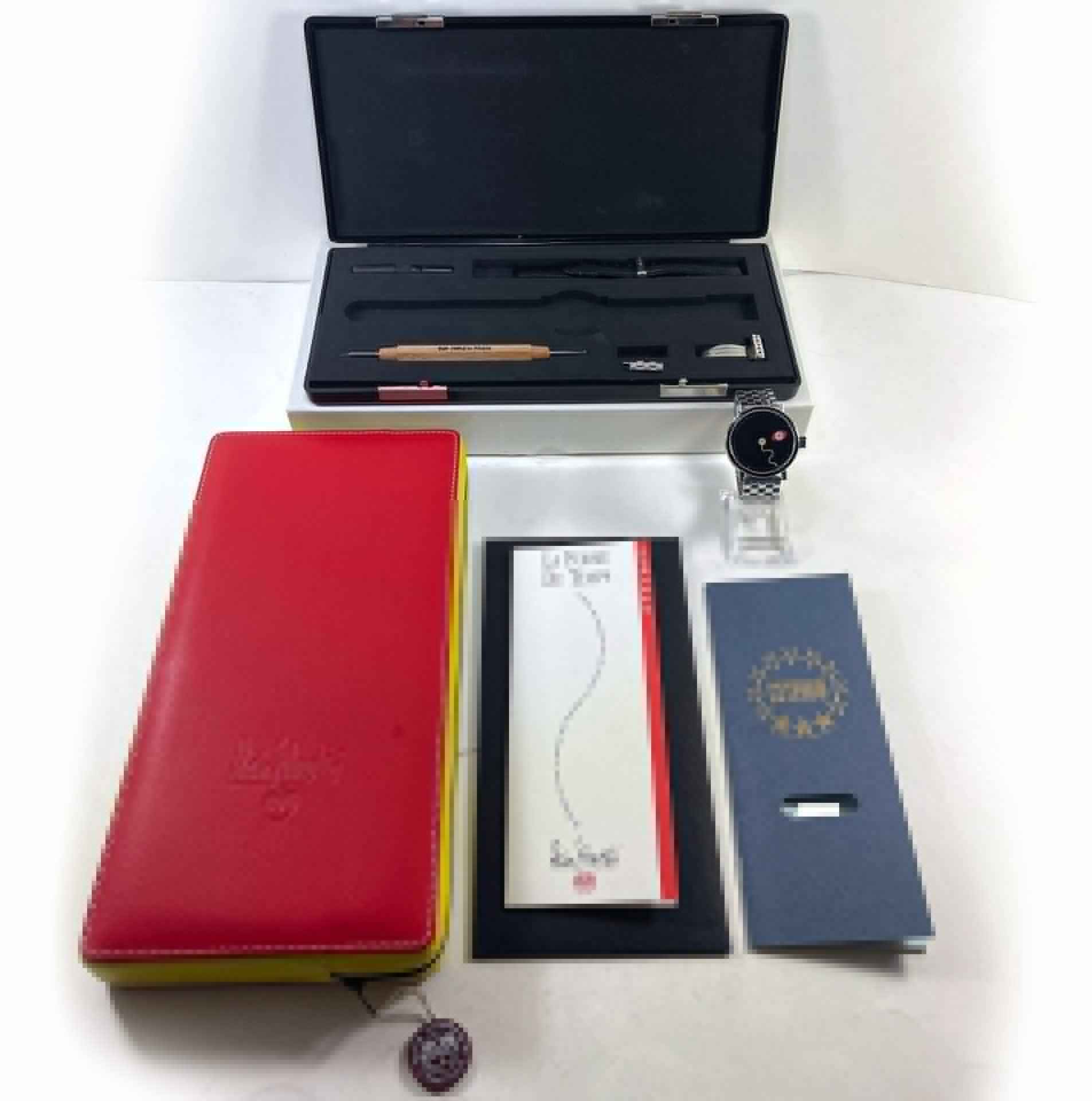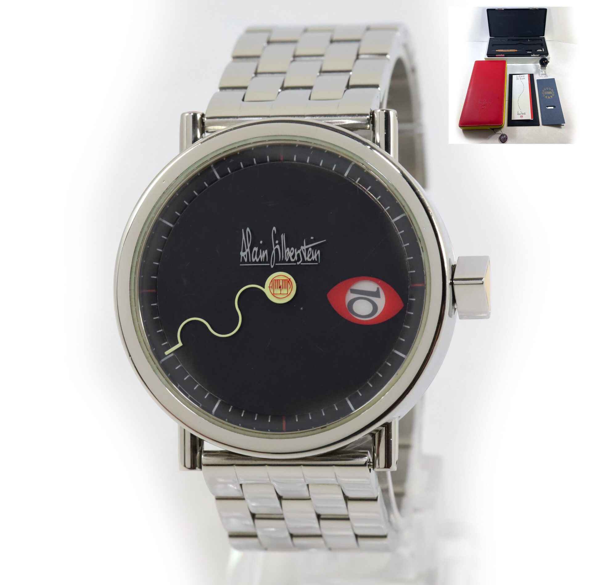 Read Morethis alain silberstein watch is in good condition and comes with box, papers, as tools, one extra strap, and spare links/clasp. The dial on this watch shows signs of aging when you catch it at a certain lighting. It is very faint and difficult to capture a picture of but does not show 99% of the time. This watch is part of a limited release with only 500 produced. This watch is in stock and available to ship immediately!