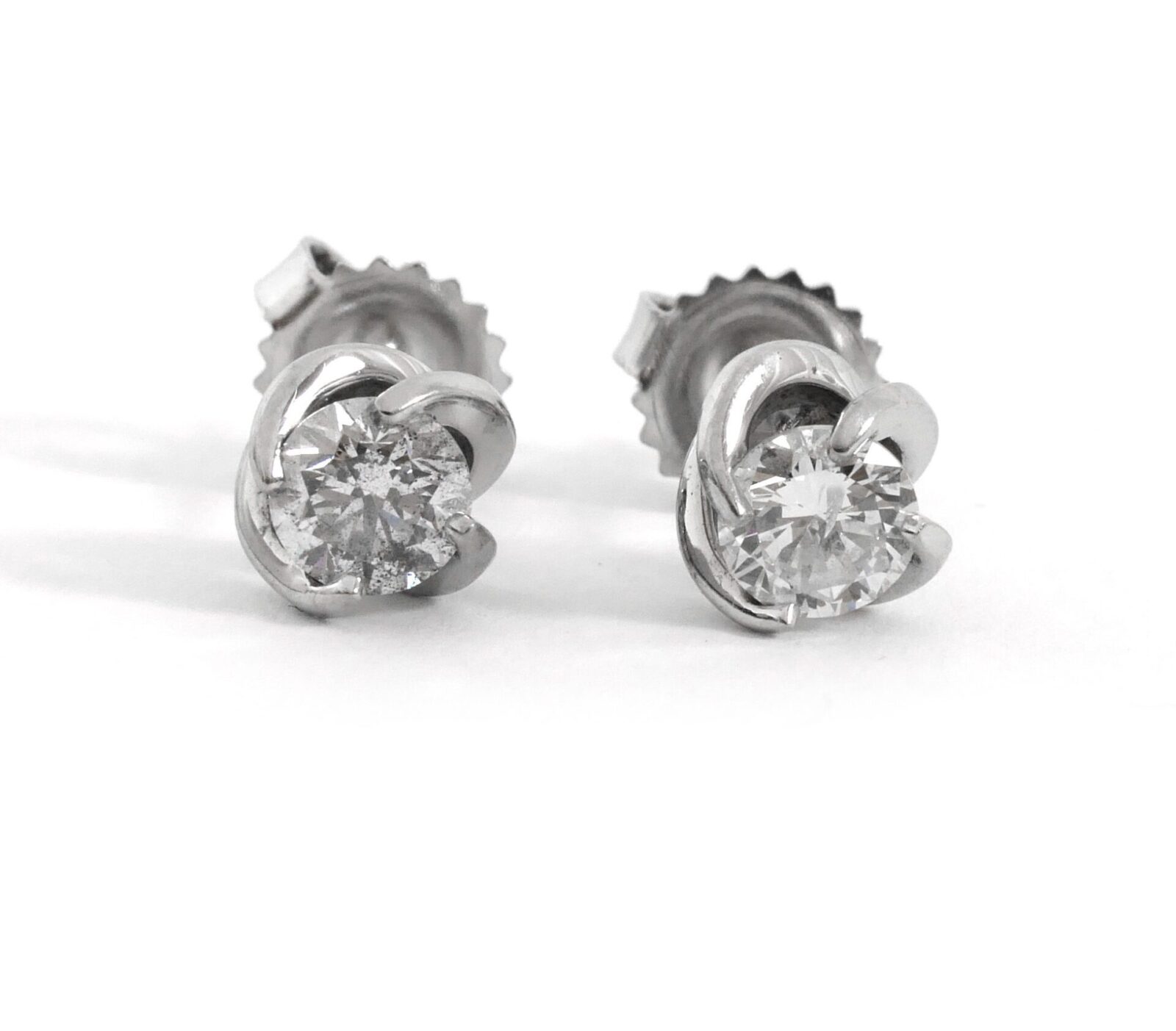Antique Diamond .90ct 14k White Gold Stud Swirl Earrings