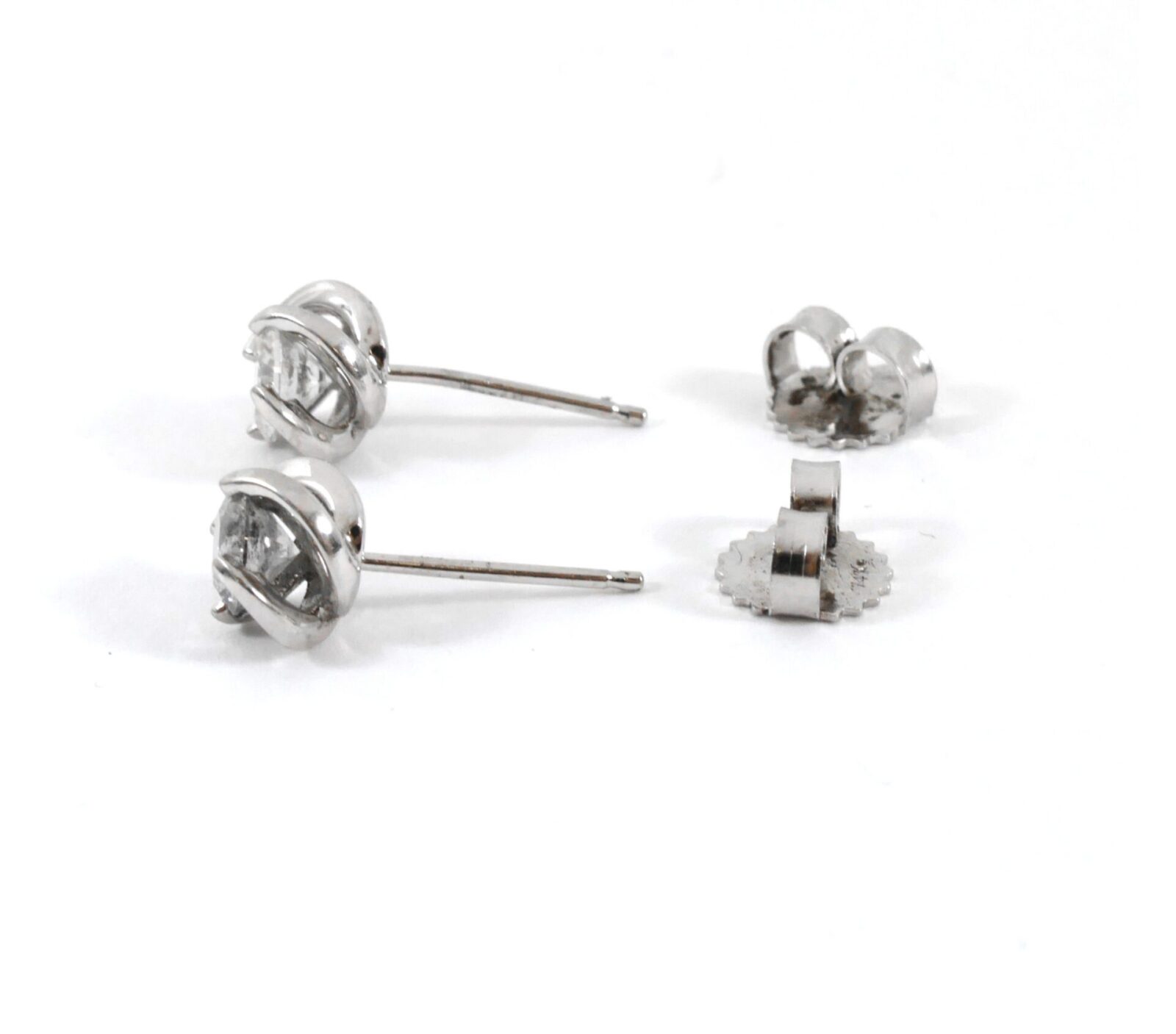 this beautiful stud earrings are filled with .90 carats of diamonds. They are crafted in 14k white gold, and backings to keep them safe and secure on the ear.