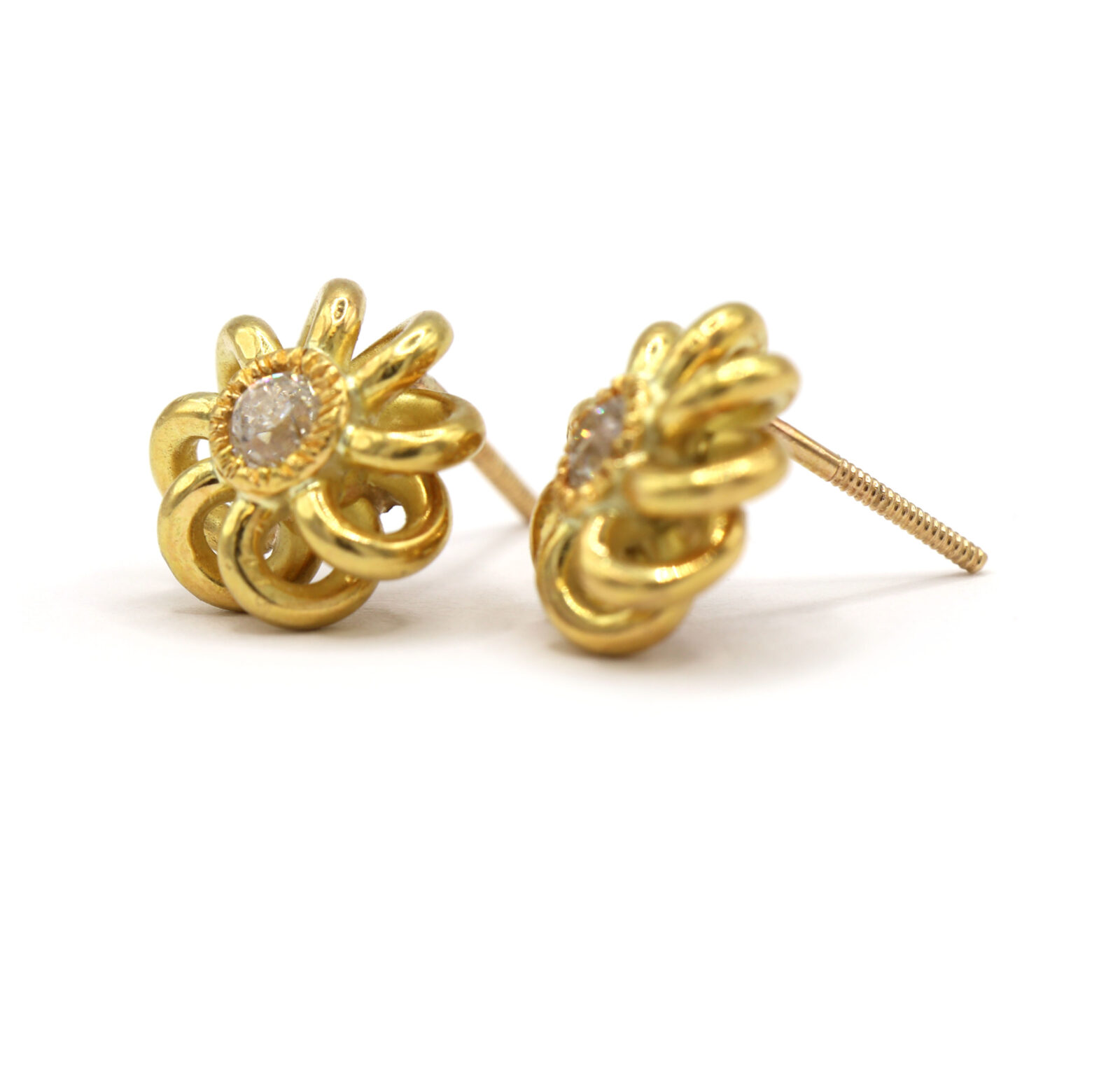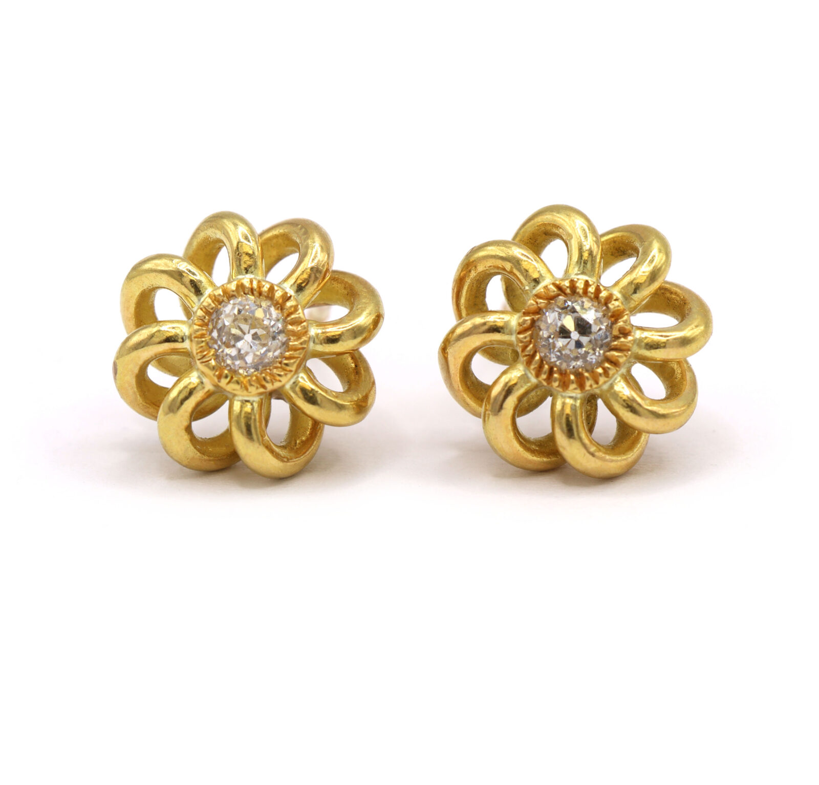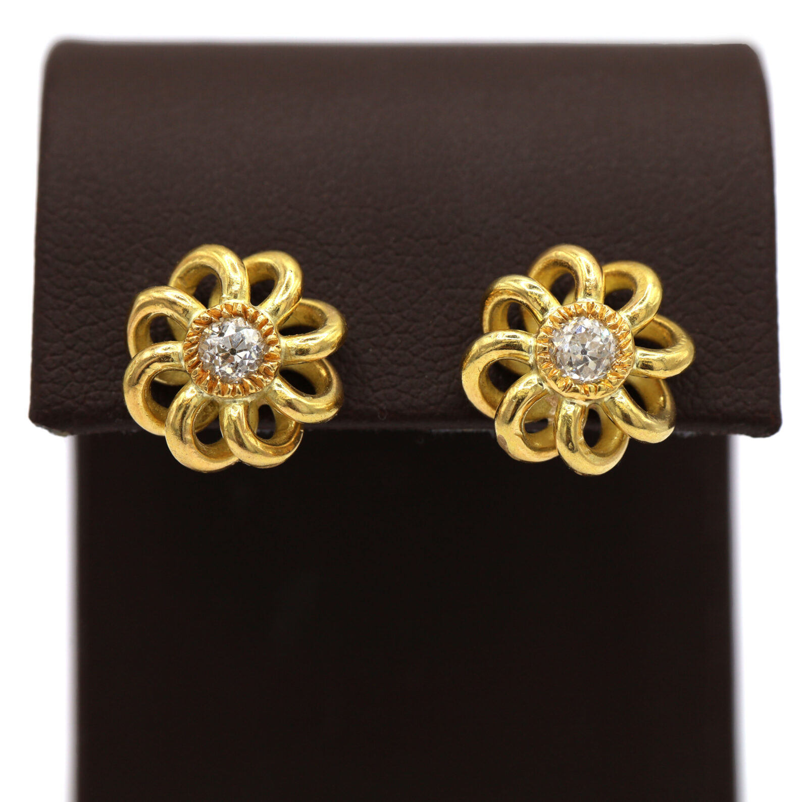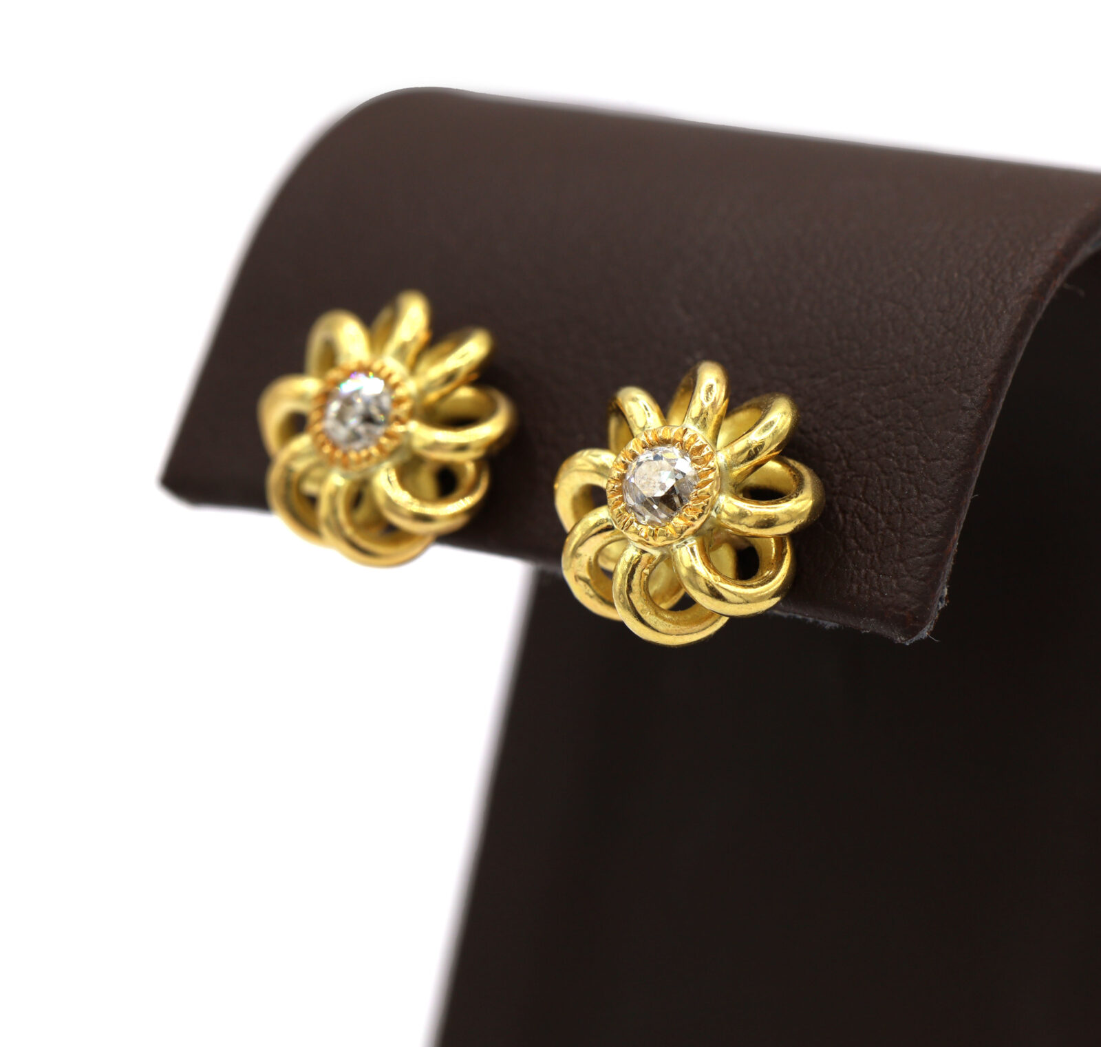 Material: 18k Yellow Gold Stone: Natural Diamond Carat Weight: 0.50 Carat Clarity: SI2 Color: F/G Cut: Old European Cut Earring Width: 13mm Weight: 7 Grams