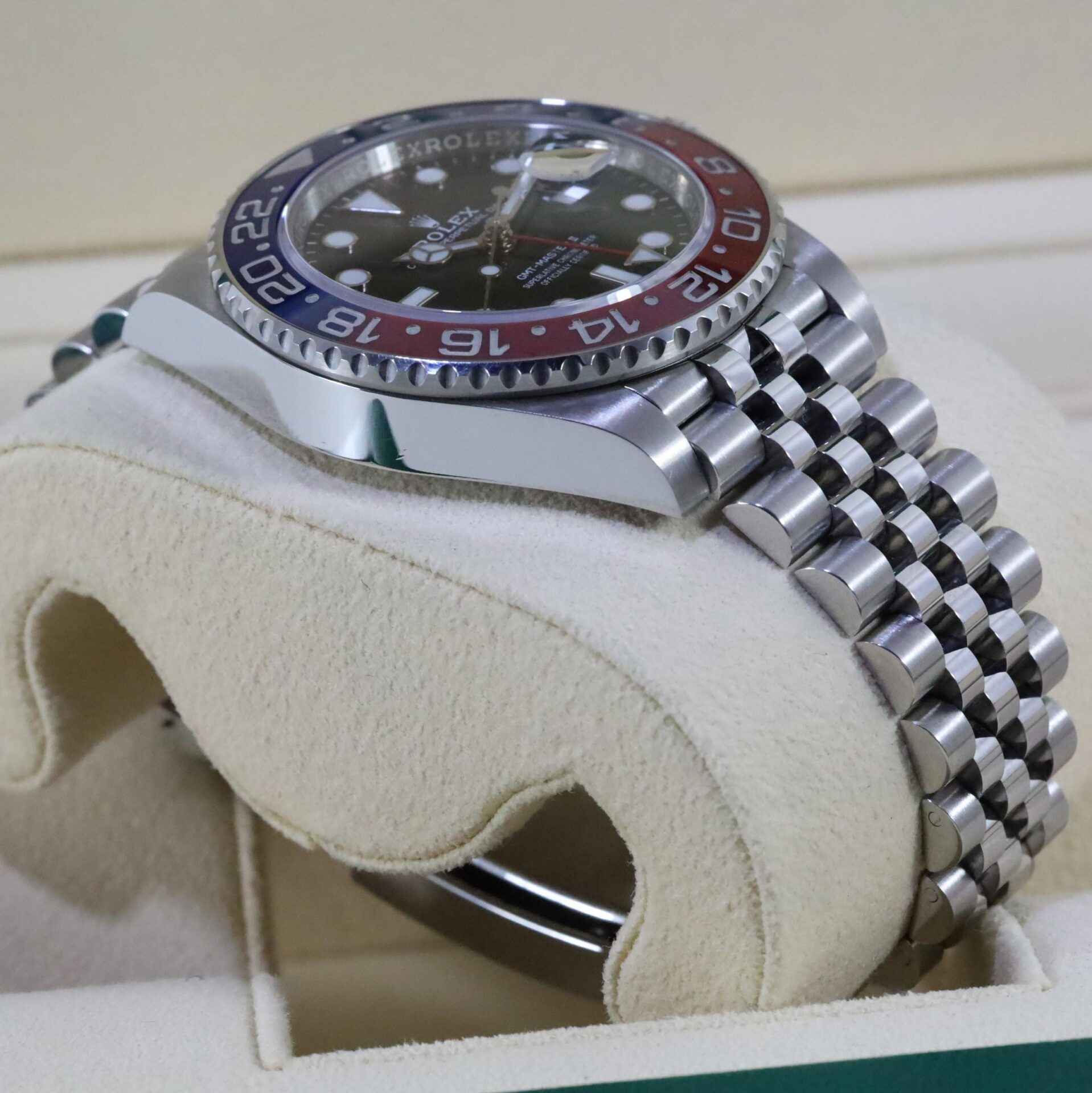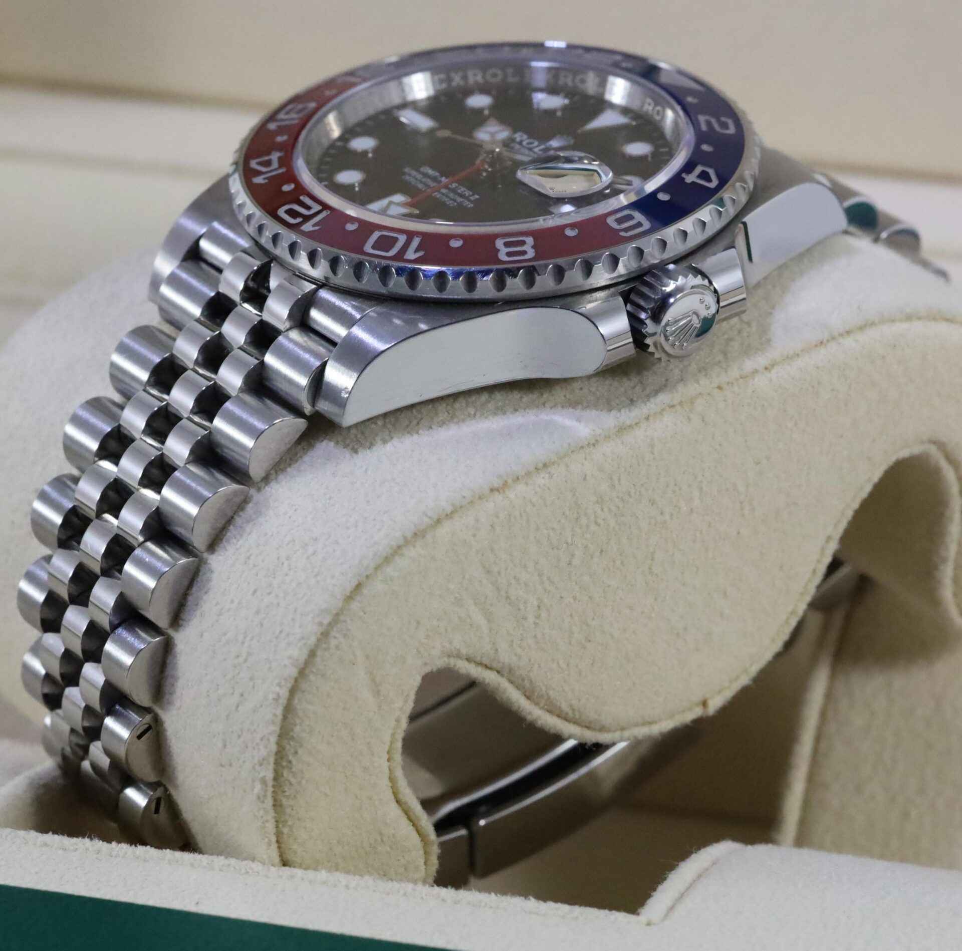 this rolex pepsi is in excellent condition and comes with box, papers, hang tag, bezel protector and warranty card dated april 22nd, 2021. This rolex is in stock and available to ship immediately!