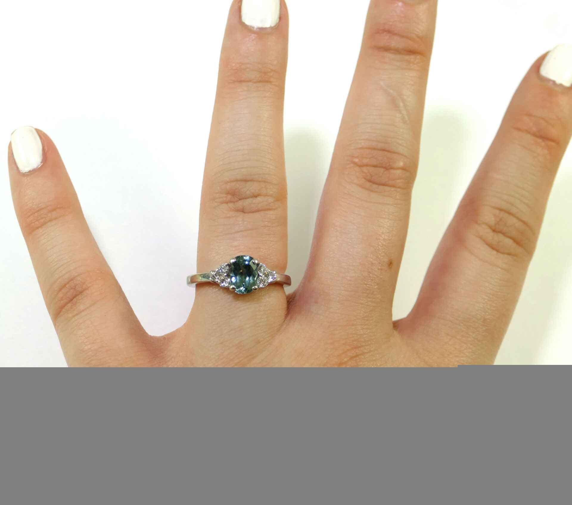 Product Description: This sparkling ring holds an oval cut aquamarine gemstone, with three equal diamonds on each side. The whole ring is crafted in 18k white gold, and has an elegant yet fashionable look to it....